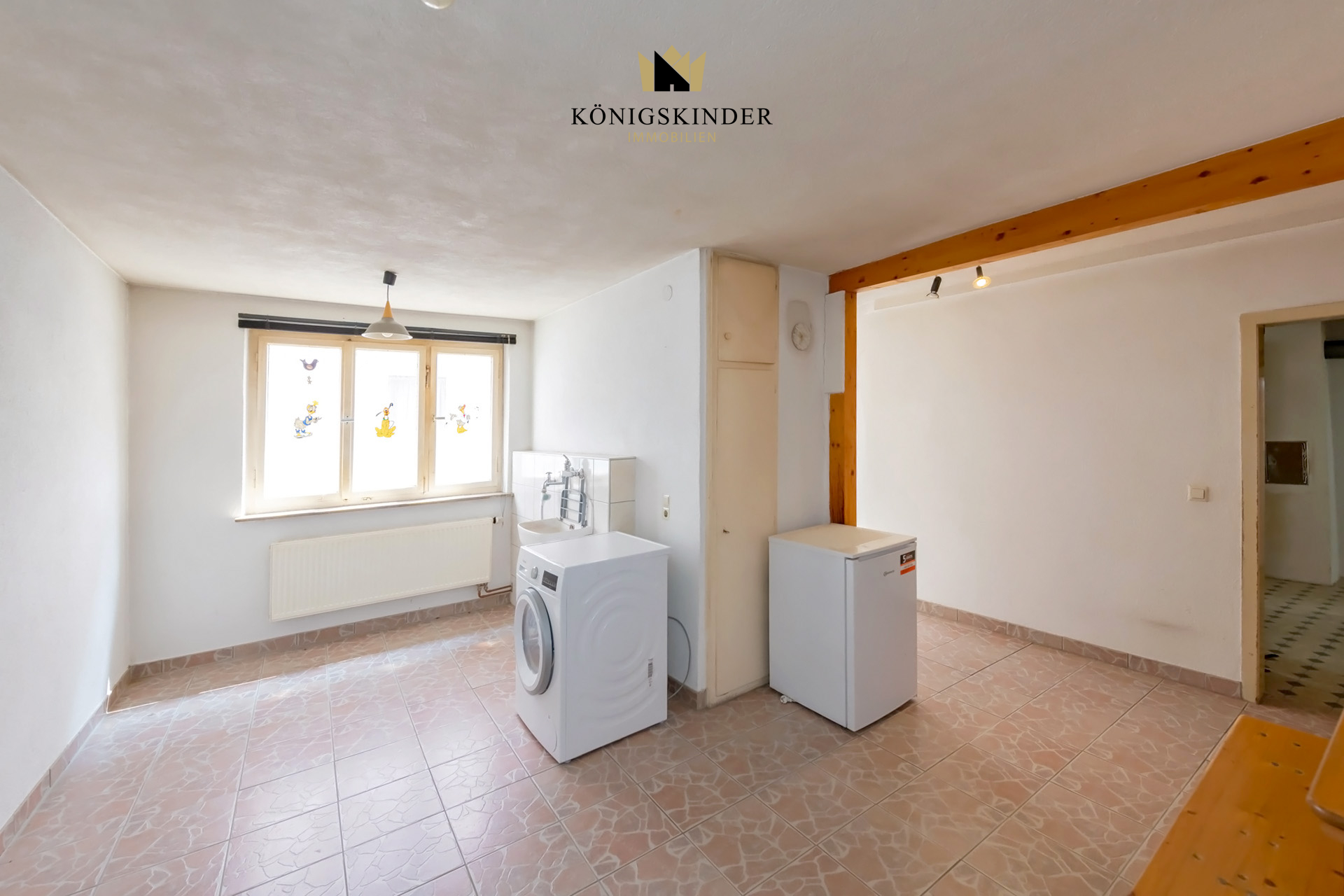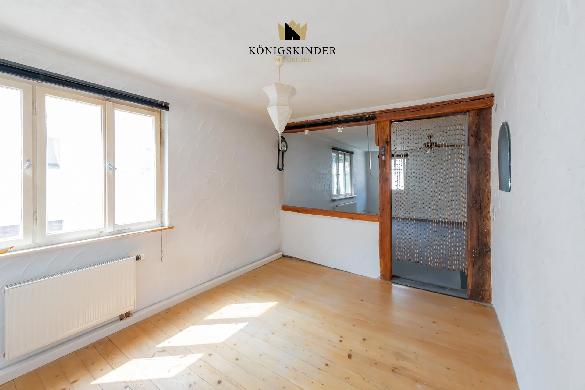 Historische Substanz trifft auf Potenzial Das Anwesen umfasst zwei Vollgeschosse, drei Dachgeschosse sowie ein massives Kellergeschoss. Der Baukörper besticht durch sein verputztes Fachwerk und authentische Details wie das historische Rundbogentor zum Gewölbekeller, profilierte Türgewände und originale Türblätter. Diese handwerklichen Besonderheiten verleihen dem Gebäude einen unverwechselbaren Charakter.