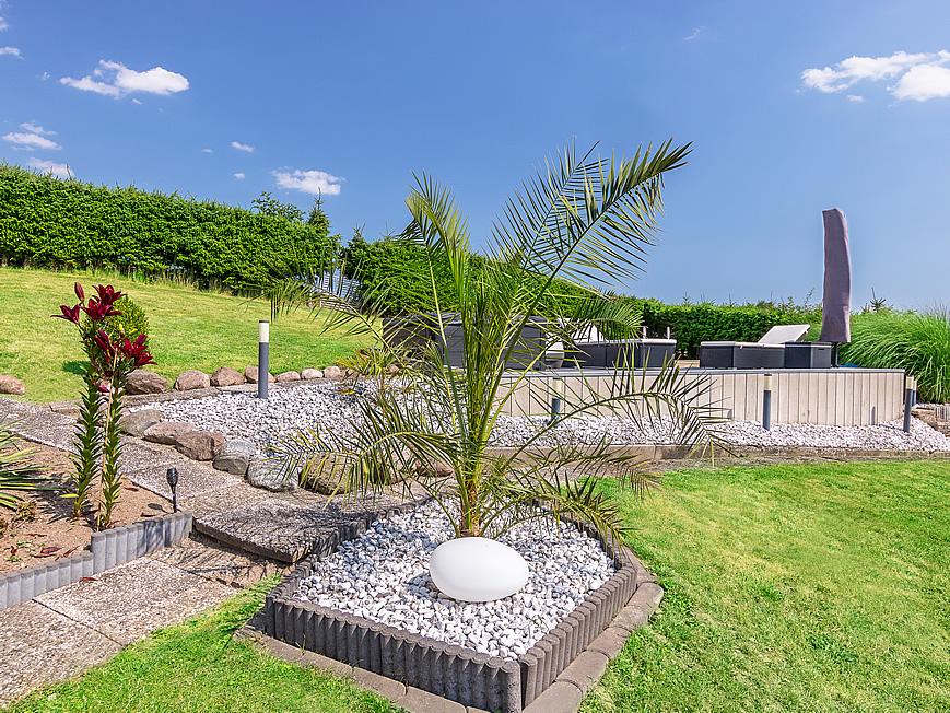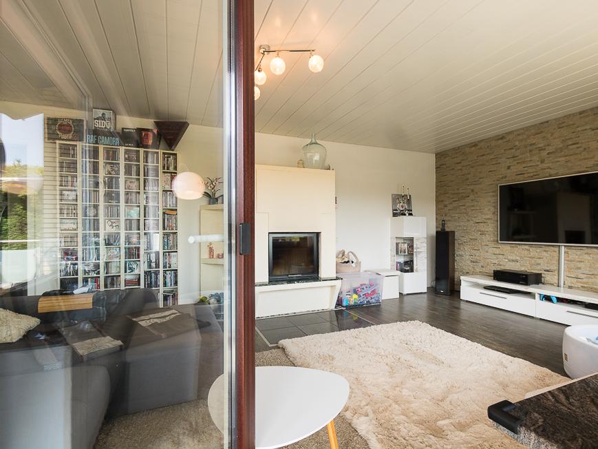 Balkon und Terrasse öffnen den Blick über Felder und Hügel – bei Sonnenschein, beim Frühstück oder einfach zwischendurch. Der Garten überzeugt mit Großzügigkeit und auch dank des Sonnendecks inklusive Whirlpool und Pool. Kinder und Hunde haben hier viel Platz zum Toben. Und wer gerne mit Gästen lacht, grillt oder entspannt, wird diese grüne Idylle schnell zu schätzen wissen.