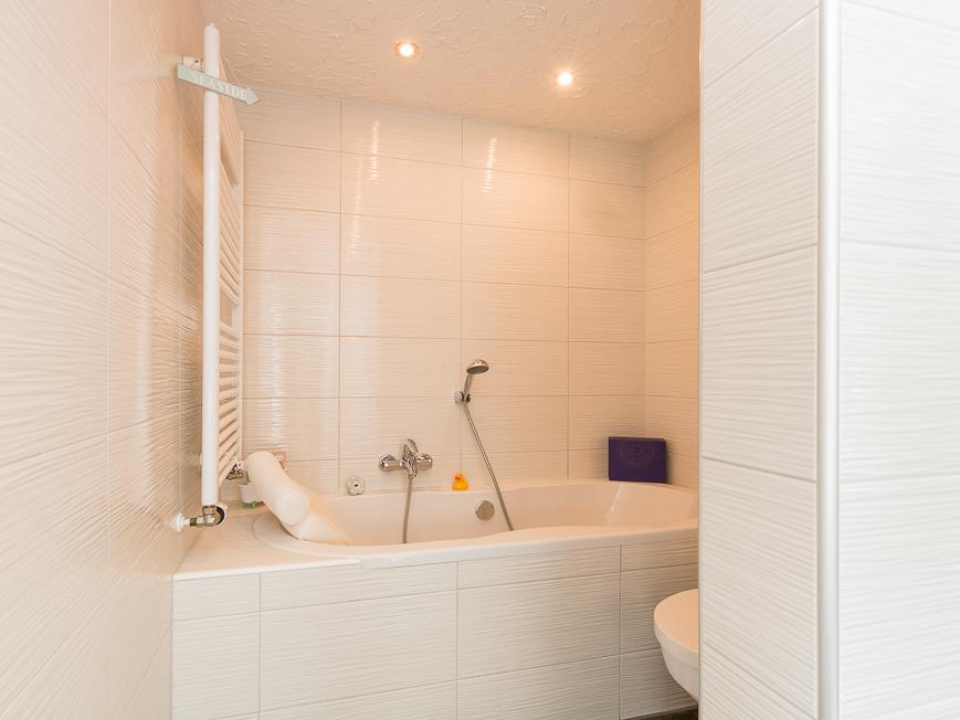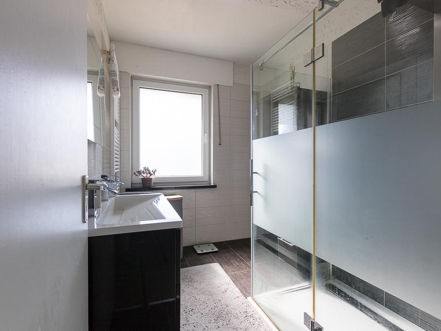- Tageslichtbad mit Badewanne, großer ebenerdiger Dusche, WC und Waschbecken samt Unterschrank (2010 modernisiert)