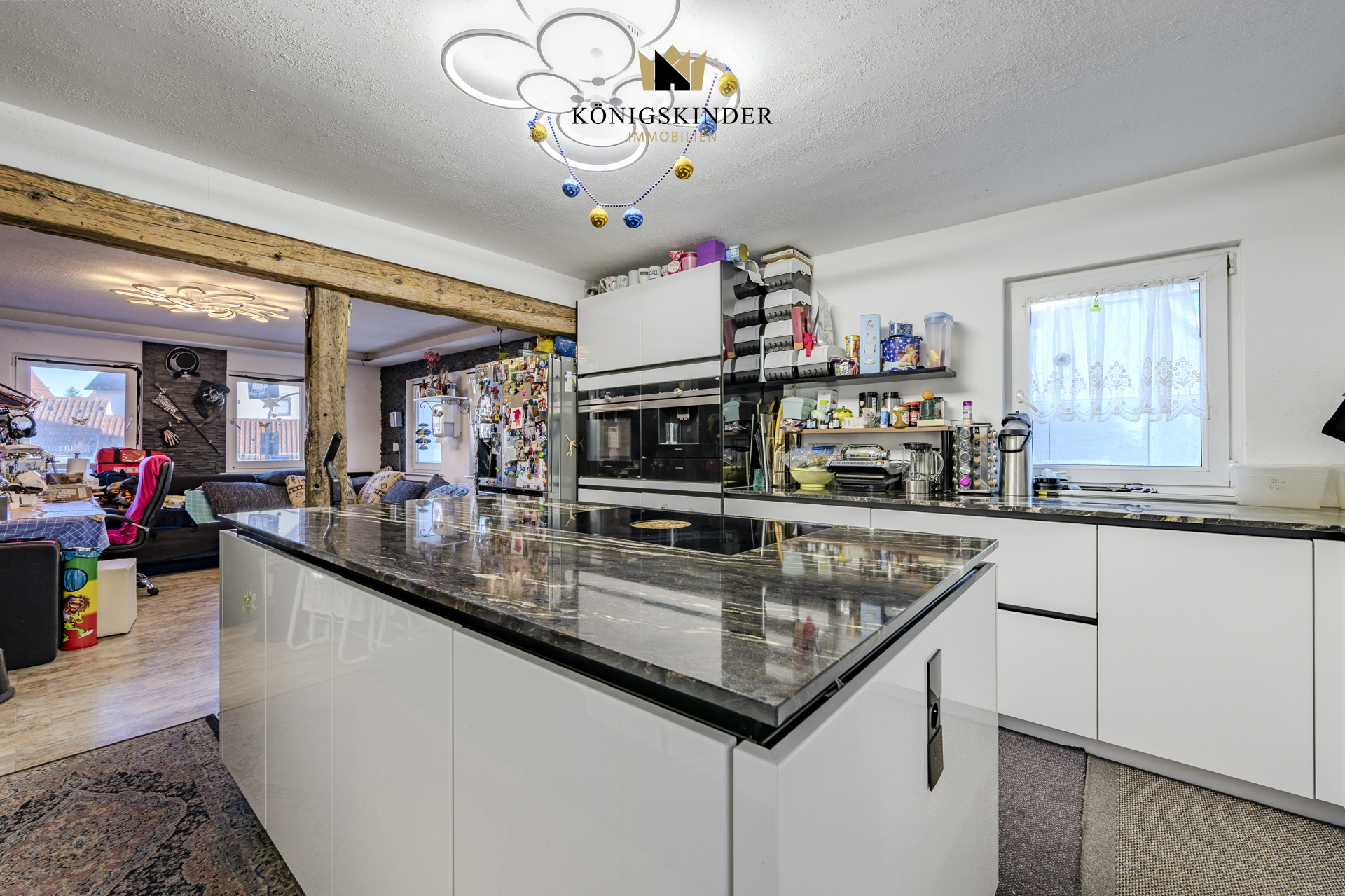 Ein angenehmer Bonus ist die hochwertige Einbauküche inklusive Elektrogeräten aus dem Jahr 2018, die im Kaufpreis enthalten ist und bei entsprechender Aufbereitung weiterhin genutzt werden kann. Beheizt wird das Haus über eine Ölheizung, die im Zuge zukünftiger Maßnahmen eine gute Ausgangsbasis für moderne, effiziente Heizlösungen bietet.