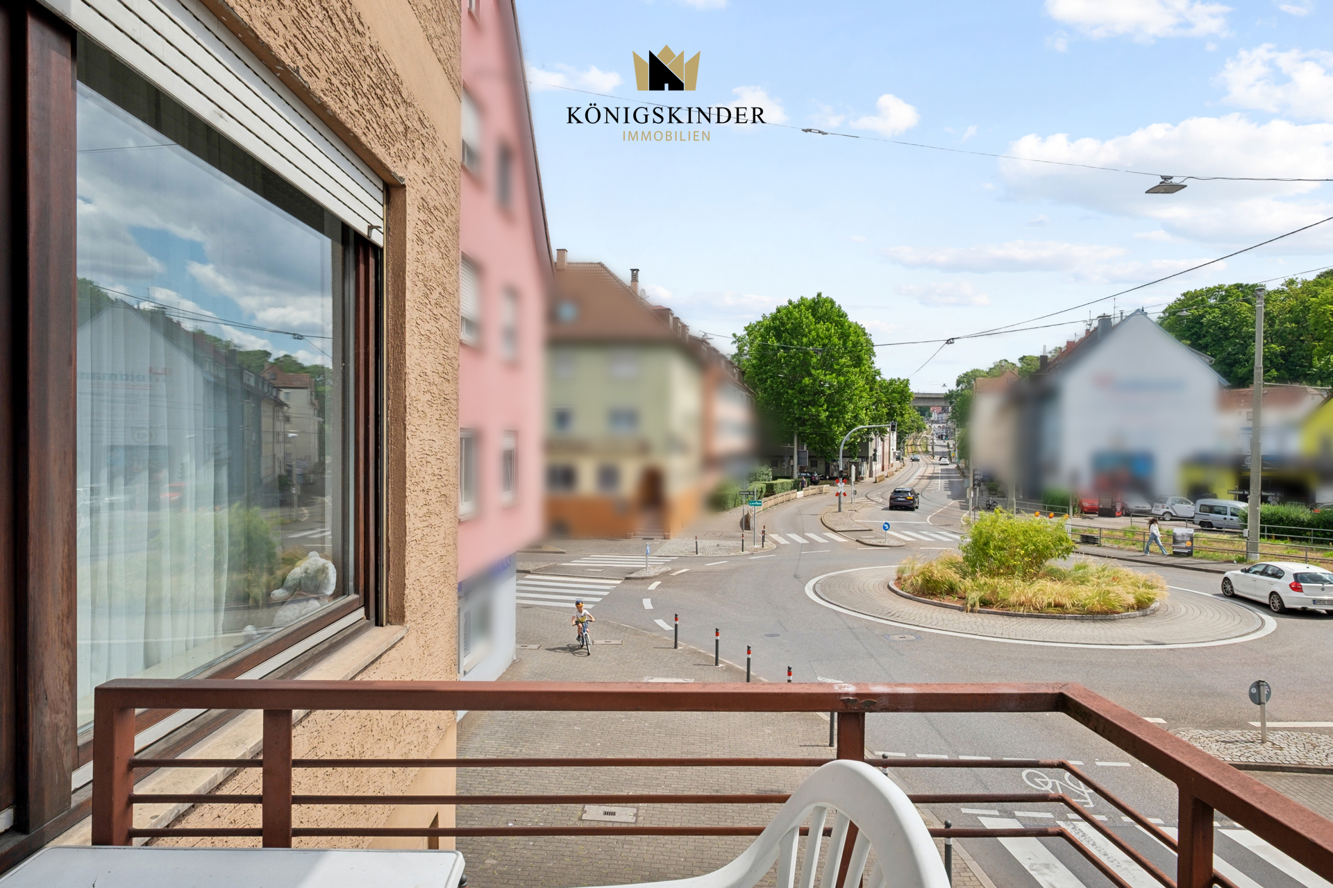 Blick von der Schmidener StraßePraktische KüchenzeileZimmer mit BalkonzugangGepflegtes TageslichtbadFlur mit EinbauschrankGemütlicher Balkon zum InnenhofEcht schwäbisch: Ordnung muss sein. Freisitz zur Schmidener StraßeStellplatz im InnenhofFreisitz zur Schmidener StraßeBlick vom InnenhofBildWohnzimmer mit Balkon zur Schmidener Straße