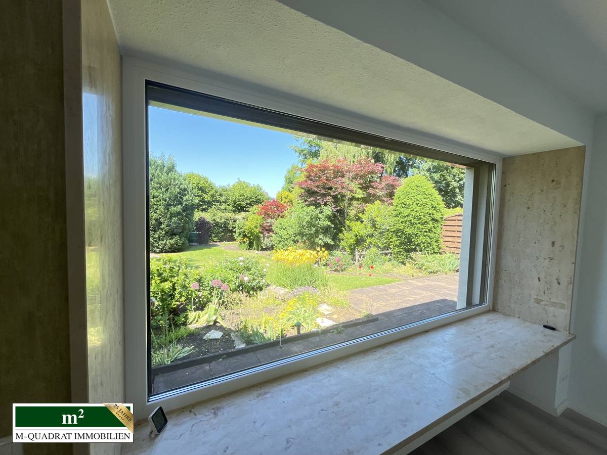 Treten sie ein, in die geräumige Erdgeschoss-Wohnung. Zwei gut geschnittene Zimmer, eine geräumige und gut ausgestattete „Nolte“ Küche mit Fußbodenheizung, ein Wannenduschbad aus 2017 mit großem Fenster sowie ein helles und großzügiges Wohnzimmer stehen ihnen hier mit einer gelungenen Aufteilung zur Verfügung. Vom Wohnzimmer aus, durch das große Panoramafenster mit Sitzfläche, haben sie einen herrlichen Blick in den schönen und gepflegten Garten. Auf die teilüberdachte Terrasse mit elektr. Markise und dem Außenkamin, gelangen sie durch das Wohnzimmer. In dieser Wohneinheit sind alle Fenster mit elektrischen Außenrollläden versehen, die über eine zentrale Schaltung im Flur, gesteuert werden können.