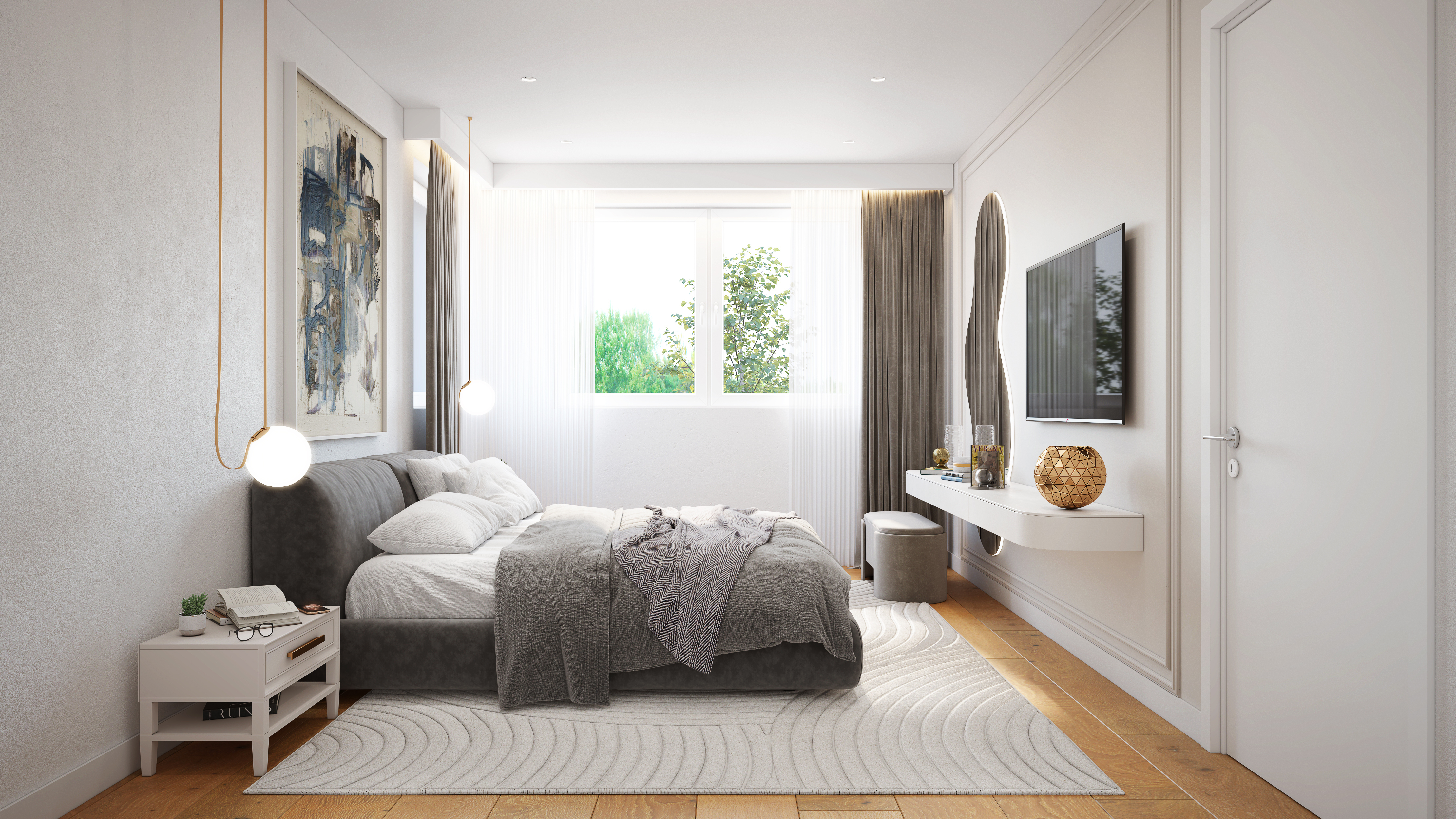 • Parkettboden in Eiche astig, gebürstet, natur geölt (220 × 1860 × 15 mm), mit weißen Sockelleisten (8 cm) • Bäder mit großformatigen Fliesen (80 × 80 cm, matt, grau) an Boden und Wänden (inkl. deckenhoher Duschbereich) • Sanitärobjekte von Villeroy & Boch (Subway 2.0 & Architectura-Serie) • Grohe Armaturen & Euphoria Duschsystem • Bodengleiche Duschen mit Echtglas-Duschkabinen • Badewannen in ausgewählten Einheiten • Elektrische Lüftungen in innenliegenden Bädern • Alle Wände in Q2 verputzt, gespachtelt (Q3), geschliffen und mit hochwertiger weißer Innenfarbe gestrichen