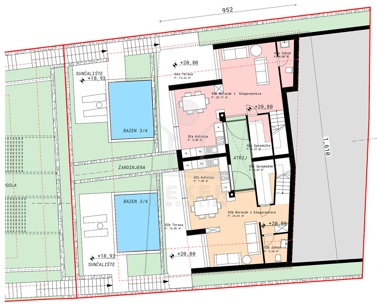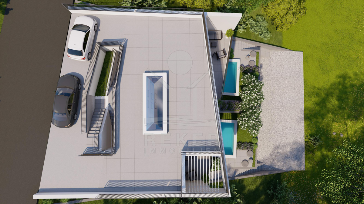 Die Terrassen sind nach Westen ausgerichtet. So erleben Sie jeden Abend Sonne und Weitblick. Ein stimmungsvoller Ausklang des Tages. Im geschützten Innenhof des Untergeschosses befindet sich Ihr privater Swimmingpool. Ein Bereich für ungestörte Stunden im Freien.