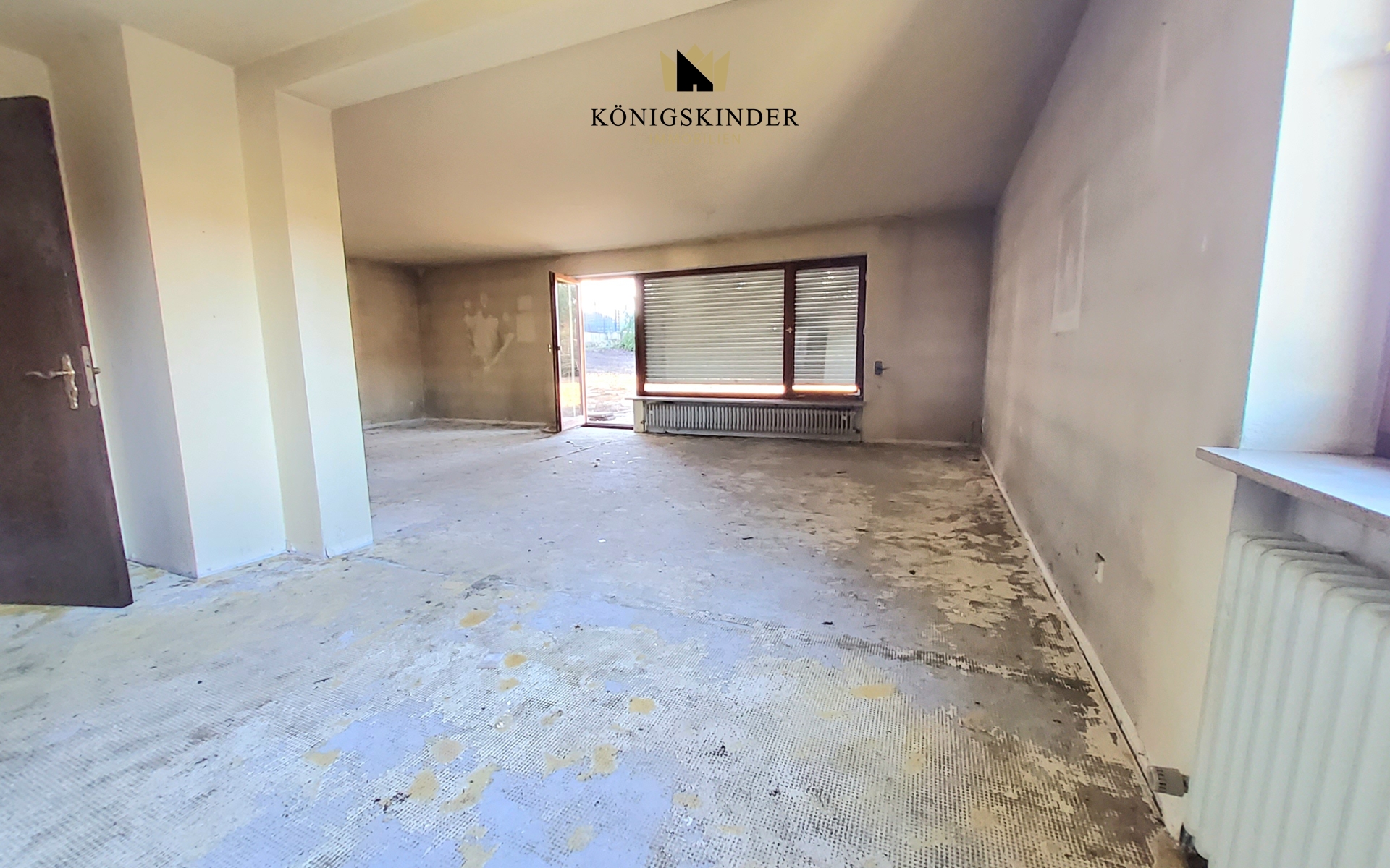 * Baugrundstück mit 901 qm mit Abrisshaus * MFH, DHH oder EFH möglich * Bestandshaus: Weitläufiges EFH/Bungalowstil/alles auf einer Ebene im Rohbauzustand