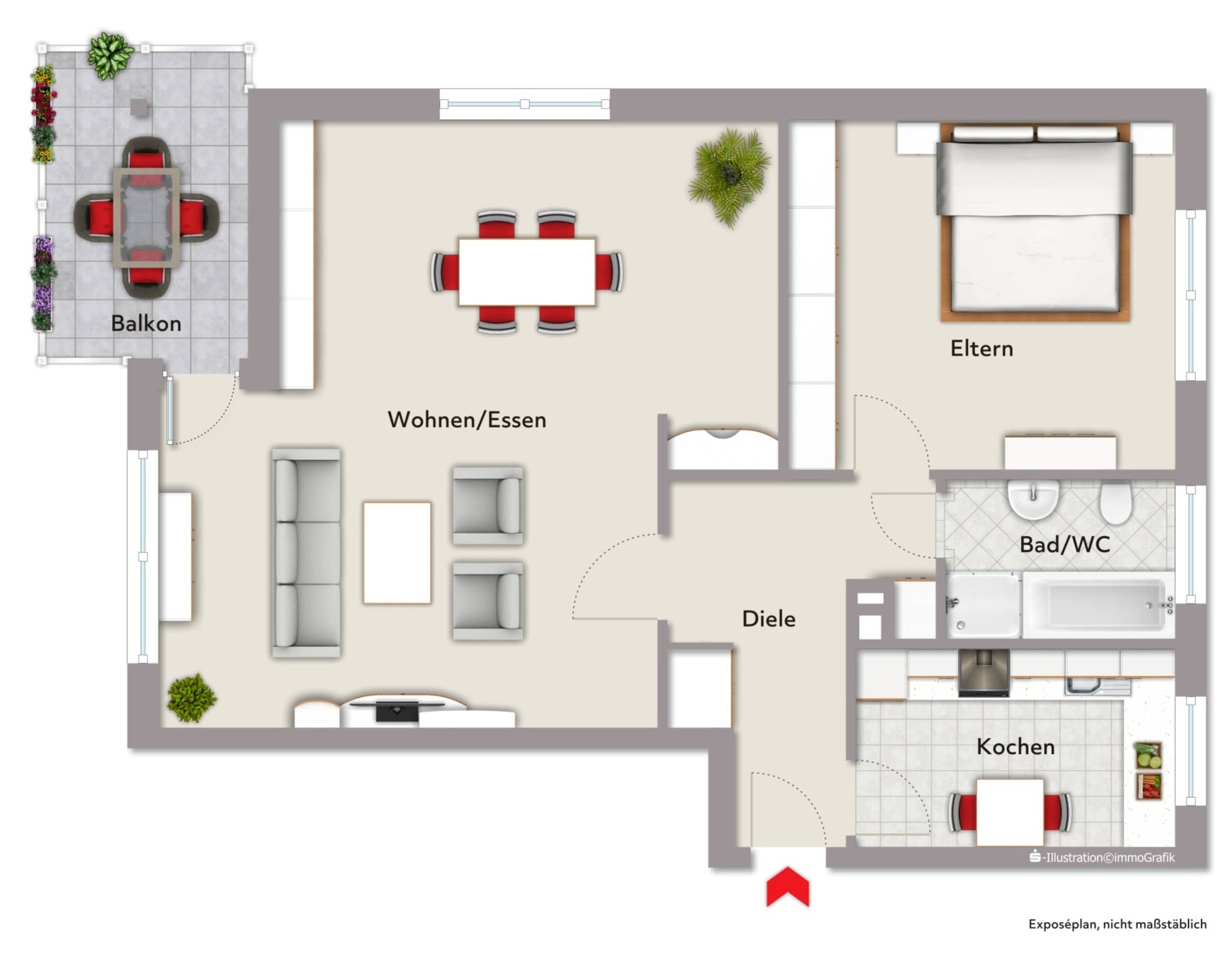 1. OG, rechts ...mit großem Balkoneinladende DieleWohnbereichBalkonKücheEssbereichSchlafzimmerBadmit Wanne und DuscheGartenansichtEingangsansichtGartenansicht2 ZKB im I. OG ca. 82 m² WohnflächeAuf dem Weg in Ihr neues Zuhause ...bin ich für Sie da. Ihr Max Rennebaum47850065