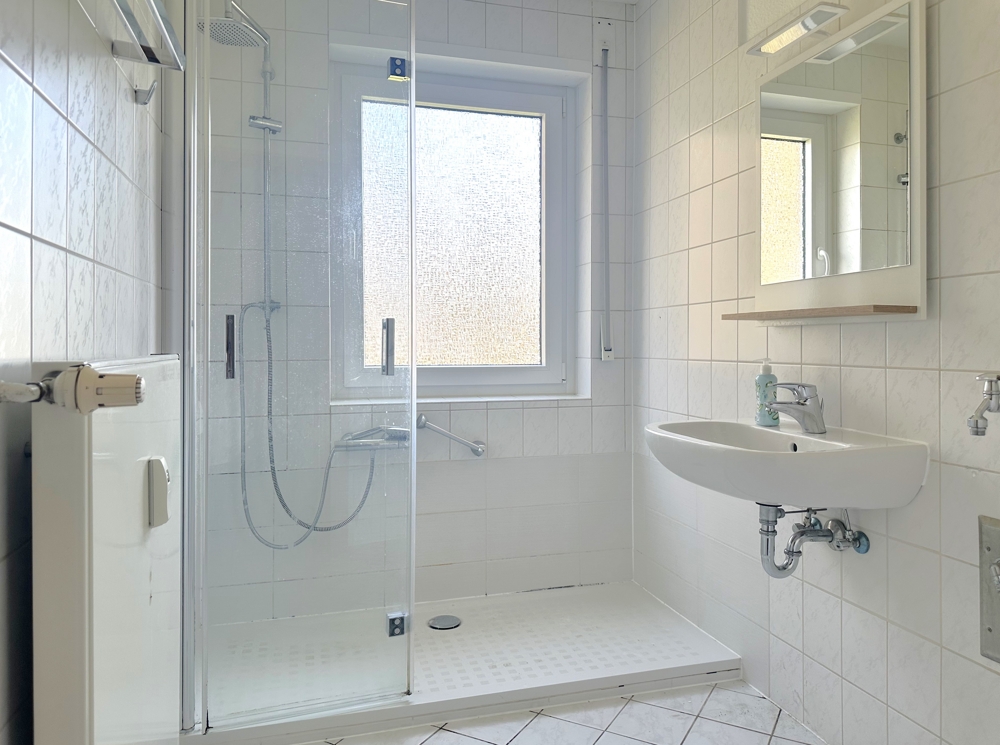 Modernisierte HaustüranlageGepflegtes TreppenhausFlurWohnzimmer mit BalkonzugangSonnenbalkonBlick ins Grüne vom SonnenbalkonKüche Küche SchlafzimmerSchlafzimmerGäste-WC mit FensterDuschbad mit FensterAnsicht vom Garten Hausansicht Eingangsseite