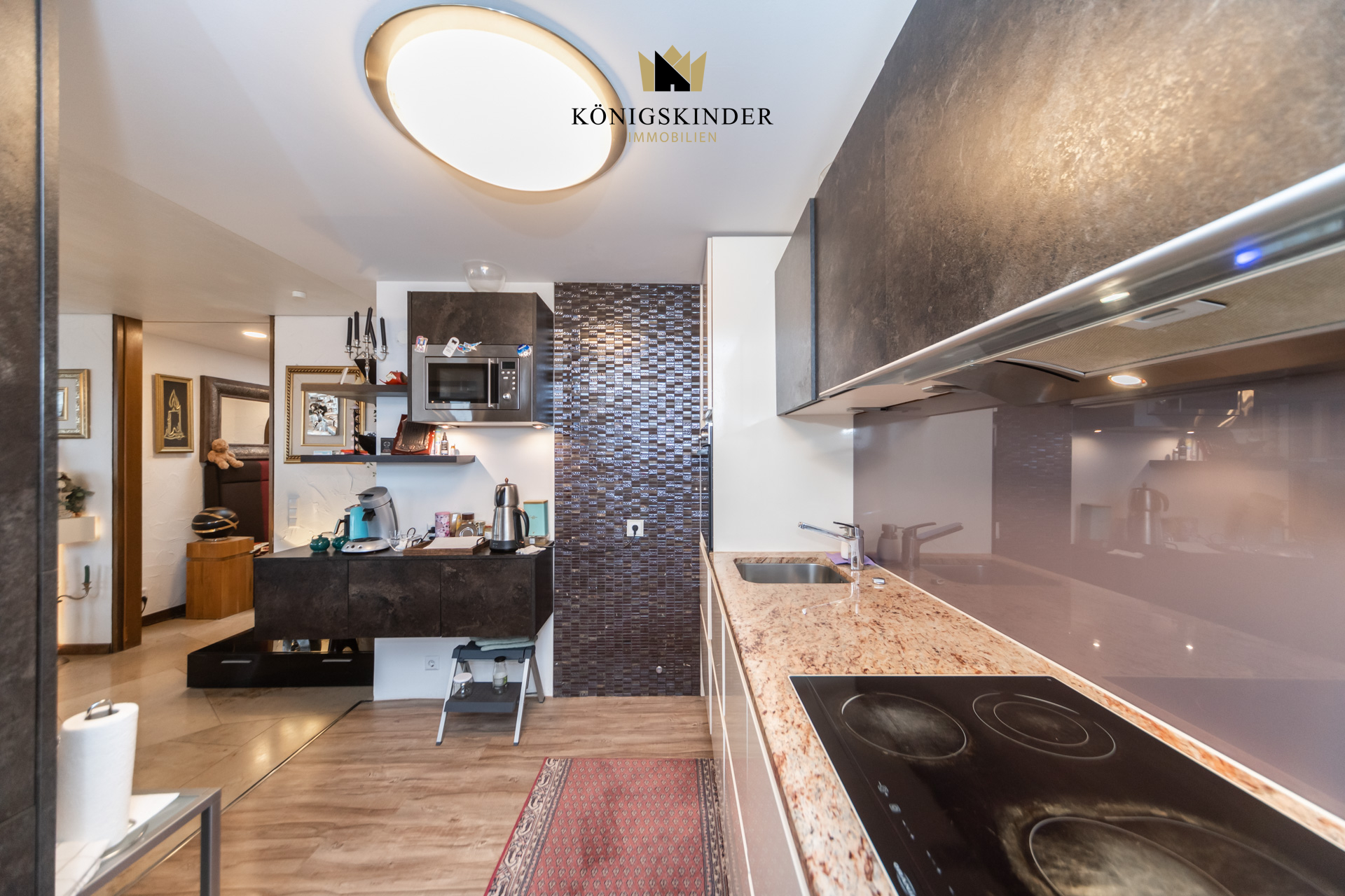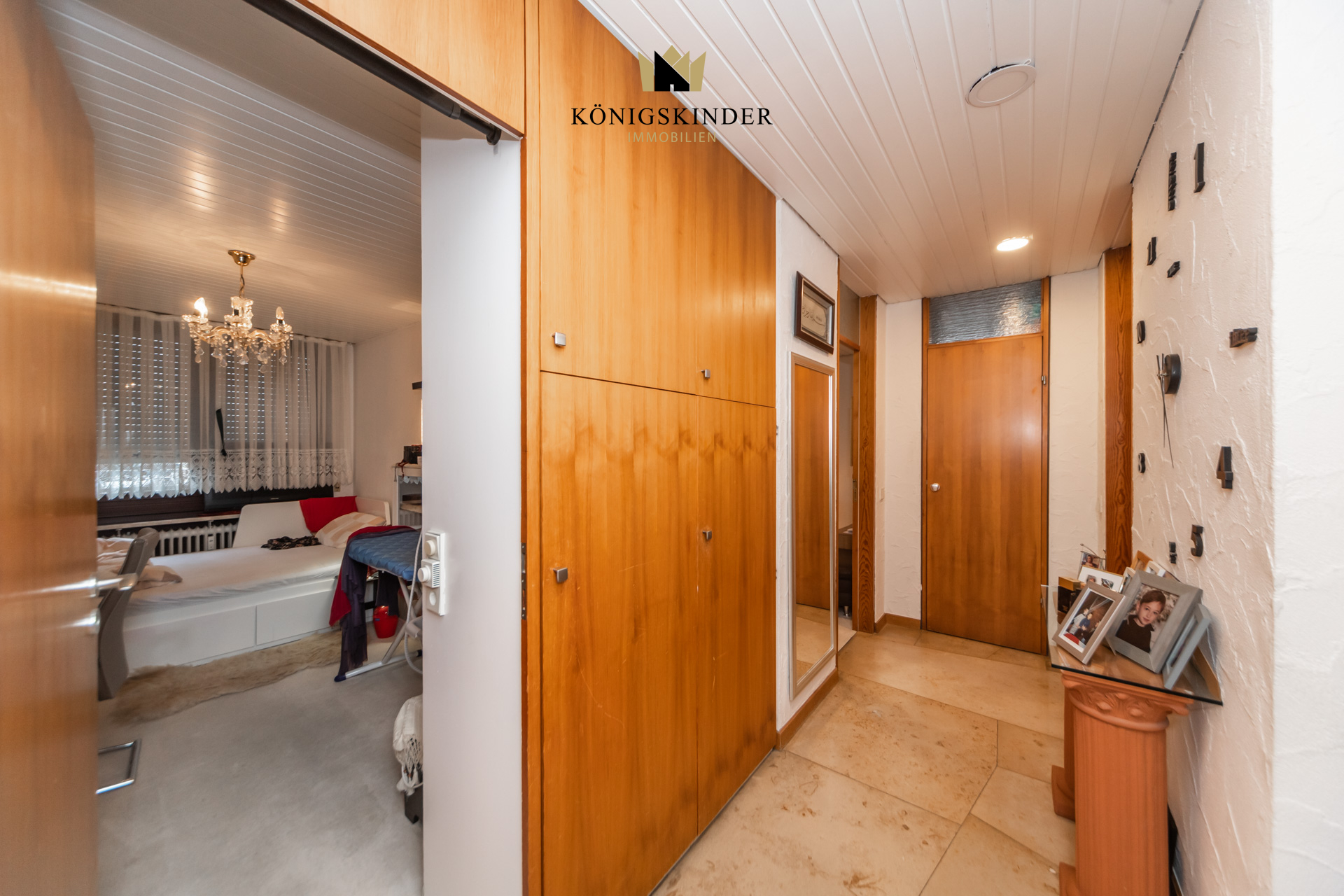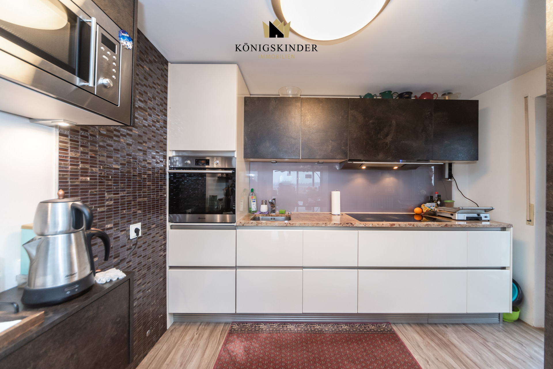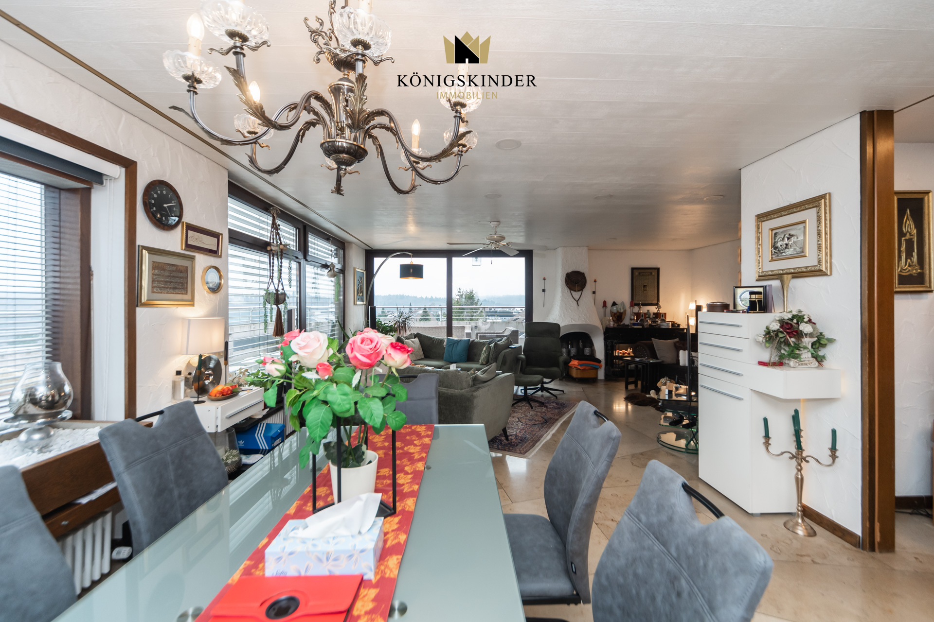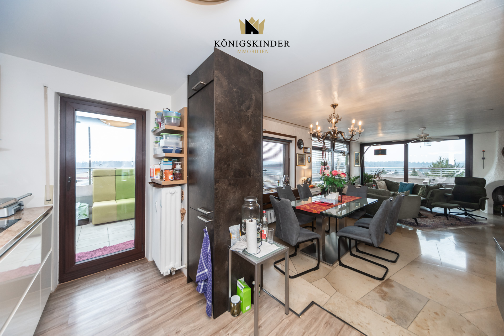 Die Wohnung liegt im 5. Stock eines gepflegten Mehrfamilienhauses aus dem Baujahr 1972 und wirkt durch die vielen Fenster wunderbar hell und offen. Herzstück ist der große Wohn- und Essbereich mit offener Küche – ein Raum, der sofort einlädt: zum Kochen, Zusammensitzen, Ankommen. Hier passt eine große Tafel genauso gut wie eine gemütliche Sofalandschaft, und durch die Nähe zur Terrasse wird Wohnen drinnen und draußen ganz selbstverständlich. Auch der restliche Grundriss ist angenehm durchdacht: großzügige Zimmer, die sich flexibel gestalten lassen – etwa mit einem Schlafzimmer und zwei Kinderzimmern oder alternativ mit Schlafzimmer, Kinderzimmer und einem ruhigen Homeoffice. Über den Flur sind alle Räume bequem erreichbar, was den Alltag einfach macht und die Wohnung sehr stimmig wirken lässt.