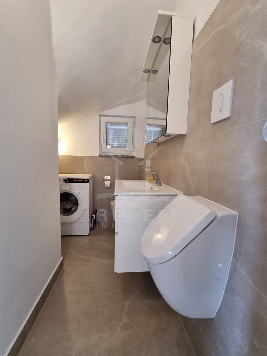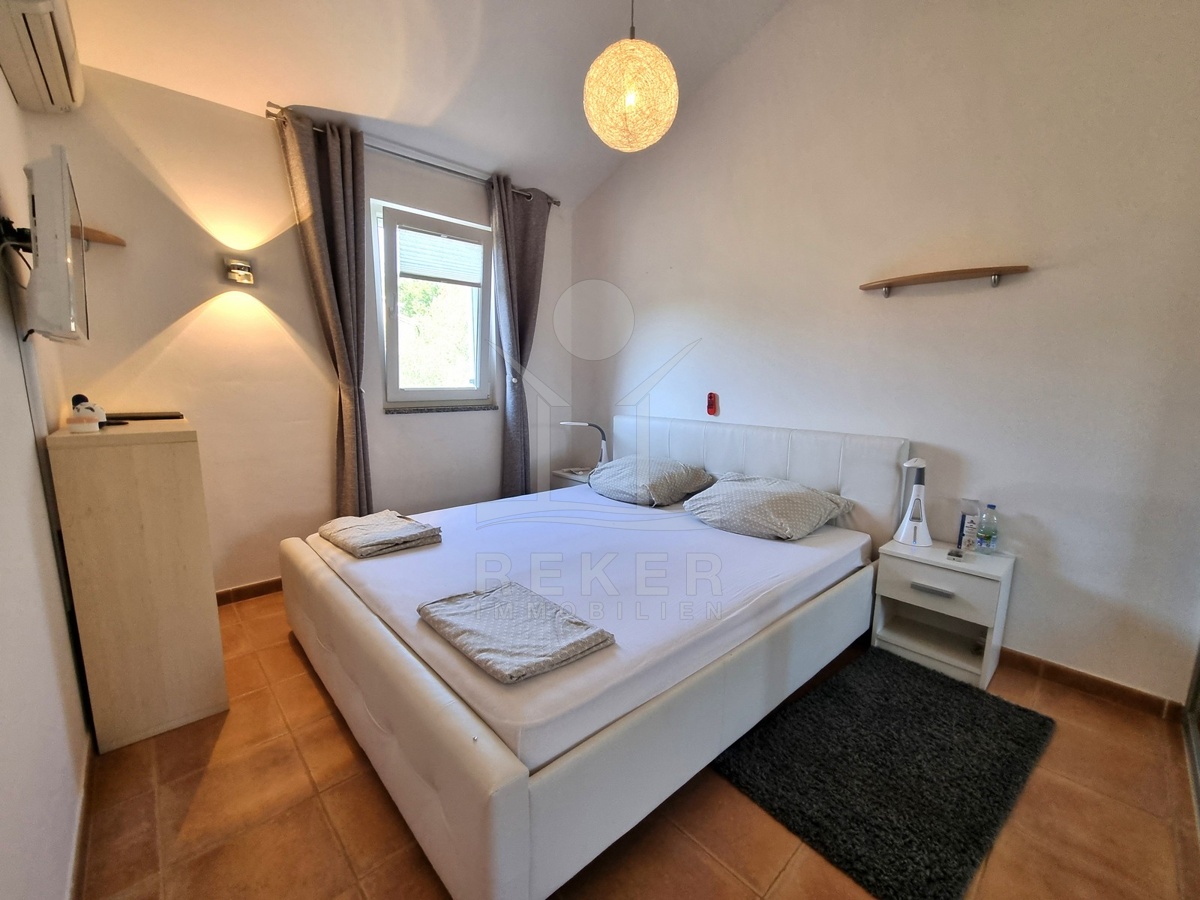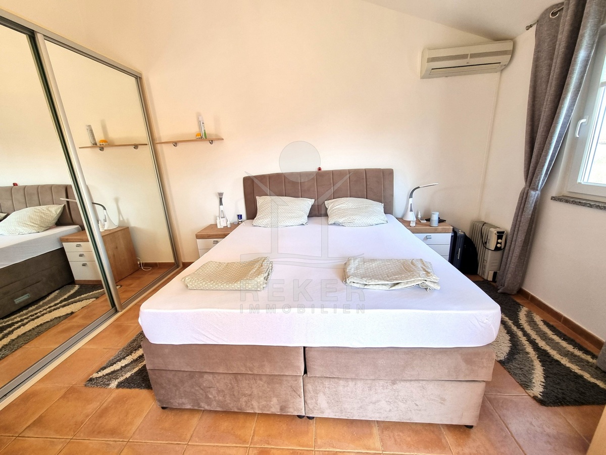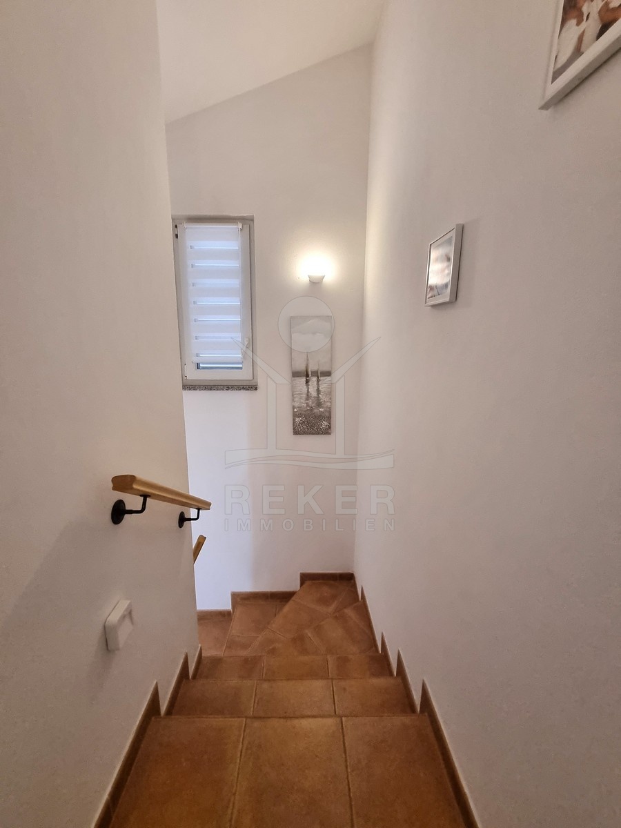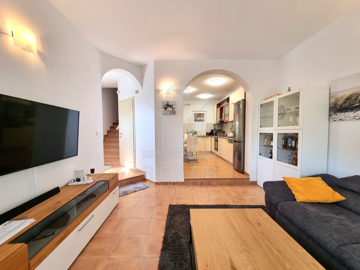 Vabriga gehört zu den charmanten Küstenorten Istriens. Hier wartet ein gepflegtes Doppelhaus, nur 1 km vom Meer und 50 m vom Ortszentrum entfernt. Alles für den Alltag erreichen Sie bequem zu Fuß: Geschäfte, Schule, Restaurants. Auch die Strände sind nah, rund 1,3 km entfernt. Direkt am Haus gibt es einen überdachten Stellplatz für Ihr Fahrzeug.