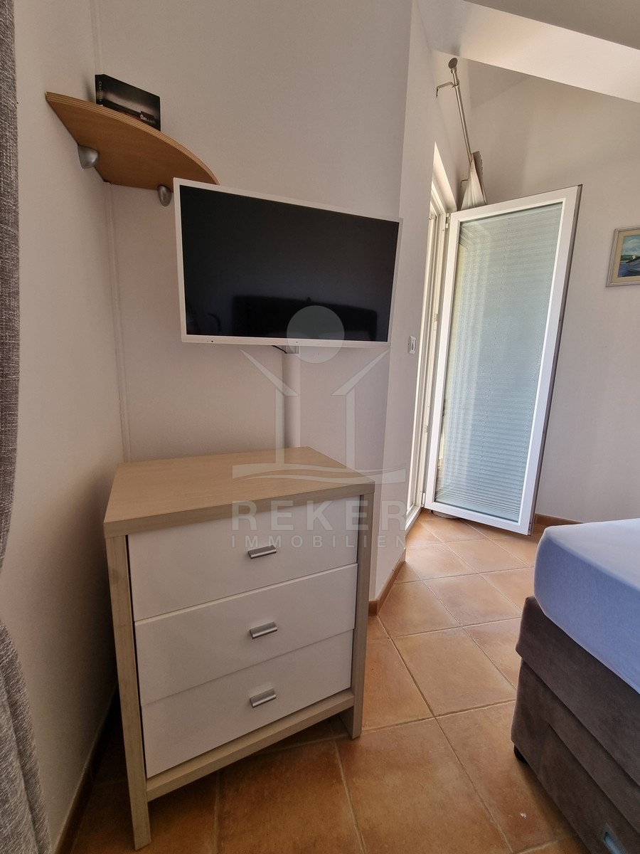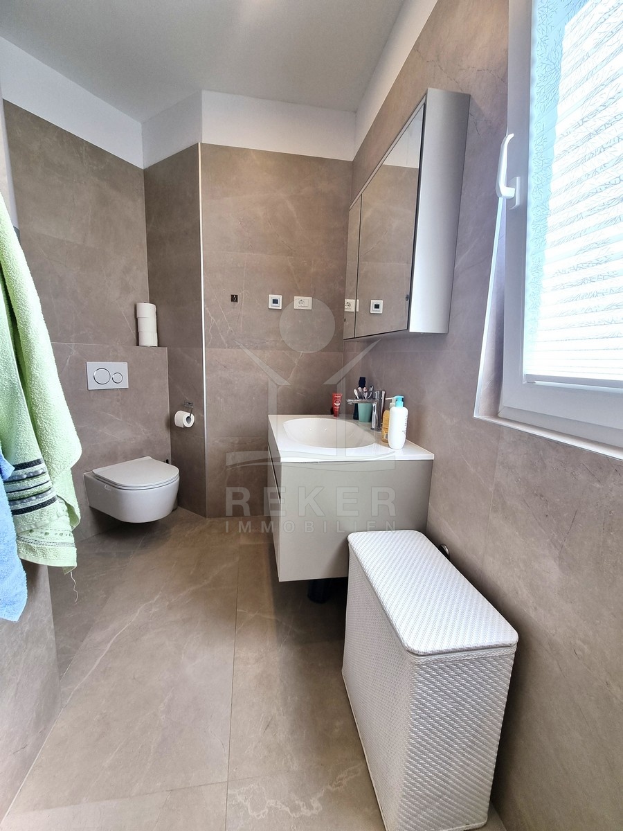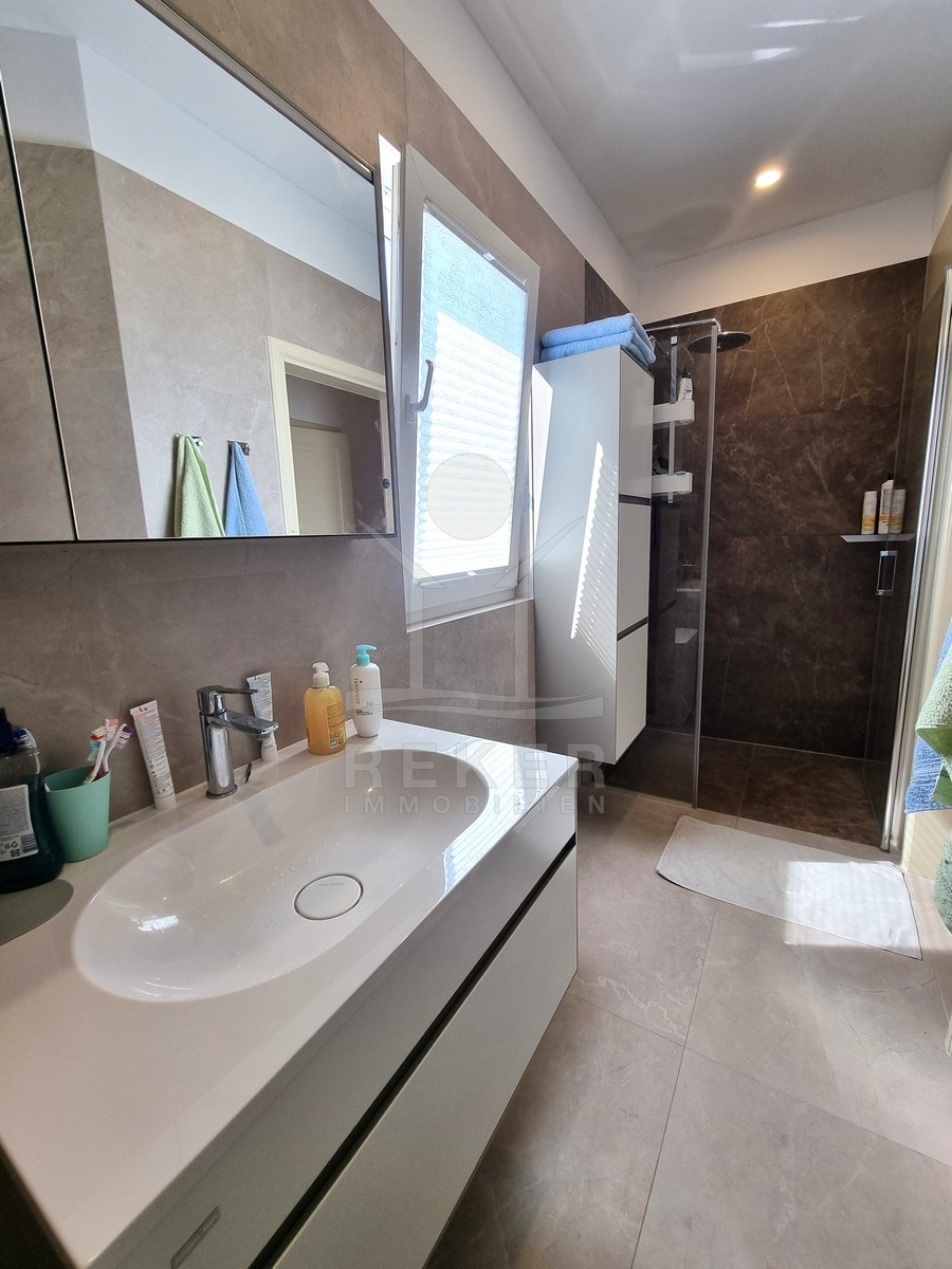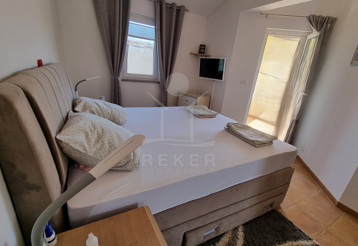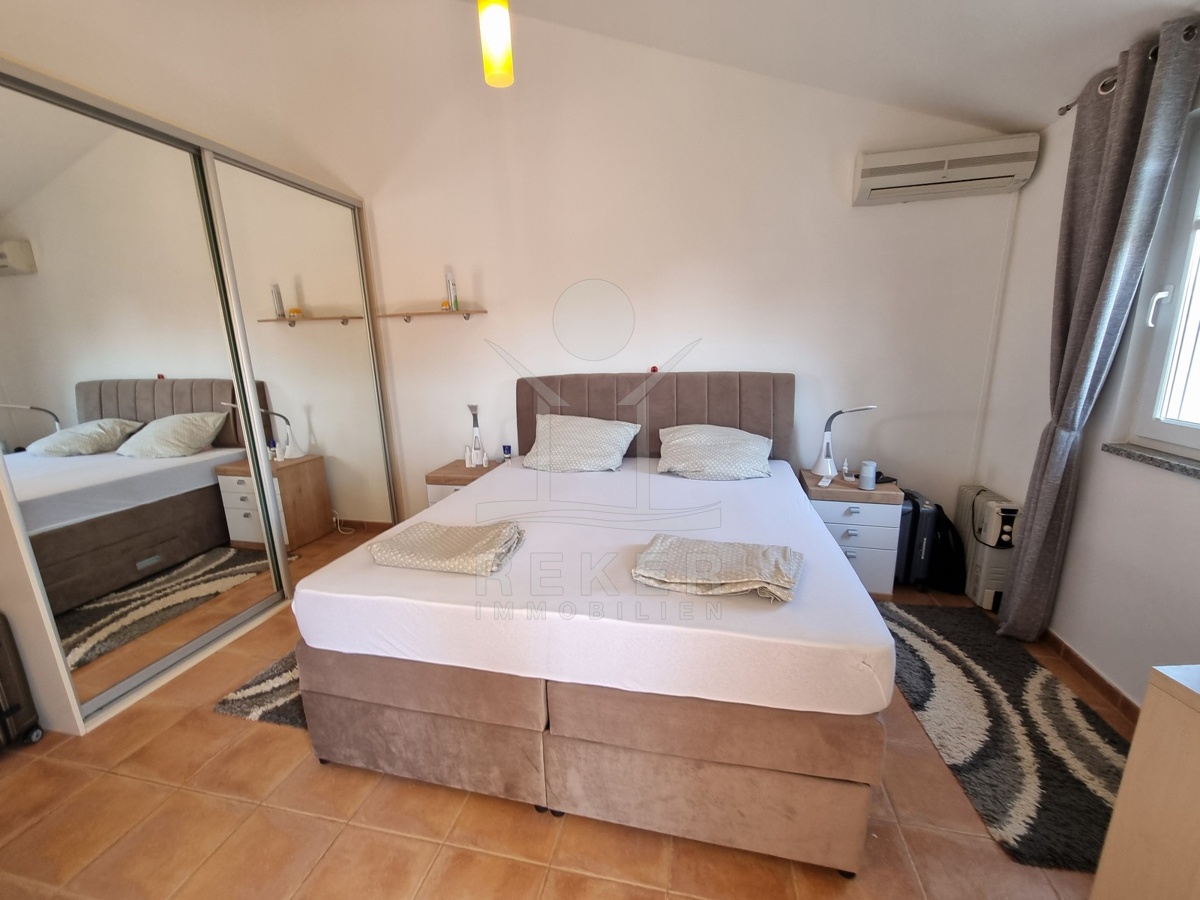 Vabriga gehört zu den charmanten Küstenorten Istriens. Hier wartet ein gepflegtes Doppelhaus, nur 1 km vom Meer und 50 m vom Ortszentrum entfernt. Alles für den Alltag erreichen Sie bequem zu Fuß: Geschäfte, Schule, Restaurants. Auch die Strände sind nah, rund 1,3 km entfernt. Direkt am Haus gibt es einen überdachten Stellplatz für Ihr Fahrzeug.