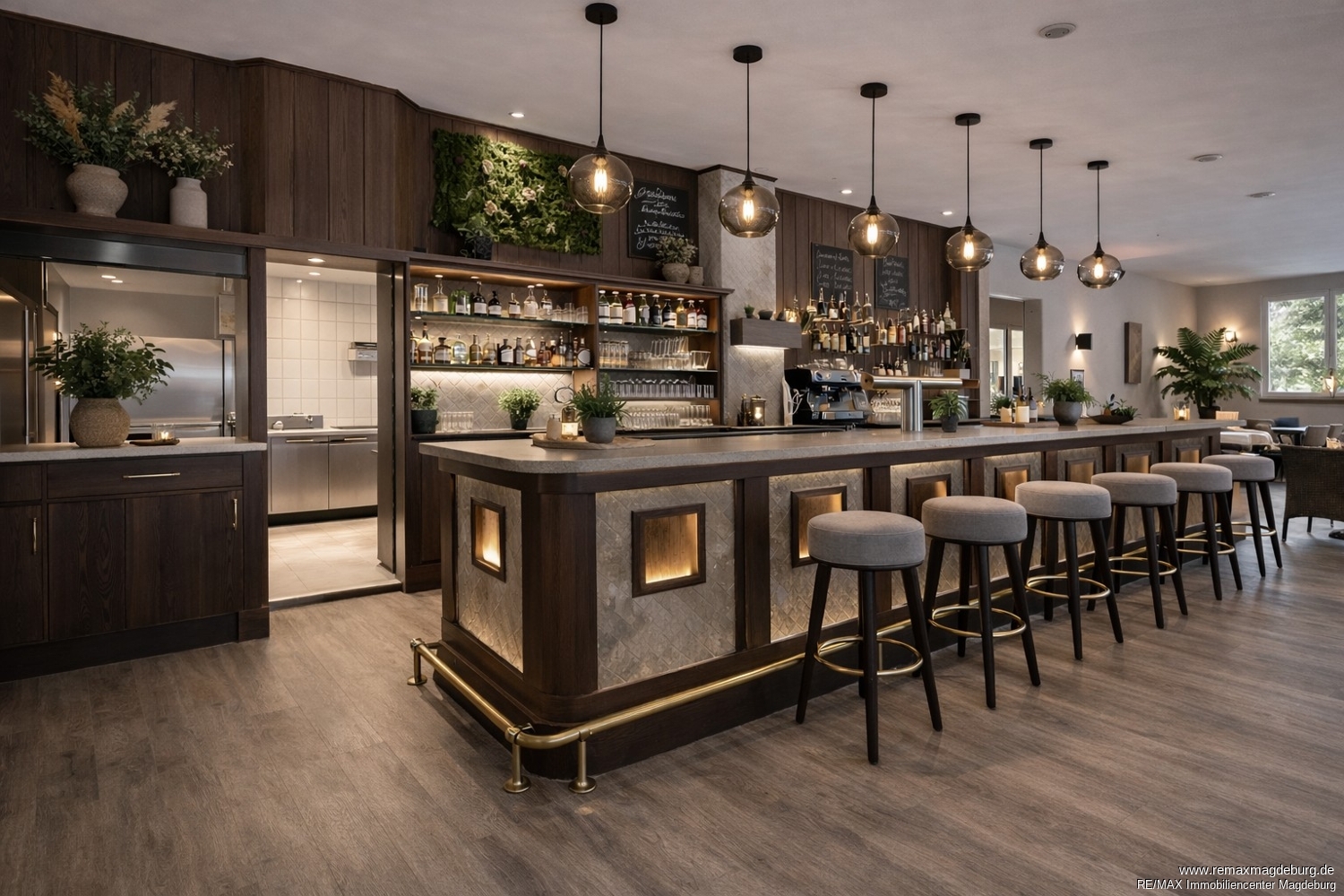 Auch der Außenbereich bietet erhebliches Potenzial: Die überdachte Terrasse mit einer Fläche von rund 82 m² ermöglicht eine wetterunabhängige Außengastronomie und erweitert die Sitzplatzkapazität deutlich. Zusätzlich steht eine gepflegte Garten- bzw. Rasenfläche als zugeordnete Sondernutzungsfläche zur Verfügung. Diese eignet sich ideal für einen Biergarten, saisonale Außenbewirtung oder individuelle Eventformate im Freien.