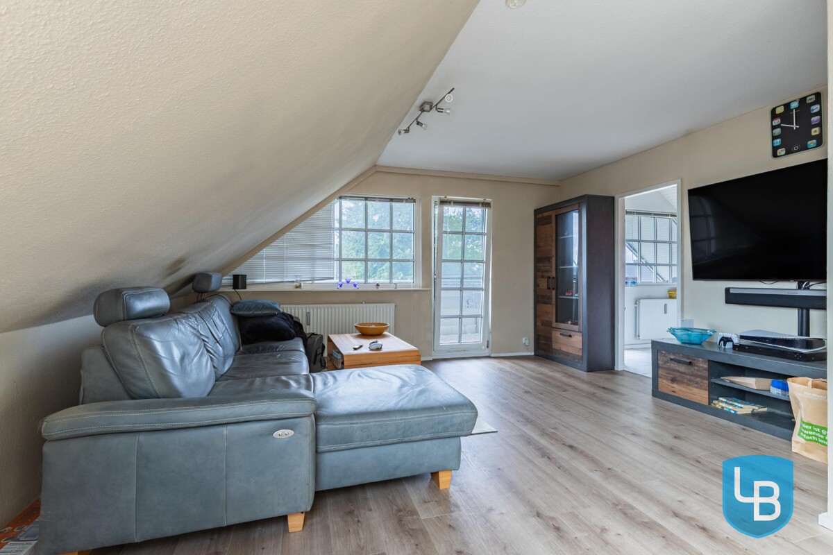 Im Dachgeschoss setzt sich das flexible Wohnkonzept fort. Auch hier stehen alle notwendigen Räume zur Verfügung, um unabhängig zu leben – einschließlich einer Küche, einem Bad und einem eigenen Zugang zur Loggia, die sowohl vom Wohnzimmer als auch von der Küche aus betreten werden kann. Über diese Etage ist auch der Spitzboden zugänglich, der als zusätzlicher Stauraum dient und die Dachgeschosswohnung funktional ergänzt – ideal für Dinge, die schnell erreichbar, aber nicht ständig präsent sein sollen.
