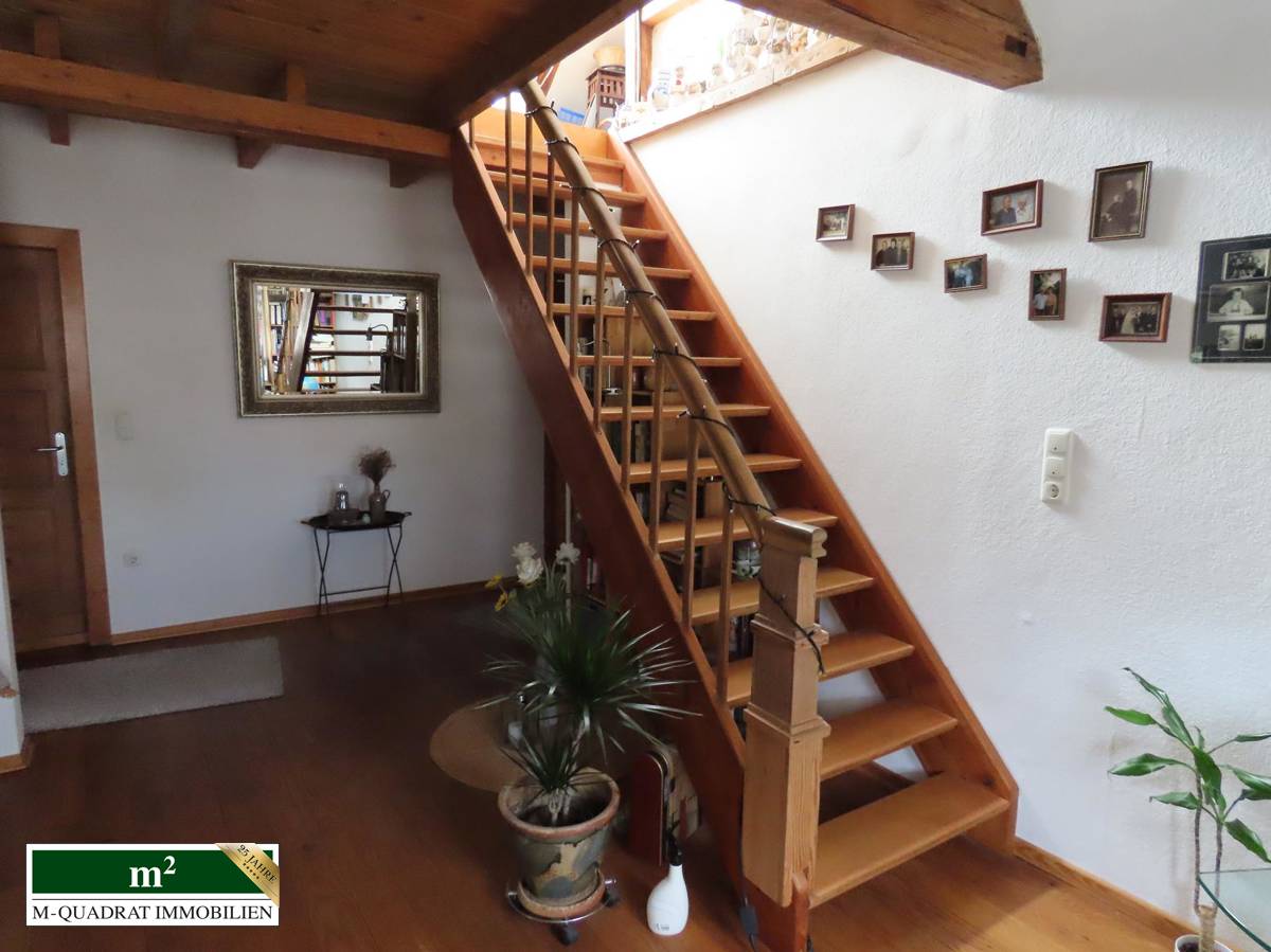 Die Wohnung besticht durch ihren gemütlichen Charme, der durch die Böden, Decken, Treppe und Balken aus Massivholz erzeugt wird.