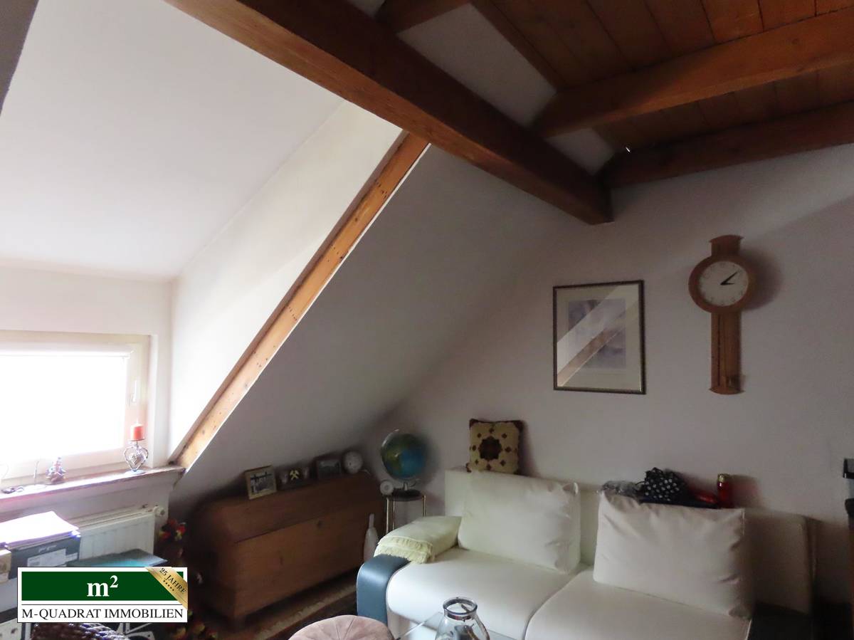 Die Dachschrägen verringern kaum erkennbar das tatsächliche Flächenmaß der Wohnung. Die in den Grunddaten angegebenen Werte können daher real mit etwa 20% mehr Raum angesehen werden.