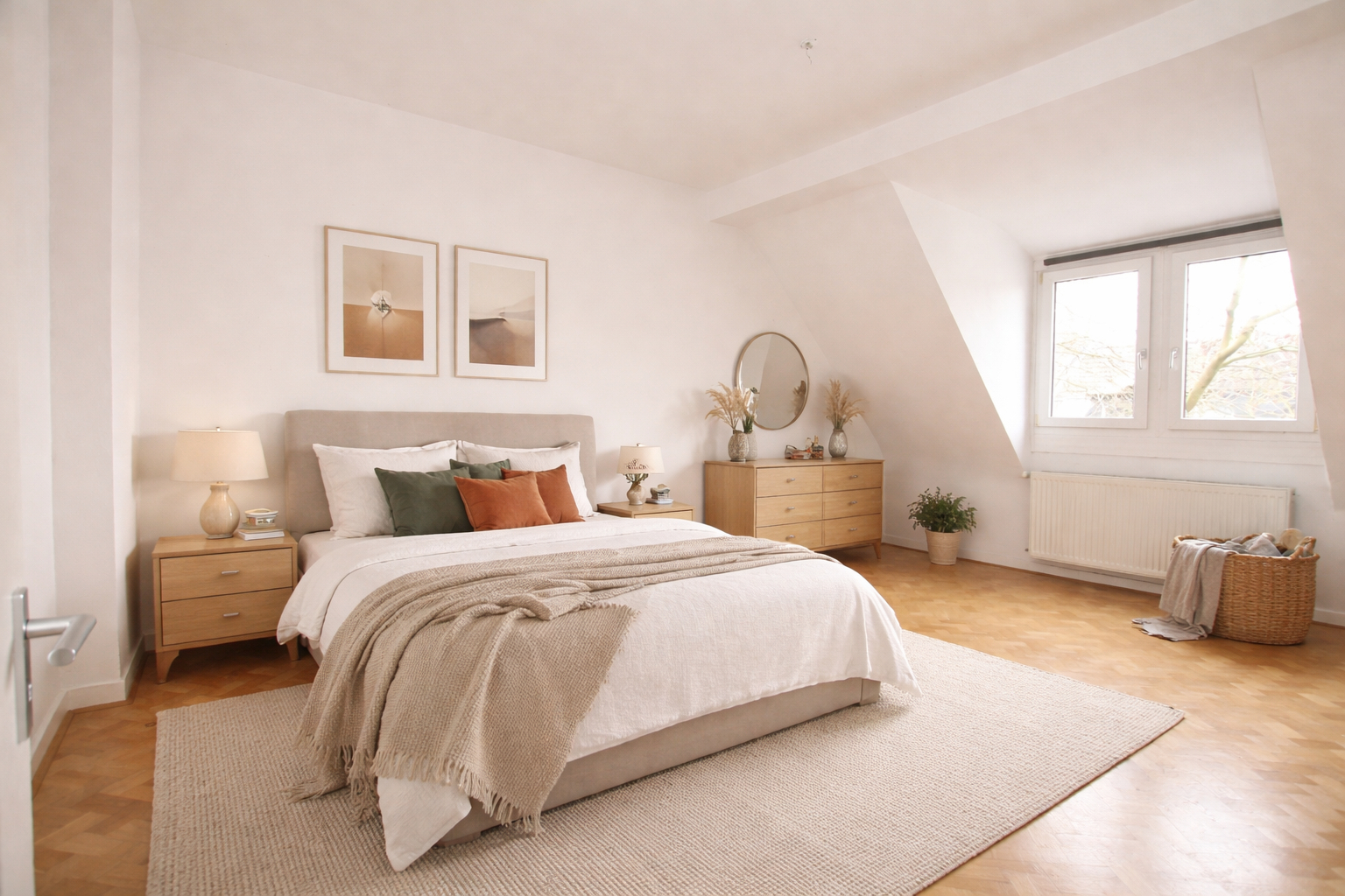 Das Schlafzimmer verfügt über einen vernünftigen Zuschnitt und genügend Stellmöglichkeiten für ein großes Bett sowie einen geräumigen Kleiderschrank. Des weiteren steht Ihnen noch ein weiteres Zimmer zur Verfügung , welches als Kinderzimmer oder Büro genutzt werden kann. Die Wohnung eignet sich sowohl für Paare als auch für kleine Familien oder Singles mit etwas mehr Platzbedarf.