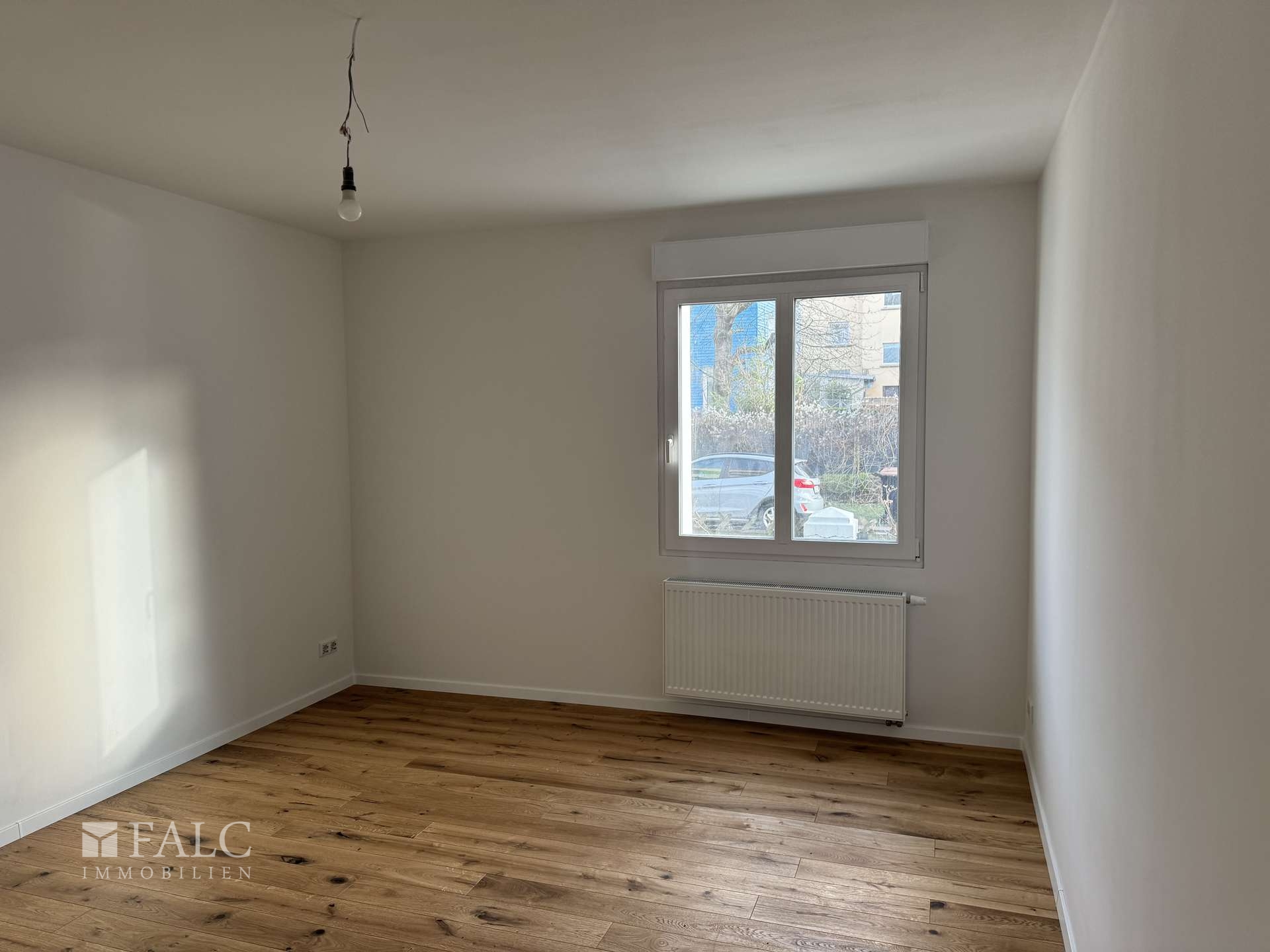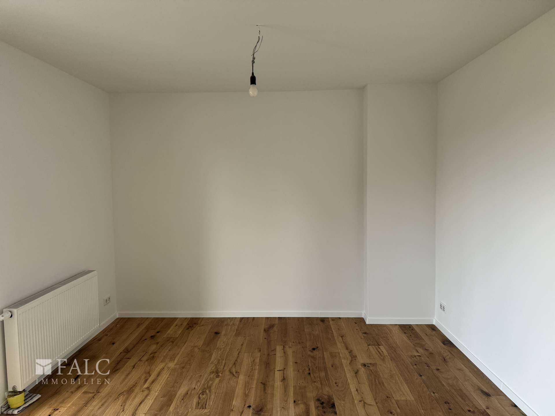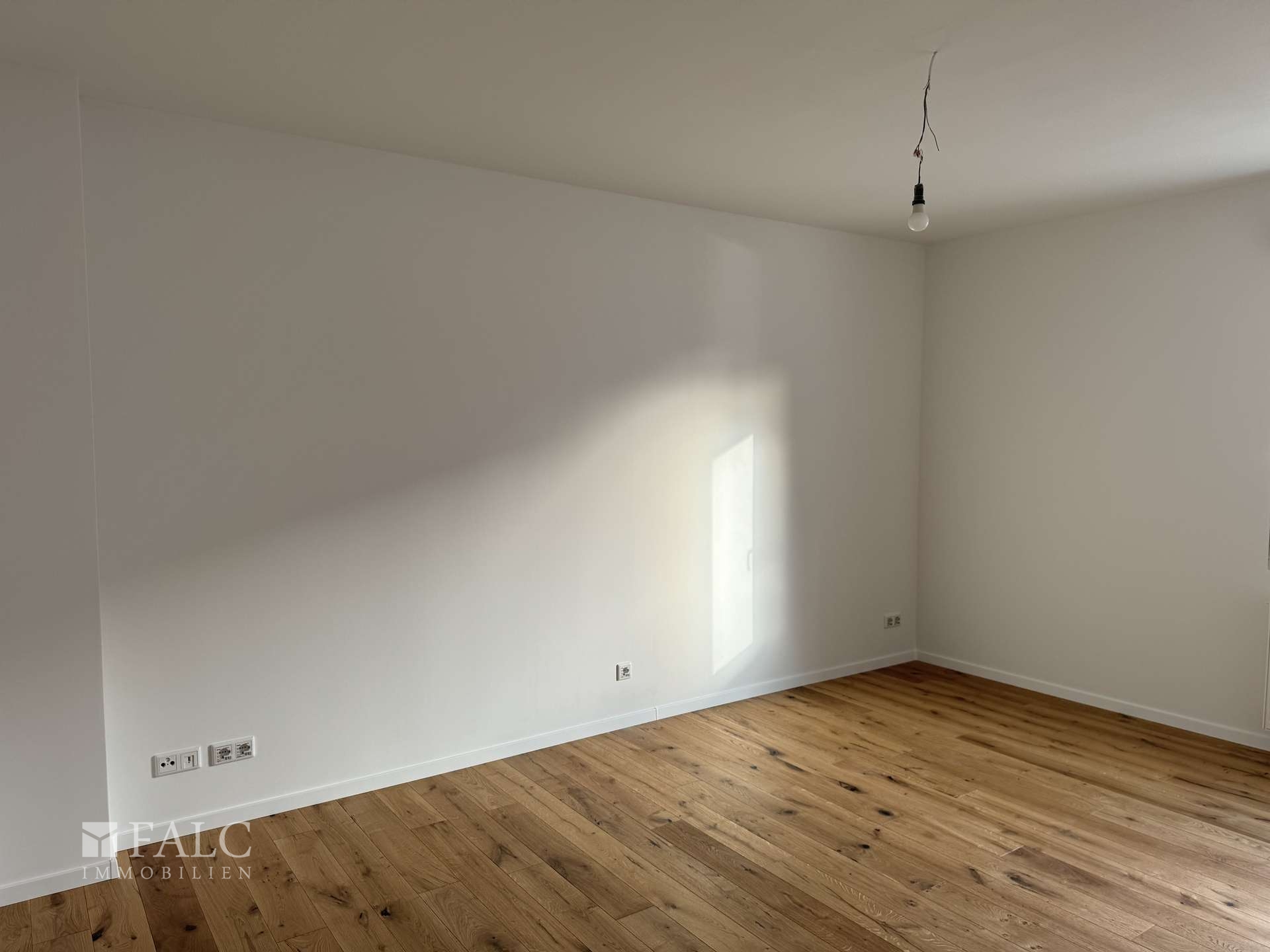 Rechts vom Flur befindet sich das nach Osten ausgerichtete Schlafzimmer, welches morgens von sanftem Tageslicht durchflutet wird. Durch die dreifach verglasten Fenster ist der Raum hervorragend schallisoliert und ermöglichen eine ungestörte Nachtruhe.