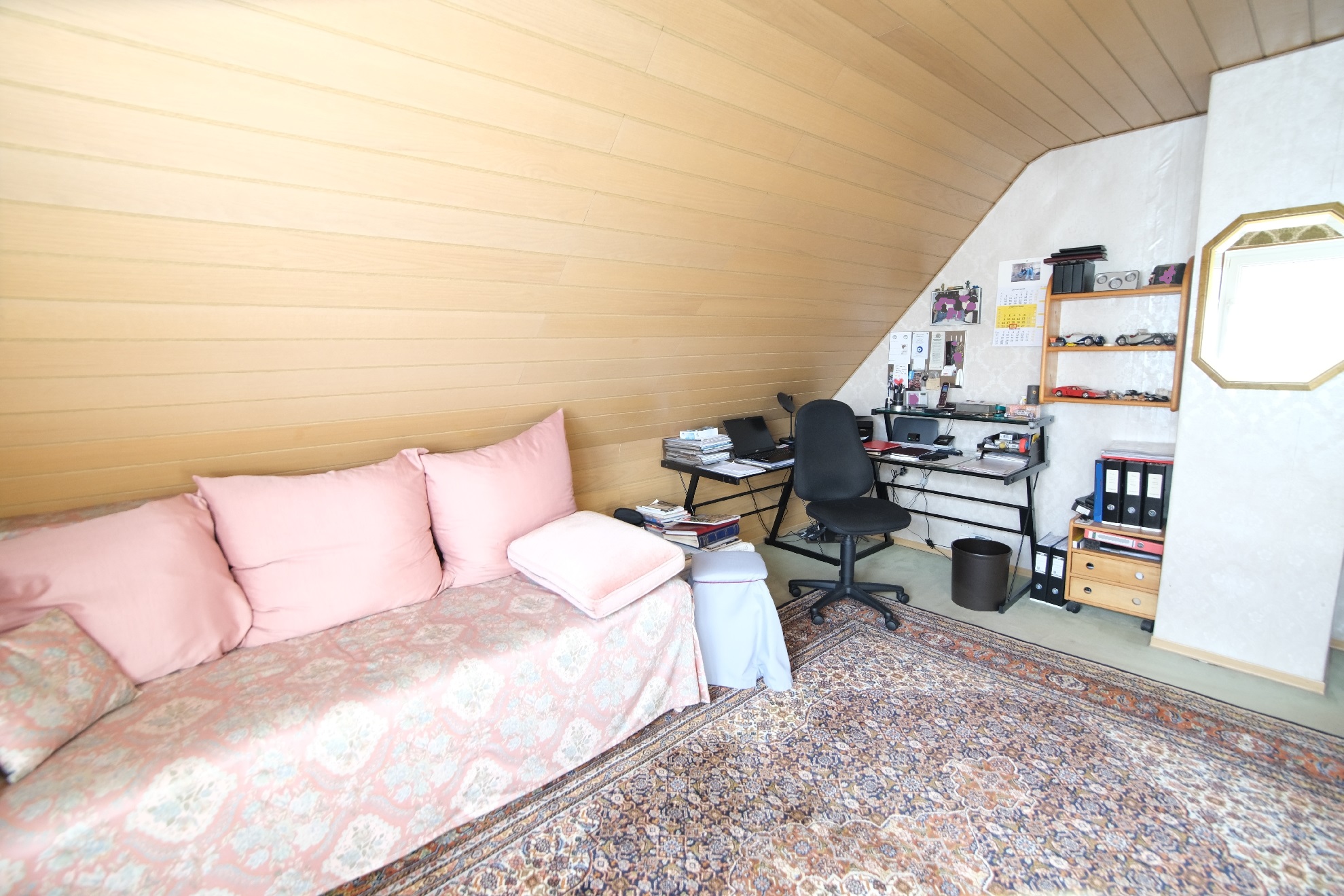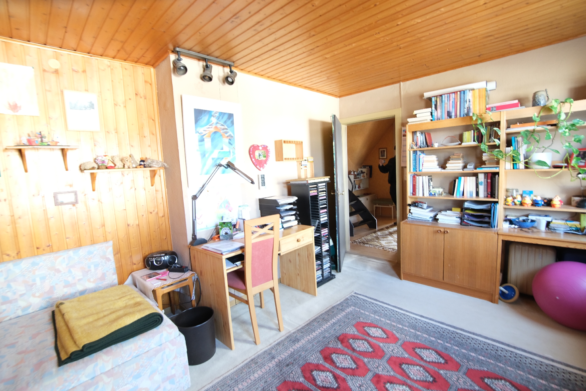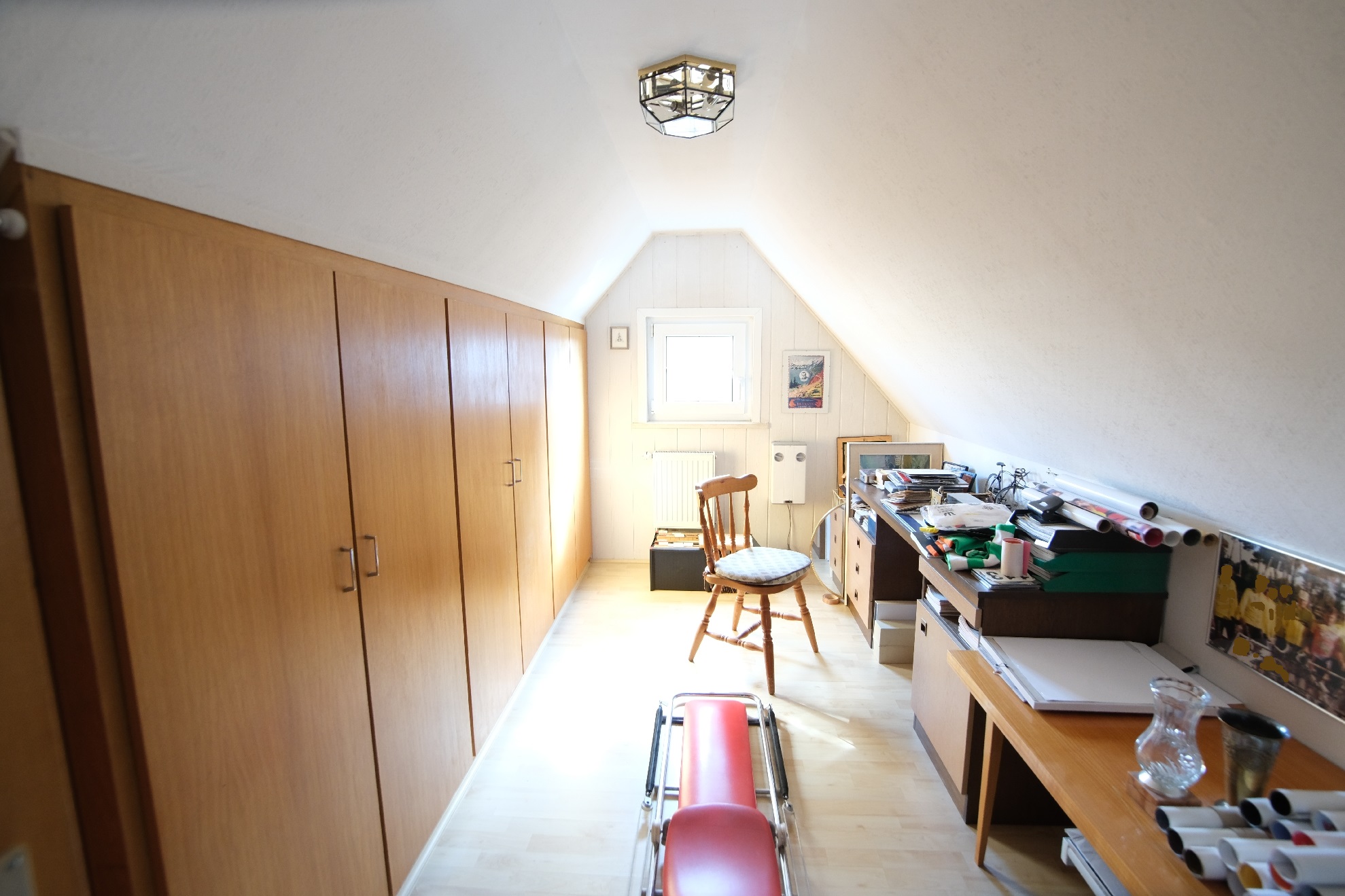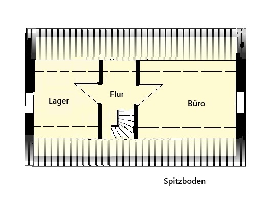Spitzboden ca. 22 m² Nutzfläche: Der Spitzboden im Dachgeschoss von ca. 22 m² Nutzfläche kann über eine Wendeltreppe erreicht werden. Hier befinden sich ein Büro / Arbeitsraum, ein Kinderspielzimmer oder Lagerraum und ein Treppen-und Flurbereich.