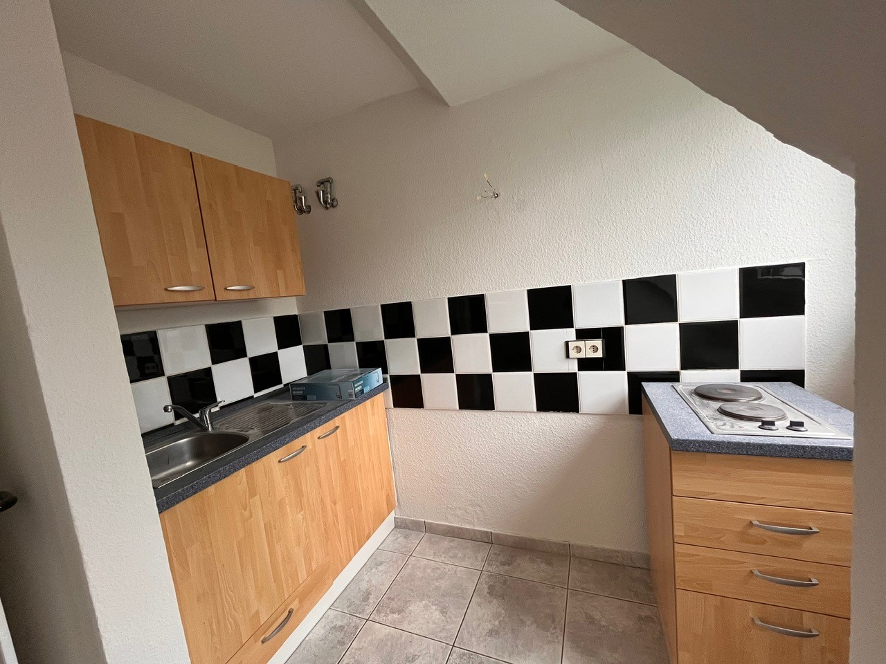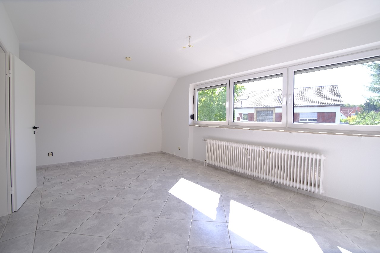 Diese besondere 2-Zimmerwohnung mit neuem Badezimmer befindet sich im Dachgeschoss eines Mehrfamilienhauses mit 4 Mietparteien und teilt sich wie folgt auf: Aus dem Eingangsbereich gelangen Sie in das auf der linken Seite liegende Badezimmer mit WC, Handwaschbecken und Dusche. Angrenzend befindet sich eine praktische Abstellkammer. Am Ende des Flurs liegt das große Wohnzimmer mit einer Küchenzeile. Aus dem Wohnzimmer gelangen Sie über eine kleine Treppe in das räumlich abgetrennte Schlafzimmer mit Zugang zu dem großzügigen Balkon mit Blick ins Grüne. Zu der Wohnung gehört ein Kellerraum und ein gemeinschaftlicher Wasch- und Trockenraum. Öffentliche PKW-Stellplätze sind in der Nähe der Wohnung ausreichend vorhanden!