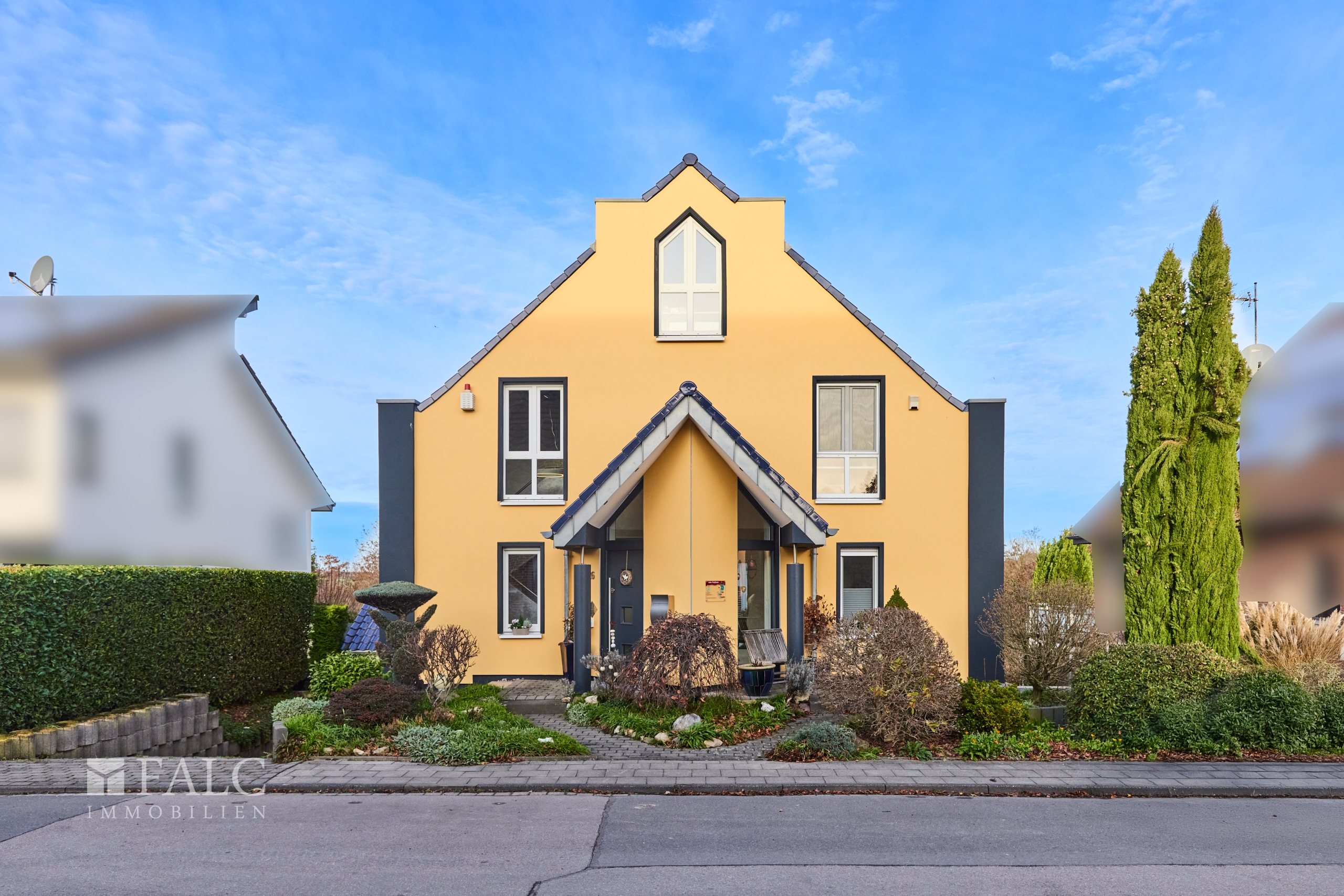 Willkommen in Ihrem neuen Zuhause! Über Ihre Wohnstraße gelangend parken Sie Ihre PKWs bequem in der großzügigen Garage des Hauses. Vor der Türe befinden sich für Familie oder Freunde genügend kostenlose Stellplätze.
