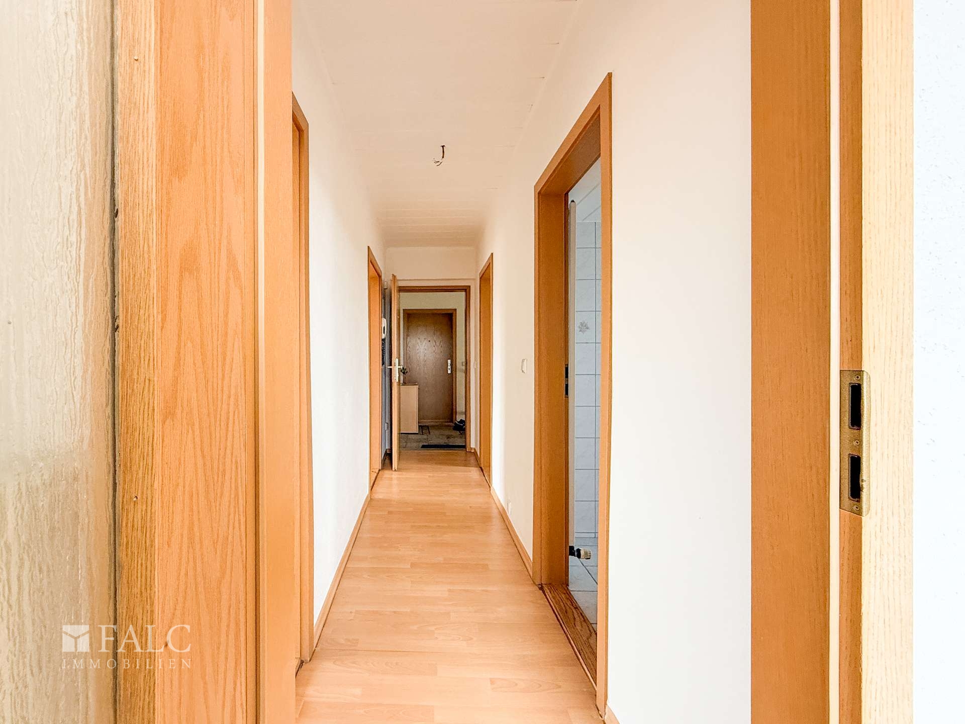 Beim Betreten dieser charmanten 3-Zimmer-Wohnung mit einer Wohnfläche von 53,6 m² werden Sie von einem einladenden Flur empfangen, der alle Räume geschickt miteinander verbindet. Gleich zu Ihrer Rechten befindet sich das helle Wohnzimmer, das durch große Fenster mit Tageslicht durchflutet wird. Der Raum bietet ausreichend Platz für eine gemütliche Sitzecke und einen Essbereich.