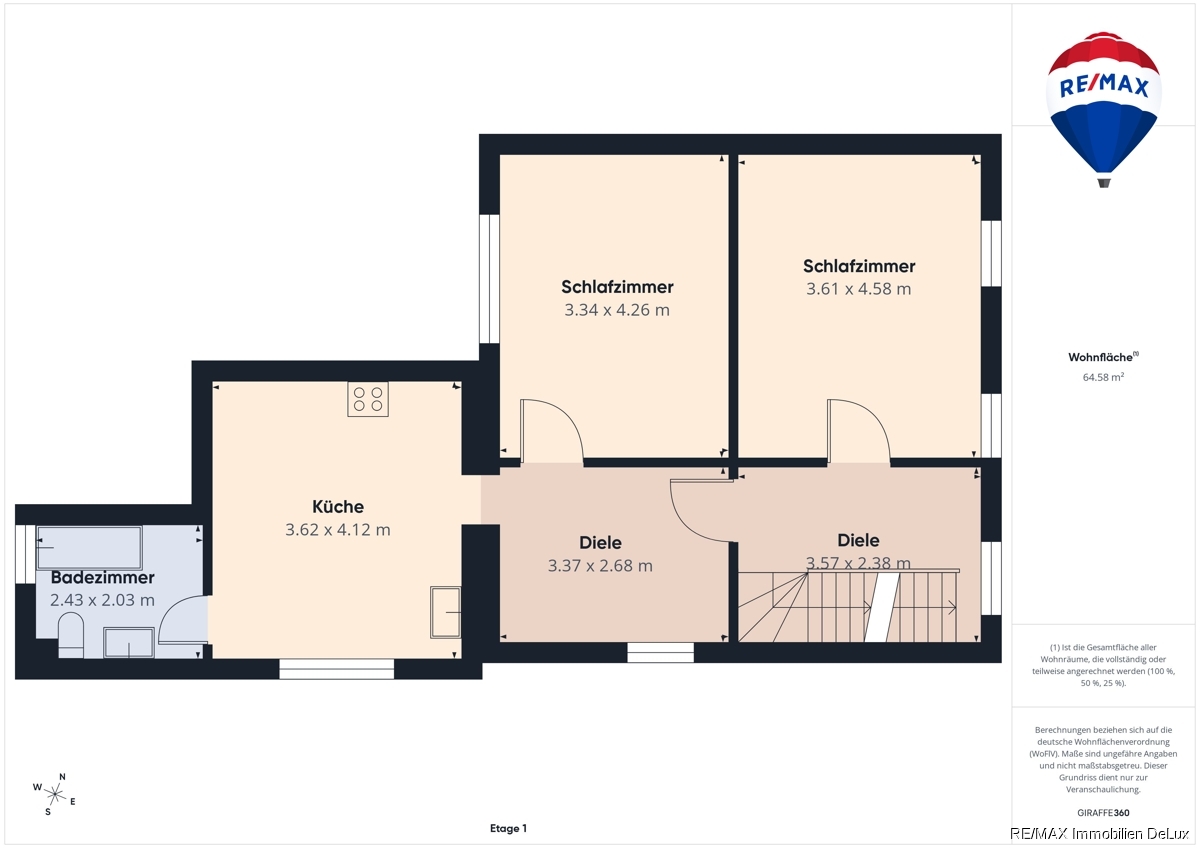 Maklerprovision in Höhe 3,57% inkl. 19 % MwSt. vom Kaufpreis ist mit Abschluss des Kaufvertrages verdient und fällig. RE/MAX erhält einen unmittelbaren Zahlungsanspruch gegenüber dem Käufer (Vertrag zugunsten Dritter, § 328 BGB). Hinweise: Bitte beachten Sie, dass dieses Angebot anhand der uns vom Eigentümer zur Verfügung gestellten Daten und Unterlagen erstellt wurde. Trotz aller Sorgfalt können wir für die Richtigkeit und Vollständigkeit der Angaben keine Gewähr übernehmen. Verbraucherinformationen: Online-Streitbeilegung gemäß Art. 14 Abs. 1 ODR-VO: Die Europäische Kommission stellt eine Plattform zur Online-Streitbeilegung (OS) bereit, die Sie hier finden: ec.europa.eu/consumers/odr