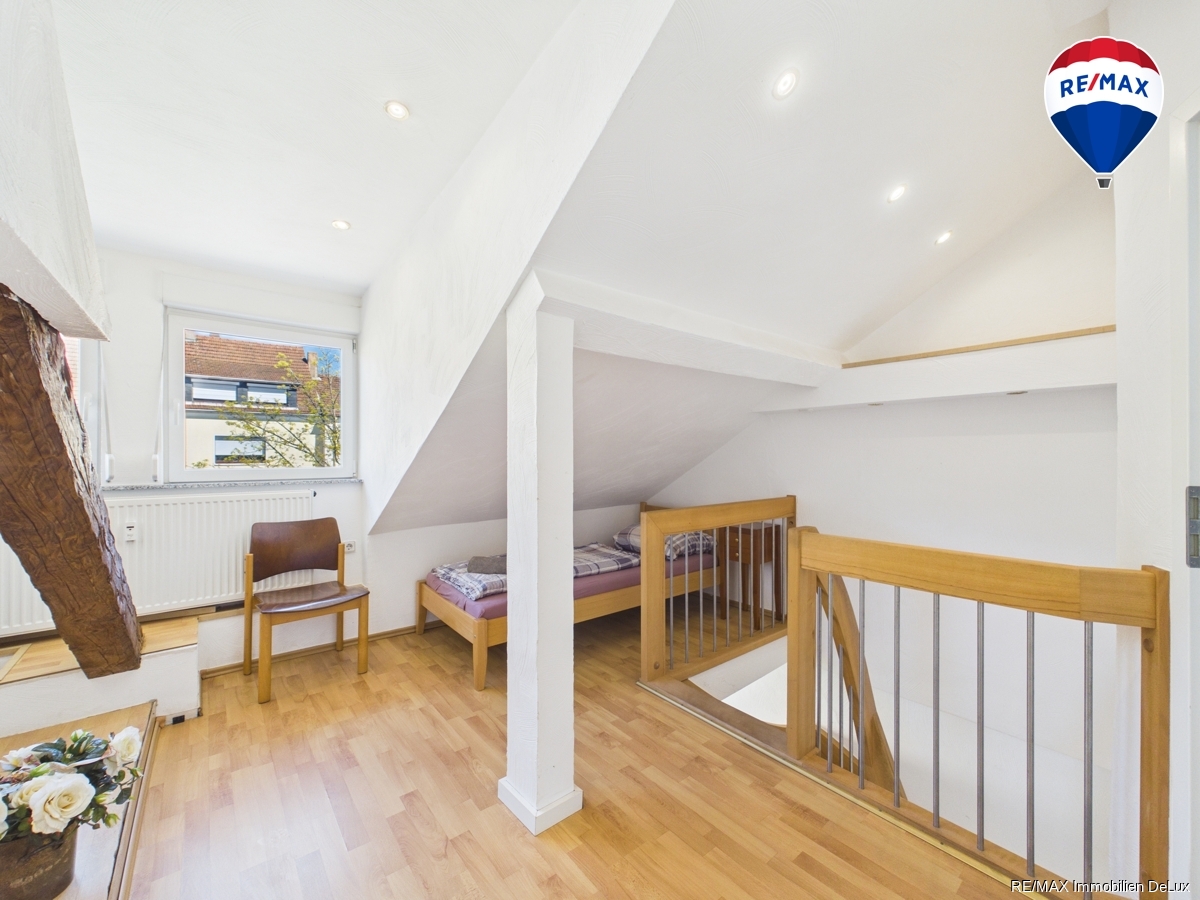 Im Dachgeschoss befinden sich zwei weitere Schlafzimmer sowie ein zusätzliches Badezimmer. Die vorhandenen Dachschrägen verleihen den Räumen eine besonders gemütliche Atmosphäre und schaffen ein wohnliches Ambiente. Trotz der Schrägen sind die Räume gut nutzbar und bieten sich ideal als Schlaf-, Gäste- oder Rückzugsräume an. Diese Etage eignet sich hervorragend für größere Familien oder zur klaren Trennung von Wohnbereichen.