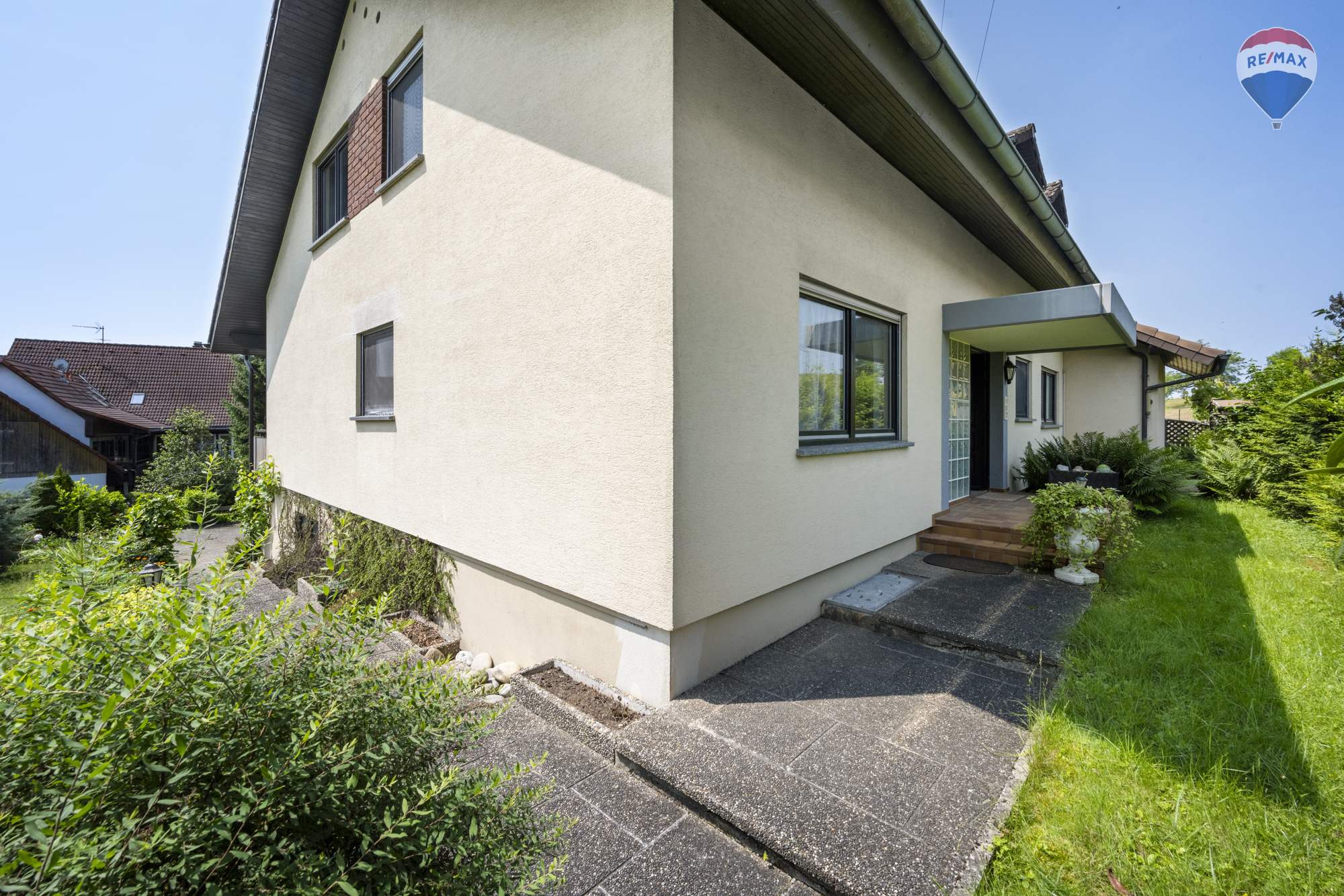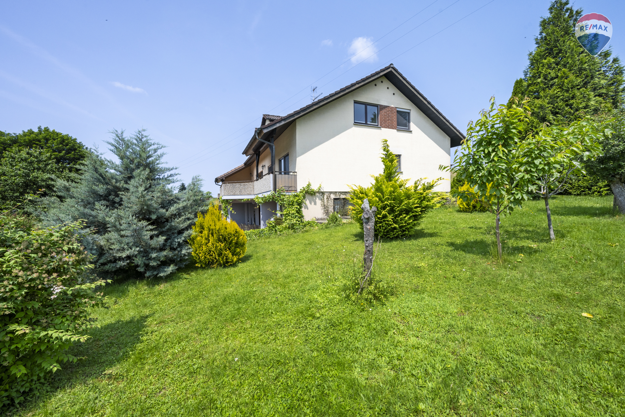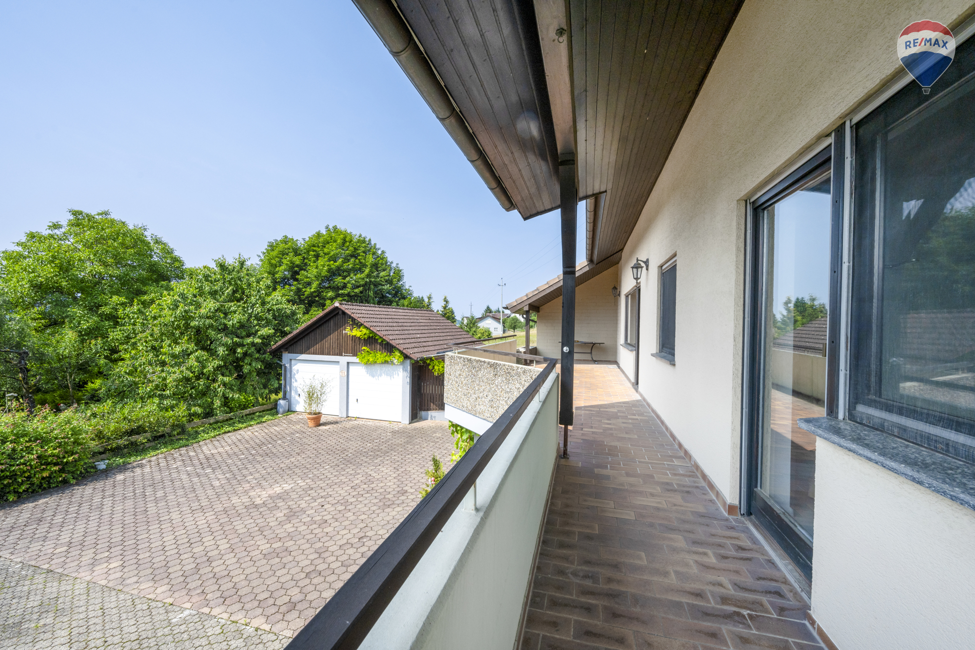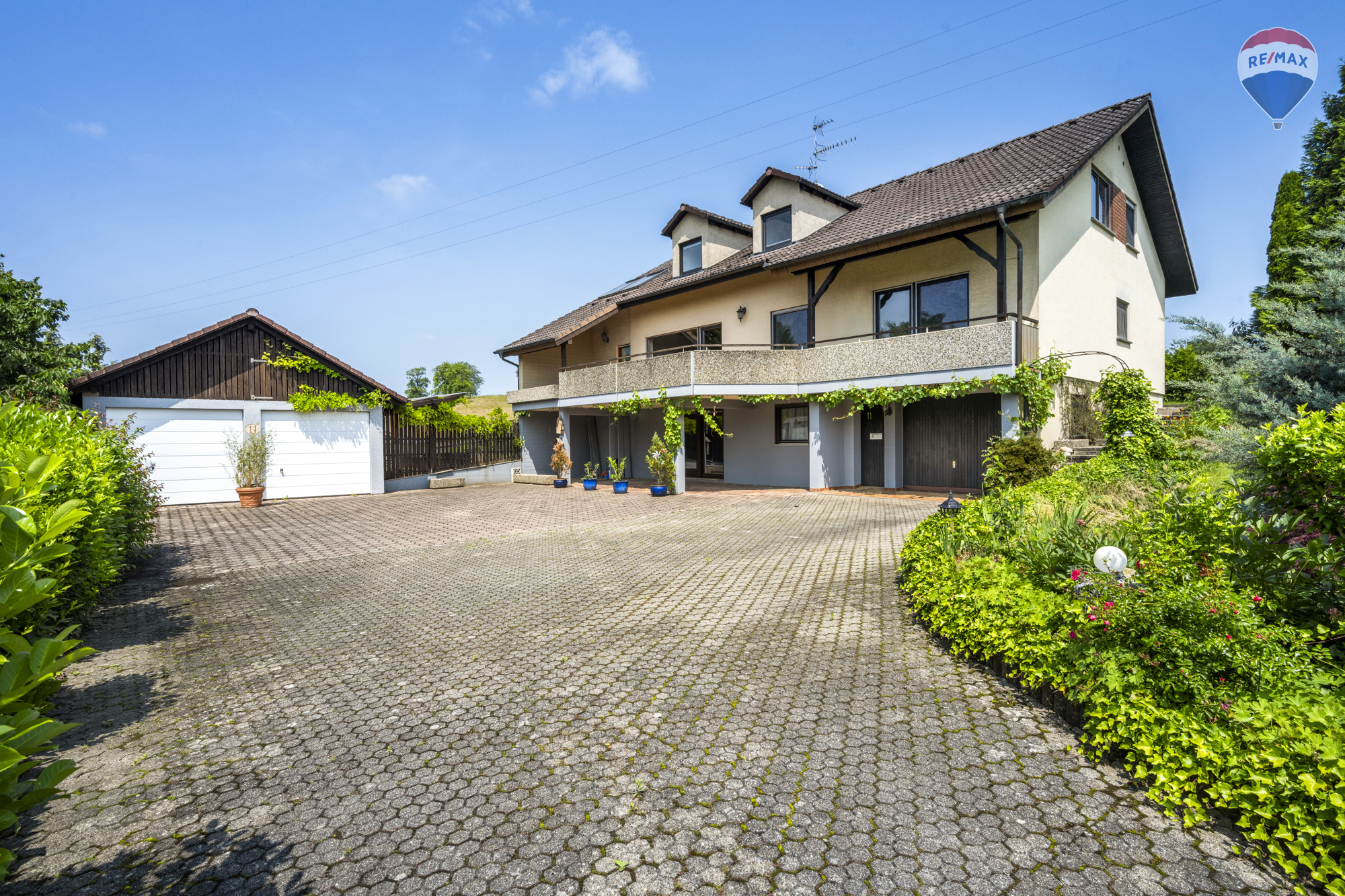 Auf dem großzügigen 1.050 m² Grundstück erwartet Sie ein liebevoll gestalteter Gemüse- und Grüngarten. Für Ihre Fahrzeuge stehen drei Garagen zur Verfügung. Balkone und Terrassen bieten zusätzlichen Freiraum für Erholung und Genuss.