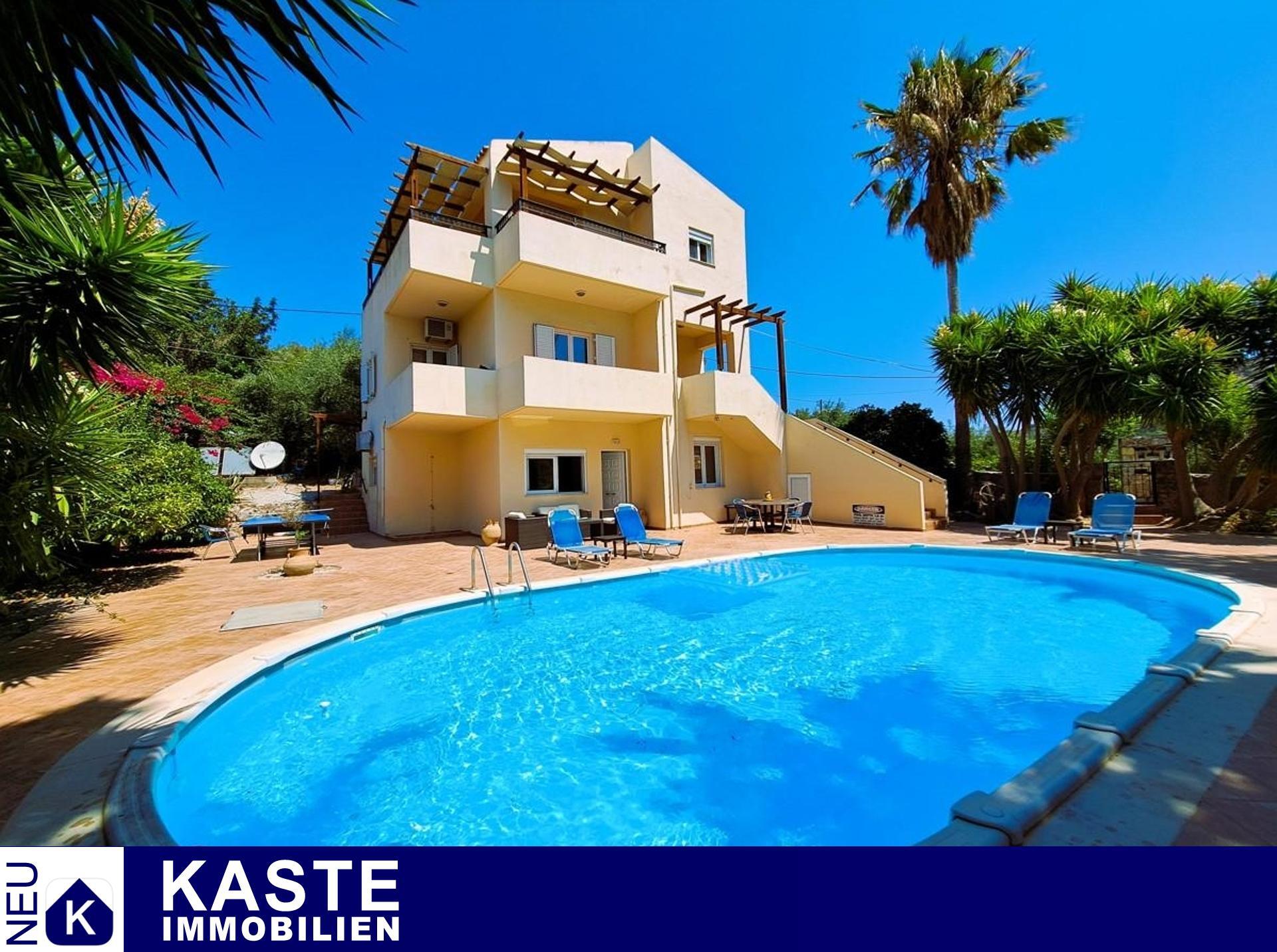 Diese wunderschöne Villa mit 4 Schlafzimmern befindet sich in einer erstklassigen Lage in der Nähe des beliebten Strandresorts Almyrida, das nur einen kurzen Spaziergang entfernt ist. Sie ist ideal für einen Urlaub mit einer großen Familie, als Dauerwohnsitz oder zur Vermietung auf dem griechischen Markt.