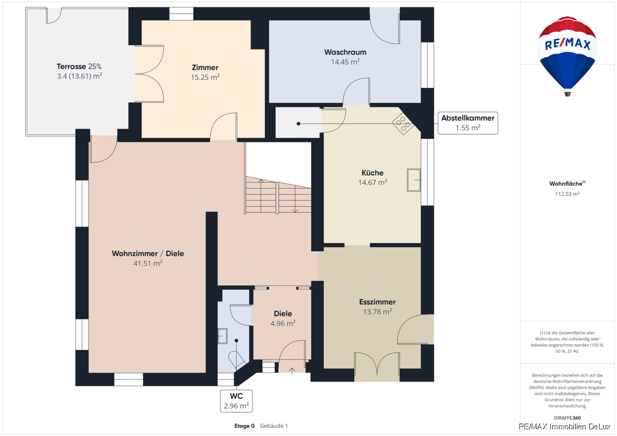 Maklerprovision in Höhe 3,57% inkl. 19 % MwSt. vom Kaufpreis ist mit Abschluss des Kaufvertrages verdient und fällig. RE/MAX erhält einen unmittelbaren Zahlungsanspruch gegenüber dem Käufer (Vertrag zugunsten Dritter, § 328 BGB). Hinweise: Bitte beachten Sie, dass dieses Angebot anhand der uns vom Eigentümer zur Verfügung gestellten Daten und Unterlagen erstellt wurde. Trotz aller Sorgfalt können wir für die Richtigkeit und Vollständigkeit der Angaben keine Gewähr übernehmen. Verbraucherinformationen: Online-Streitbeilegung gemäß Art. 14 Abs. 1 ODR-VO: Die Europäische Kommission stellt eine Plattform zur Online-Streitbeilegung (OS) bereit, die Sie hier finden: ec.europa.eu/consumers/odr