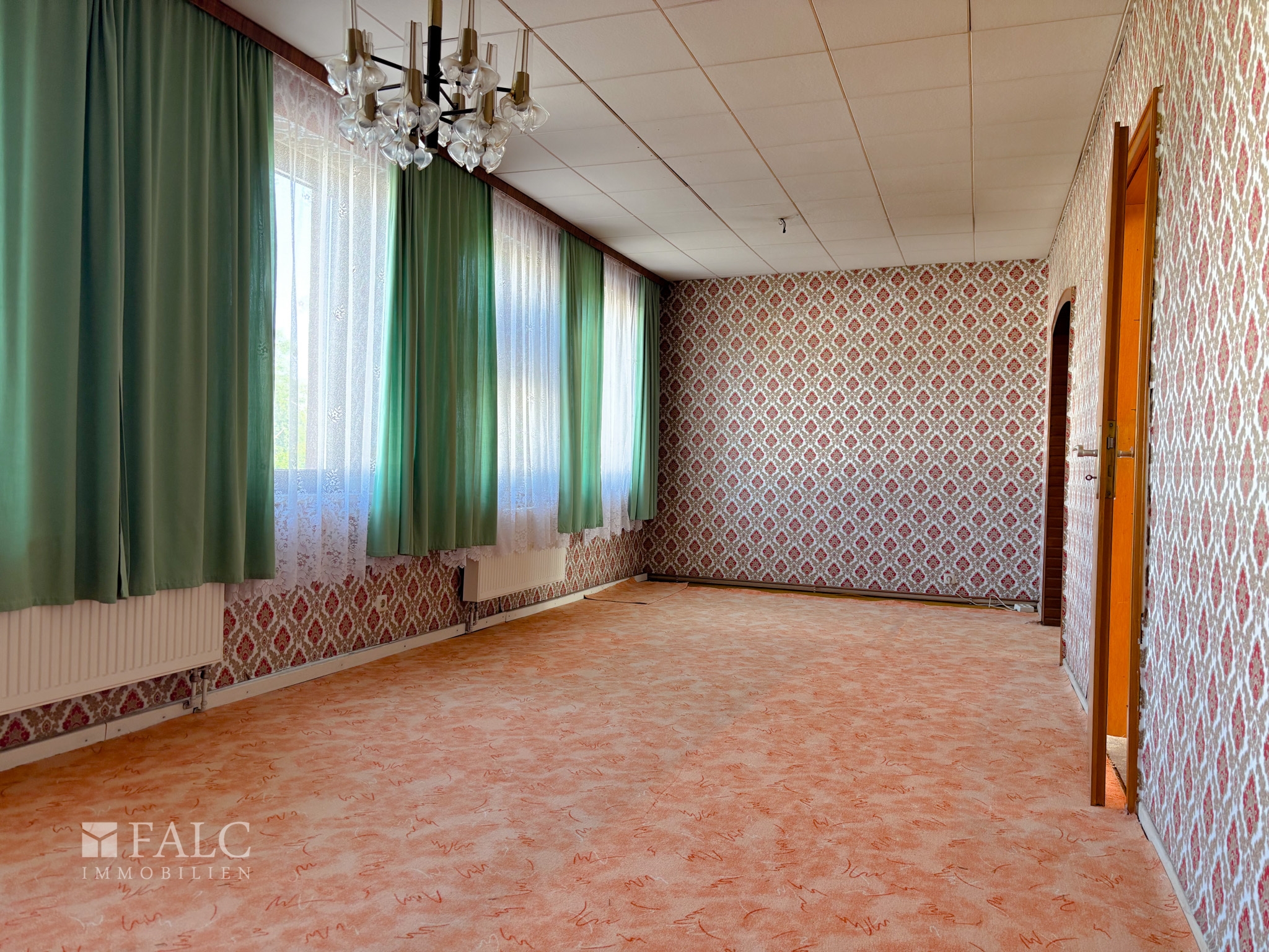 Vom Flur aus gelangen Sie direkt in das geräumige Wohnzimmer, das durch seine großen Fenster viel Tageslicht erhält und einen gemütlichen Rückzugsort für die ganze Familie bietet. Angrenzend befindet sich die Küche, die ausreichend Platz für gemeinsame Kochabende bietet und mit ihrer praktischen Anordnung den Alltag erleichtert. Ein separates Esszimmer lädt zu geselligen Mahlzeiten ein und bietet ausreichend Platz für einen großen Esstisch.