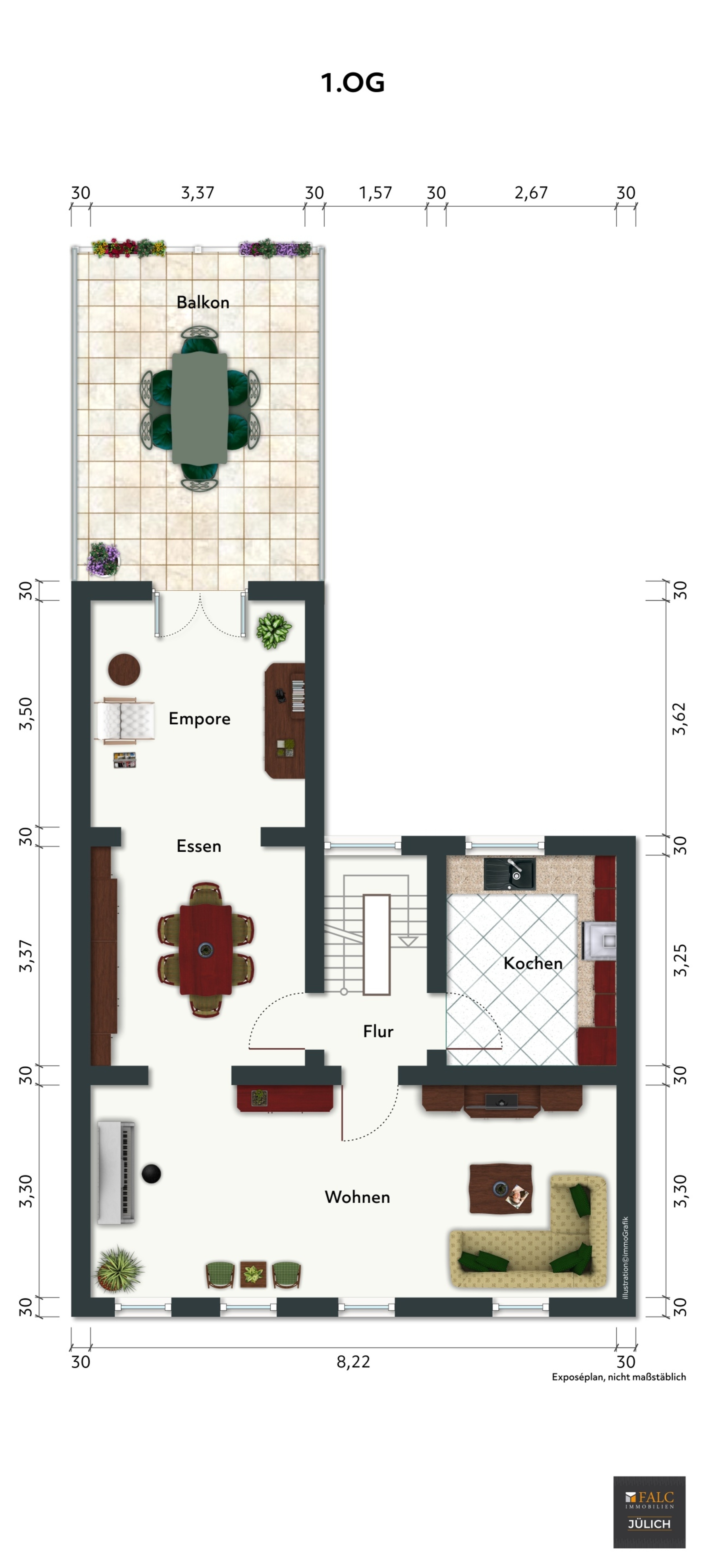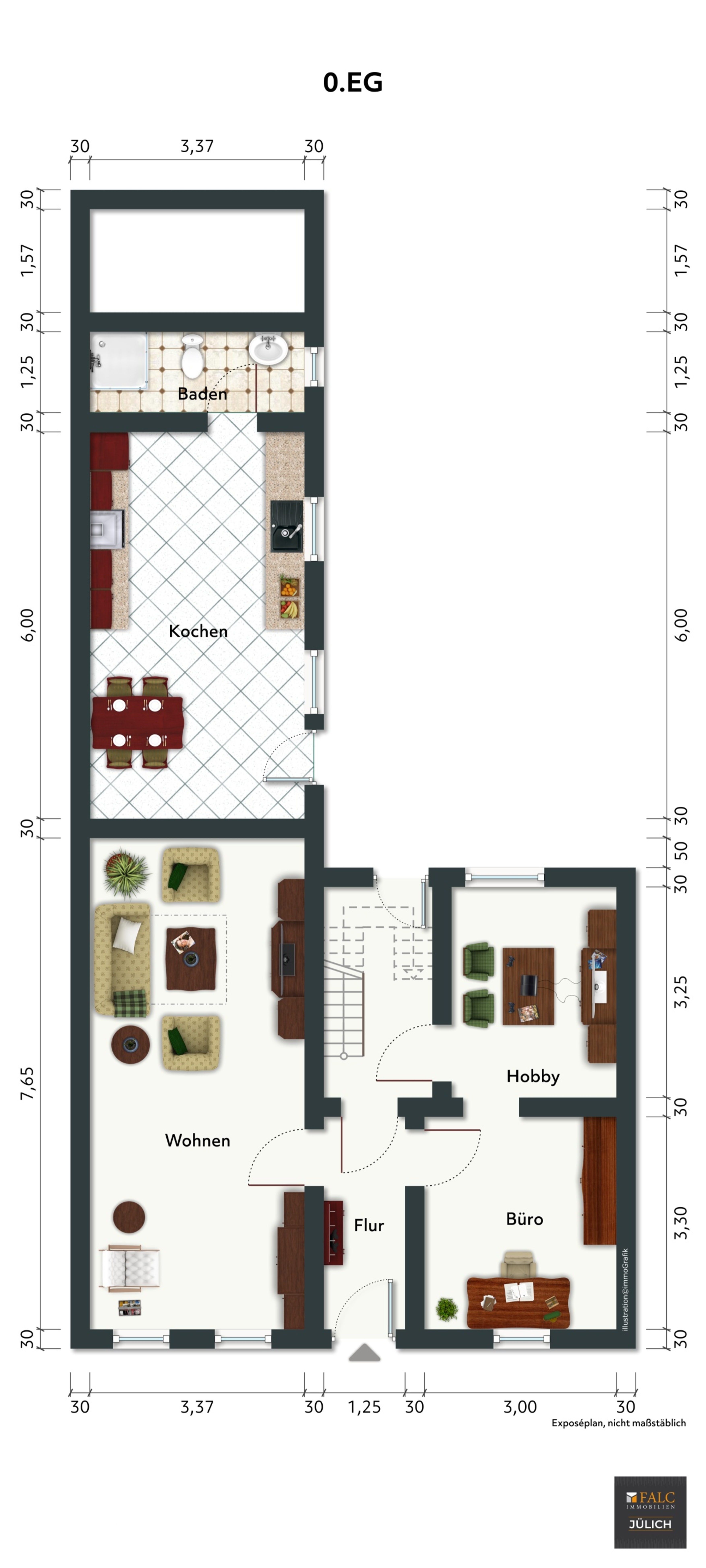 Die Objektbeschreibung beruht ganz oder zum Teil auf Informationen der Eigentümer. Für die Richtigkeit oder Vollständigkeit der Angaben übernimmt FALC Immobilien daher keine Gewähr.