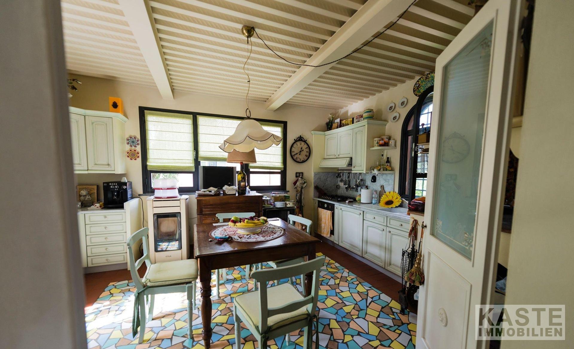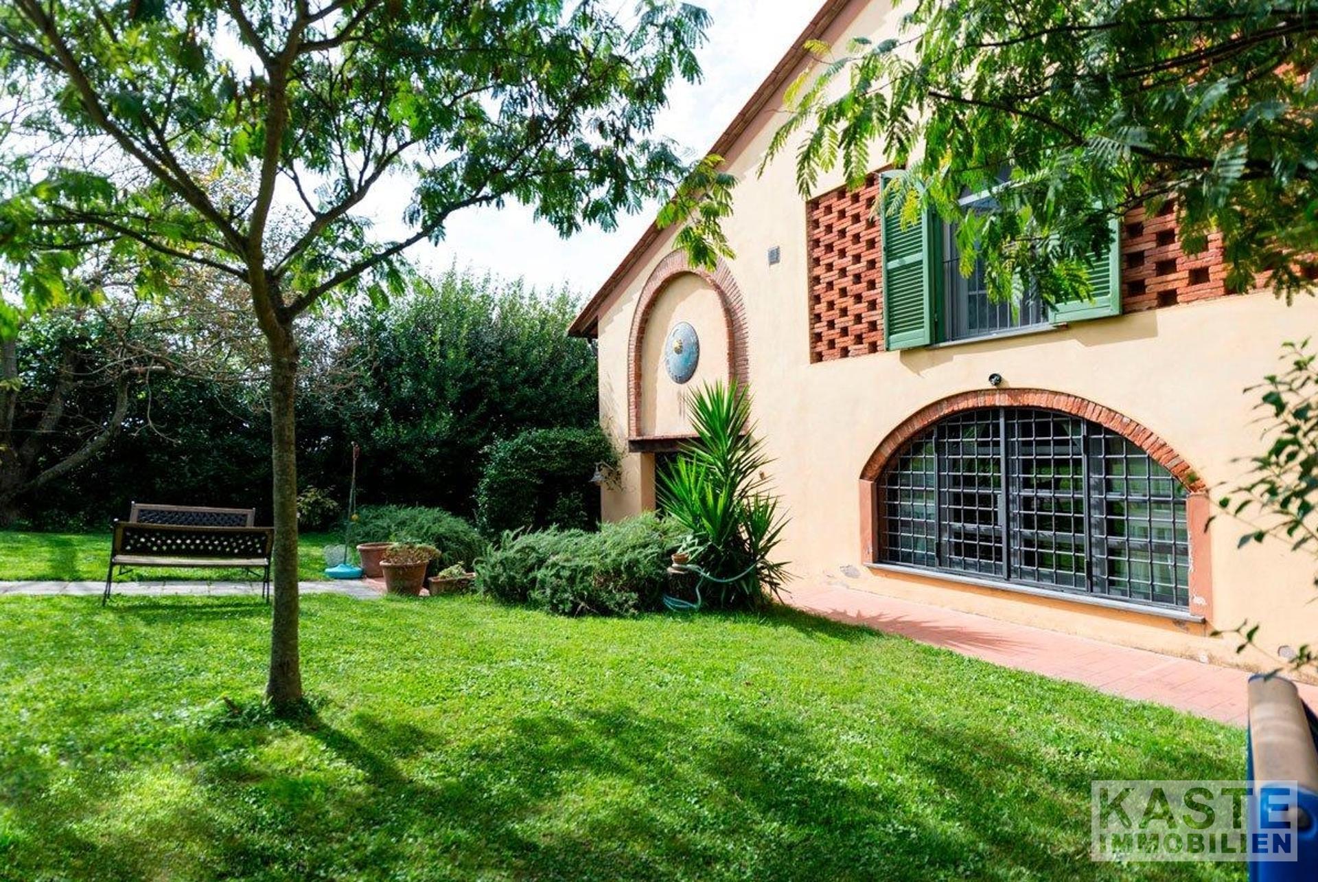 Nur wenige Minuten vom Zentrum und Dienstleistungen, gibt es diese bemerkenswerte Villa, die aus 450 Quadratmetern des Haupthauses (mit einer komplett renovierten Dependance von 200 Quadratmetern) besteht. Das gesamte Anwesen wurde von einem bekannten lokalen Architekten renoviert, der die ursprünglichen Merkmale des Hauses beibehalten hat und eine sehr genaue Umstrukturierung mit Liebe zum Detail durchgeführt hat.