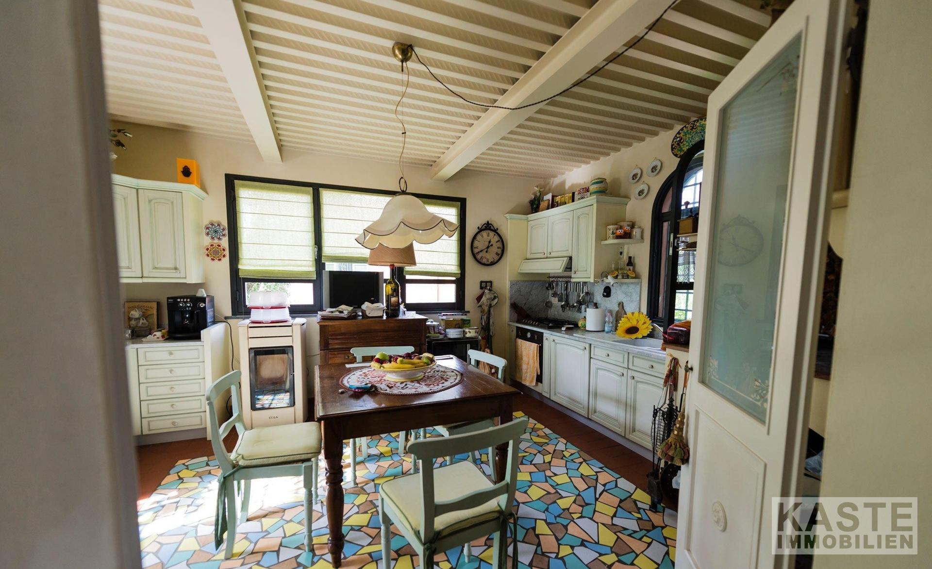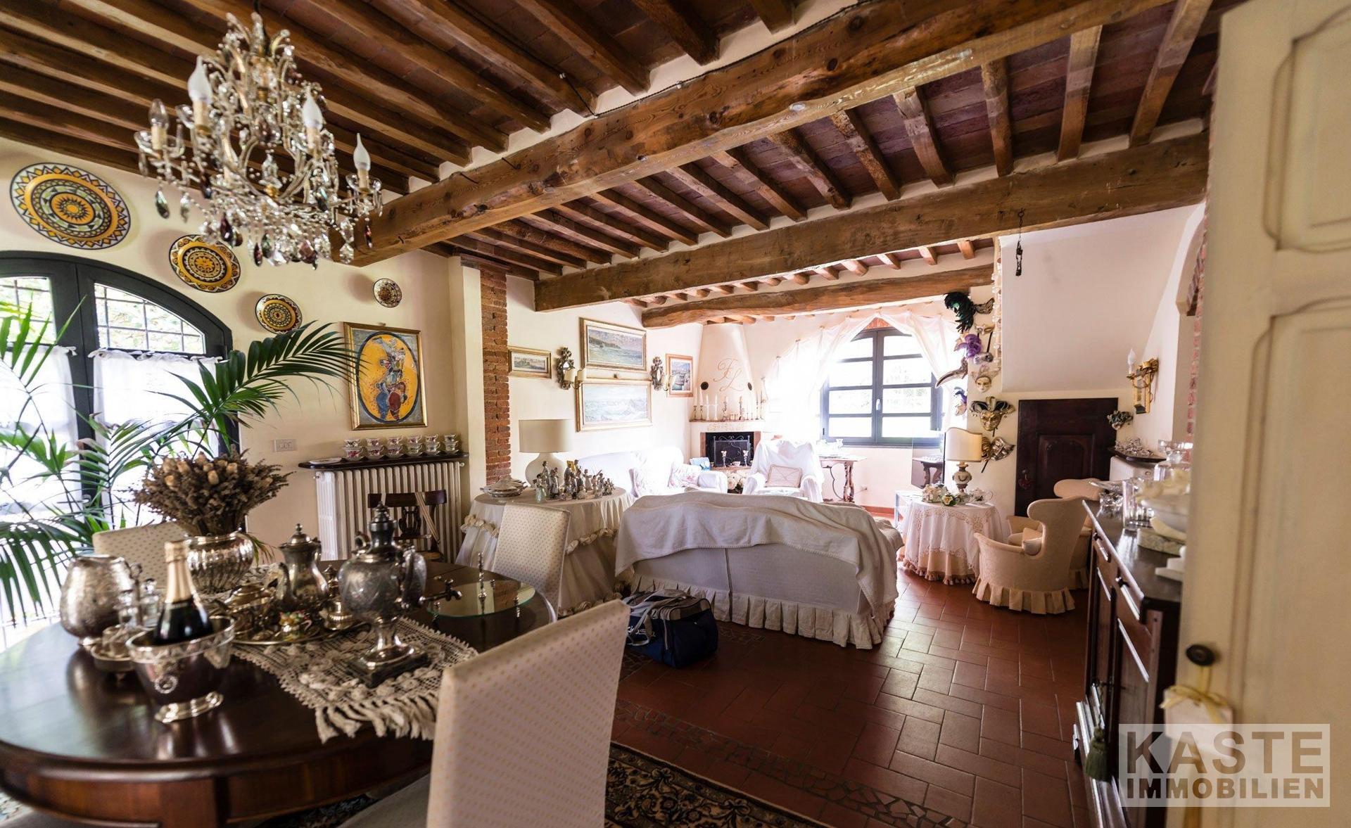 Nur wenige Minuten vom Zentrum und Dienstleistungen, gibt es diese bemerkenswerte Villa, die aus 450 Quadratmetern des Haupthauses (mit einer komplett renovierten Dependance von 200 Quadratmetern) besteht. Das gesamte Anwesen wurde von einem bekannten lokalen Architekten renoviert, der die ursprünglichen Merkmale des Hauses beibehalten hat und eine sehr genaue Umstrukturierung mit Liebe zum Detail durchgeführt hat.