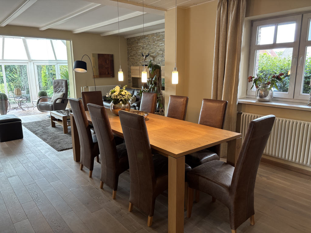 Dieses charmante Zweifamilienhaus vereint den klassischen Charakter aus dem Baujahr 1934 mit einer durchdachten Erweiterung und zahlreichen Modernisierungen. Mit einer Wohnfläche von ca. 300 m² Wohnfläche verteilt auf 10 Zimmer bietet die Immobilie großzügigen Platz für Familien, Mehrgenerationenwohnen oder Wohnen und Arbeiten unter einem Dach. Das Haus wurde 1988 erweitert und im Jahr 2000 mit einer gedämmten Klinkerfassade und neuen Fenstern versehen, wodurch eine zeitlose Optik mit energetischem Mehrwert geschaffen wurde. Besonders hervorzuheben sind die neuwertige Sauna mit Infrarotlicht sowie der gemauerte Kamin im Wohnzimmer, die für zusätzlichen Komfort und ein behagliches Wohngefühl sorgen. Ein Wintergarten mit Fußbodenheizung, eine Terrasse und ein Balkon mit elektrischer Markise eröffnen vielfältige Möglichkeiten, das Wohnen nach draußen zu erweitern. Das weitläufige Grundstück überzeugt mit verschiedenen Bereichen - von Grillpavillon bis hin zum Rückzugsort am idyllischen Gartenteich. Auch eine Teilung des Grundstück für einen separaten Bauplatz ist möglich. Die Immobilie befindet sich in einer ruhigen Sackgasse und in einer zugleich gut angebundenen Wohnlage von Löhne-Mennighüffen. Einkaufsmöglichkeiten, Schulen, Kindergärten sowie Ärzte und weitere Einrichtungen des täglichen Bedarfs sind in wenigen Minuten erreichbar. Gasheizung. Die Erstellung eines Energieausweises wurde bereits beauftragt.