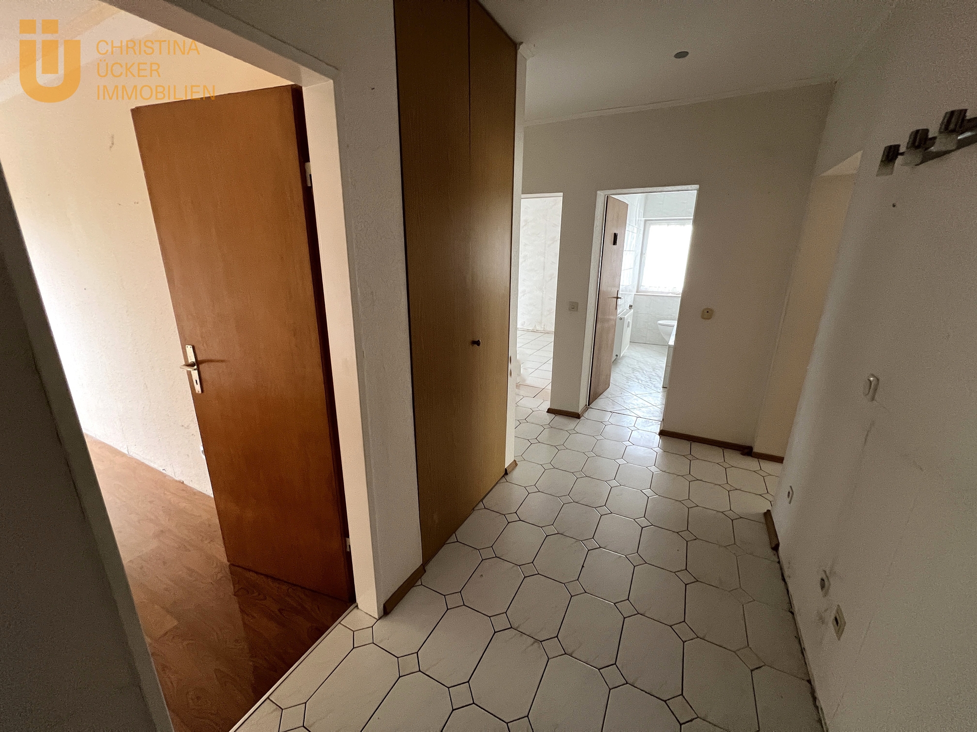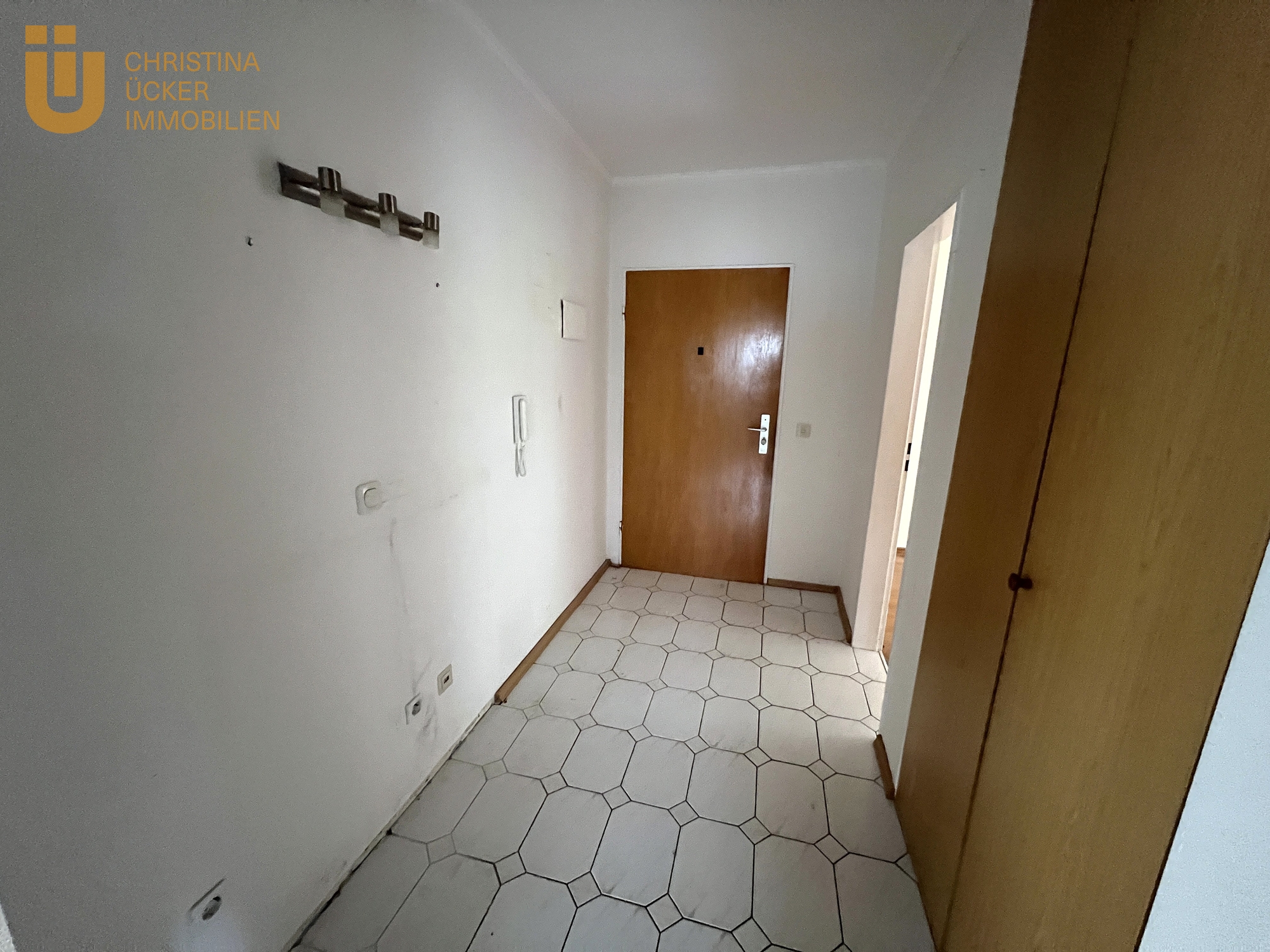 Beim Betreten der Wohnung gelangt man zunächst in einen einladenden Flur, der einen praktischen Einbauschrank sowie ausreichend Platz für eine Garderobe bietet. Gleich links von der Eingangstür liegt das potenzielle Kinderzimmer, das sich flexibel auch als Büro, Ankleide oder Gästezimmer nutzen lässt. Nebenan befindet sich die Küche, die derzeit leer ist und nach eigenen Vorstellungen mit einer Einbauküche ausgestattet werden kann. Direkt neben der Küche liegt das Schlafzimmer und gegenüber der Eingangstür findet man das Tageslicht Badezimmer mit Duschbadewanne.