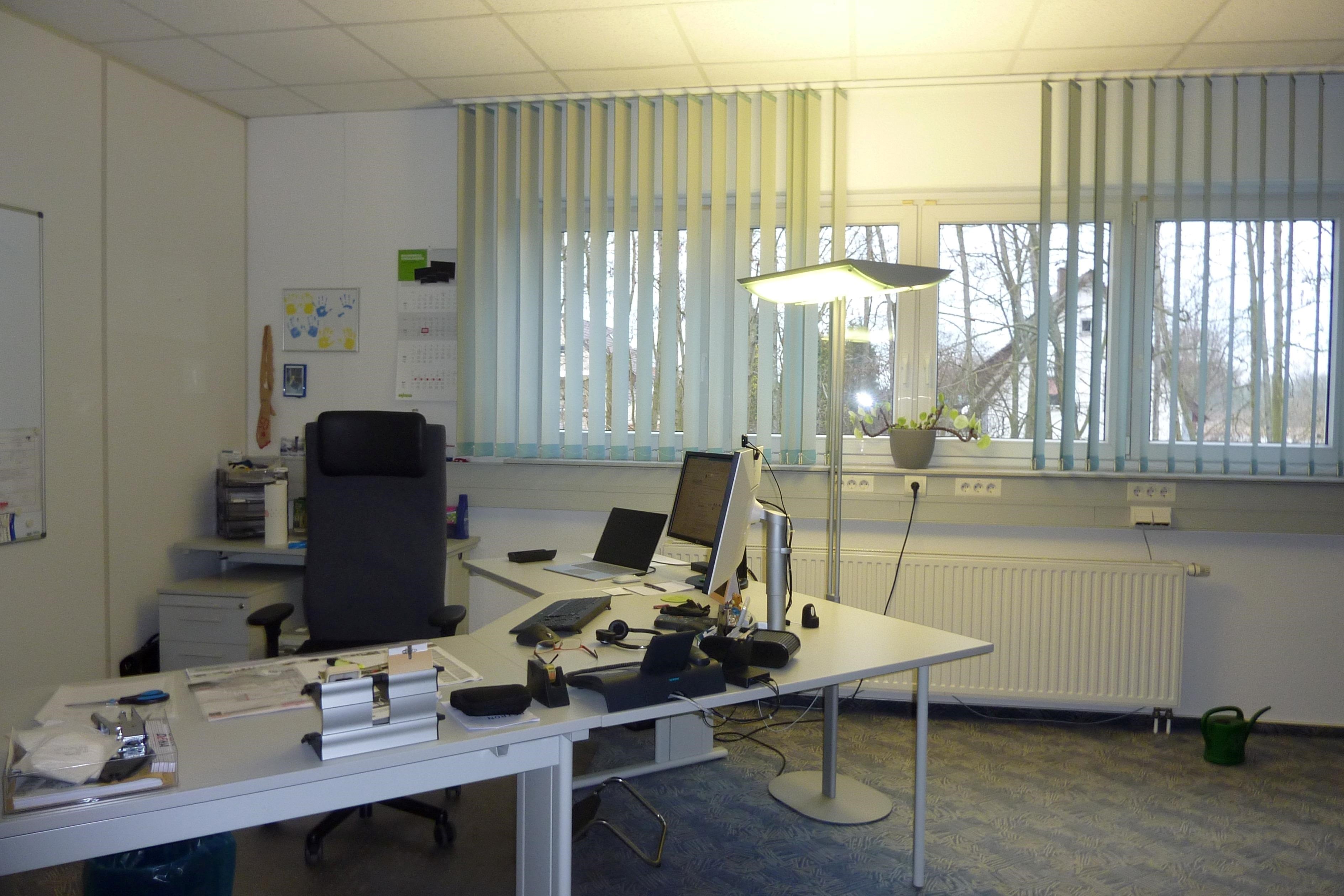 Gas-Zentralheizung, Kunststofffenster/ Isolierverglasung, ein Empfangsbereich, mind. 11 Einzelbüros sowie größere Büros und Konferenzräume, ein Aufenthaltsraum, Wasch- und Umkleideräume und WC´s auf allen Ebenen, ca. 45 PKW-Stellplätze