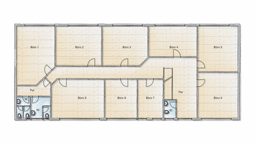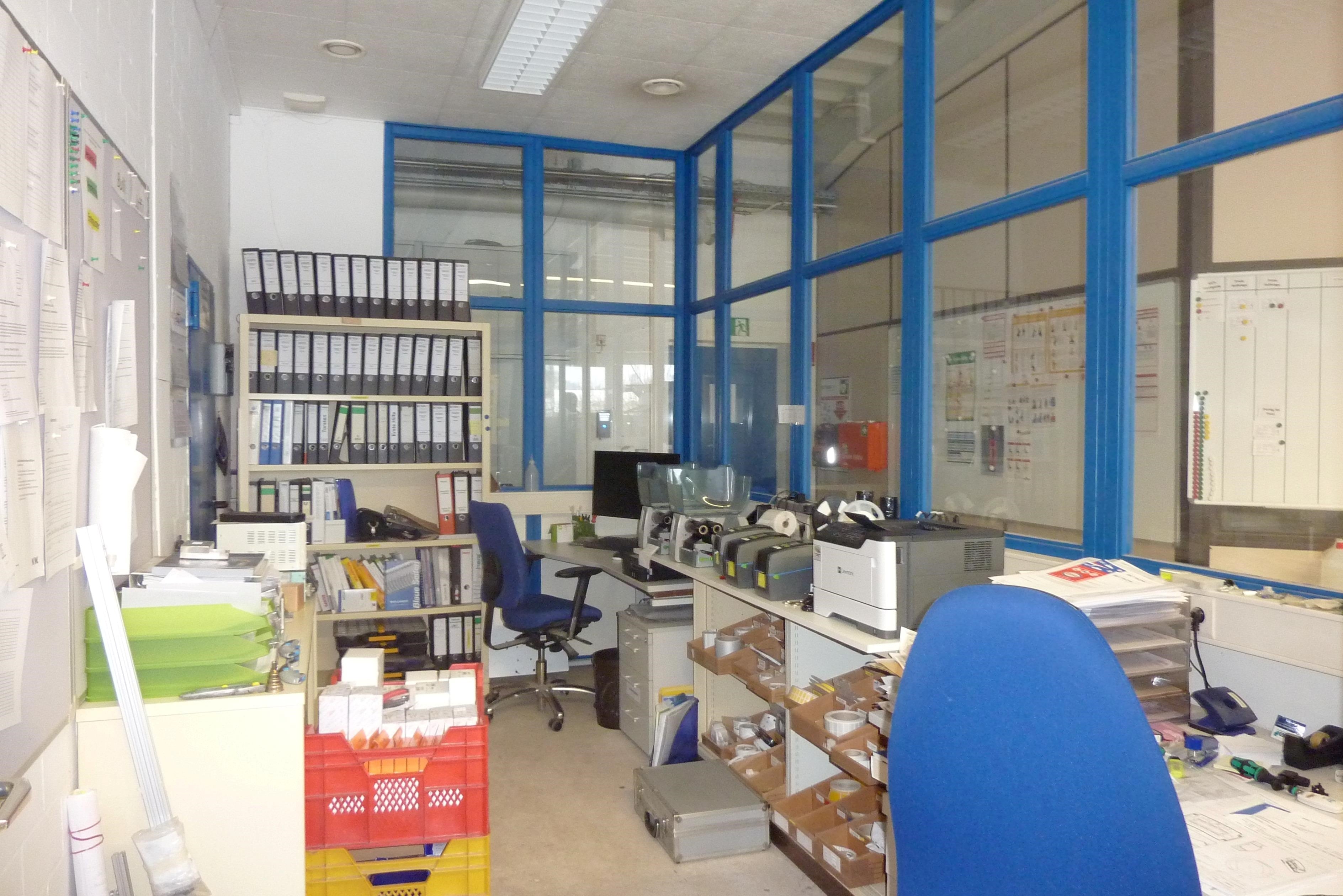 Gepflegte Produktions- / Lagerhalle mit angrenzendem Büroteil auf zwei Ebenen und ca. 45 PKW-Stellplätzen. Der gewerbliche Teil wurde im Jahr 1998 erweitert, das Bürogebäude ist im Jahr 1999 um eine weitere Etage aufgestockt worden. Es ist ein Empfangsbereich und mindestens 11 Einzelbüros, sowie größere Büros und Konferenzräume, ein Aufenthaltsraum, Wasch- und Umkleideräume und WC´s auf allen Etagen vorhanden. Die Fenster sind aus Kunststoff mit Isolierverglasung, die Fensterbänke aus Naturstein. Beheizt werden beide Gebäude mit einer Gasheizung. Die Hoffläche ist komplett befestigt. Ein Erweiterungsbau der Fertigung war vor einigen Jahren angedacht. Das Konzept und die Planungsunterlagen könnten vom neuen Eigentümer übernommen und realisiert werden.