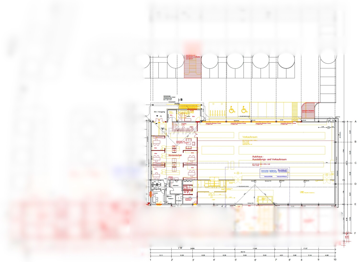 Aktuell wird die Immobilie als Autohaus betrieben und umfasst eine große Showroomfläche, weitläufige Büro- und Verwaltungsräume mit Sanitäranlagen.