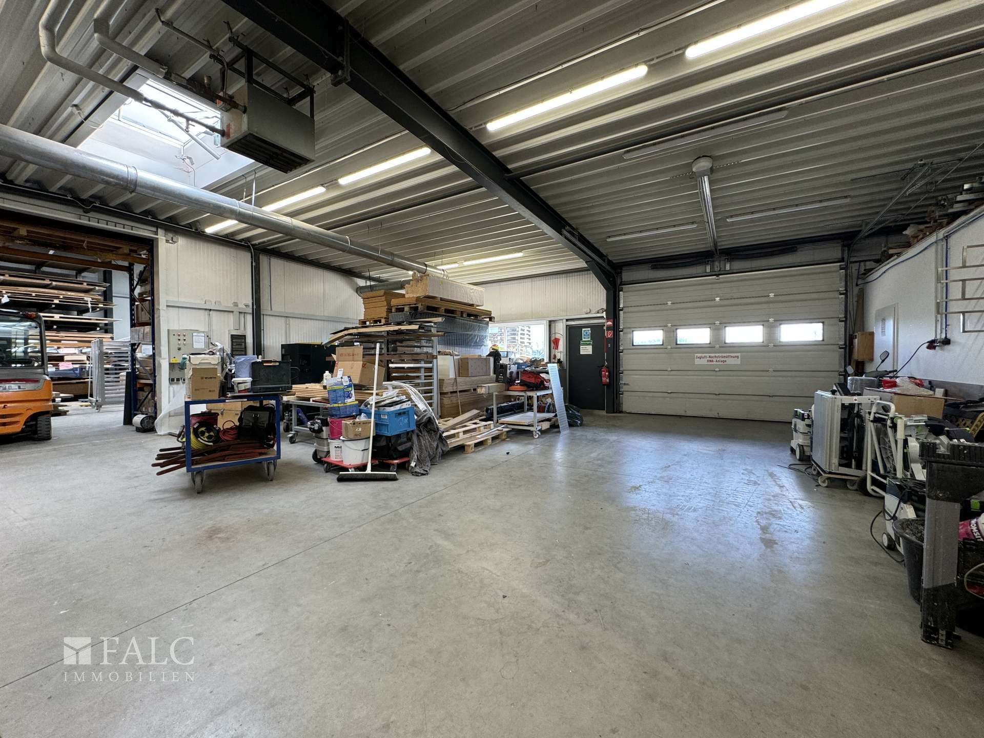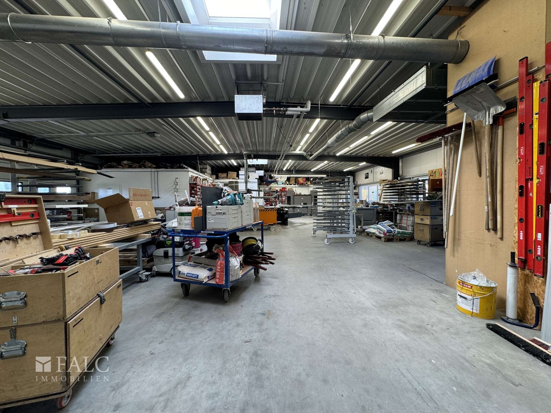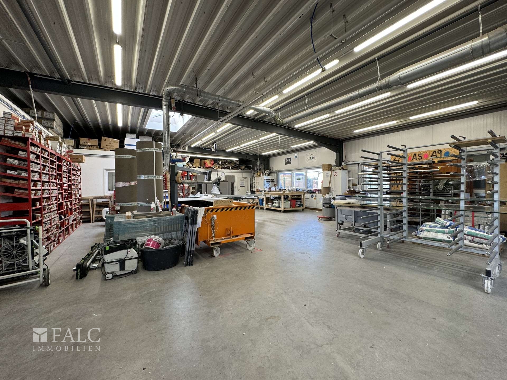 Die immobilie hat eine Fläche von insgesamt ca. 650 Quadratmeter . Die ein-geschossigen, 2001 errichteten Baulichkeiten bestehen aus zwei Hallen mit Bürotrakt mit Büro-, Werkstatt- und Lagerräumen (ca. 650 Quadratmeter ). Die Lagerhalle hat eine Höhe von ca. 4 Metern. Die zweite Halle wurde im jahr 2011 angebaut. Die Büroräume sind mit Klimageräten ausgestattet.