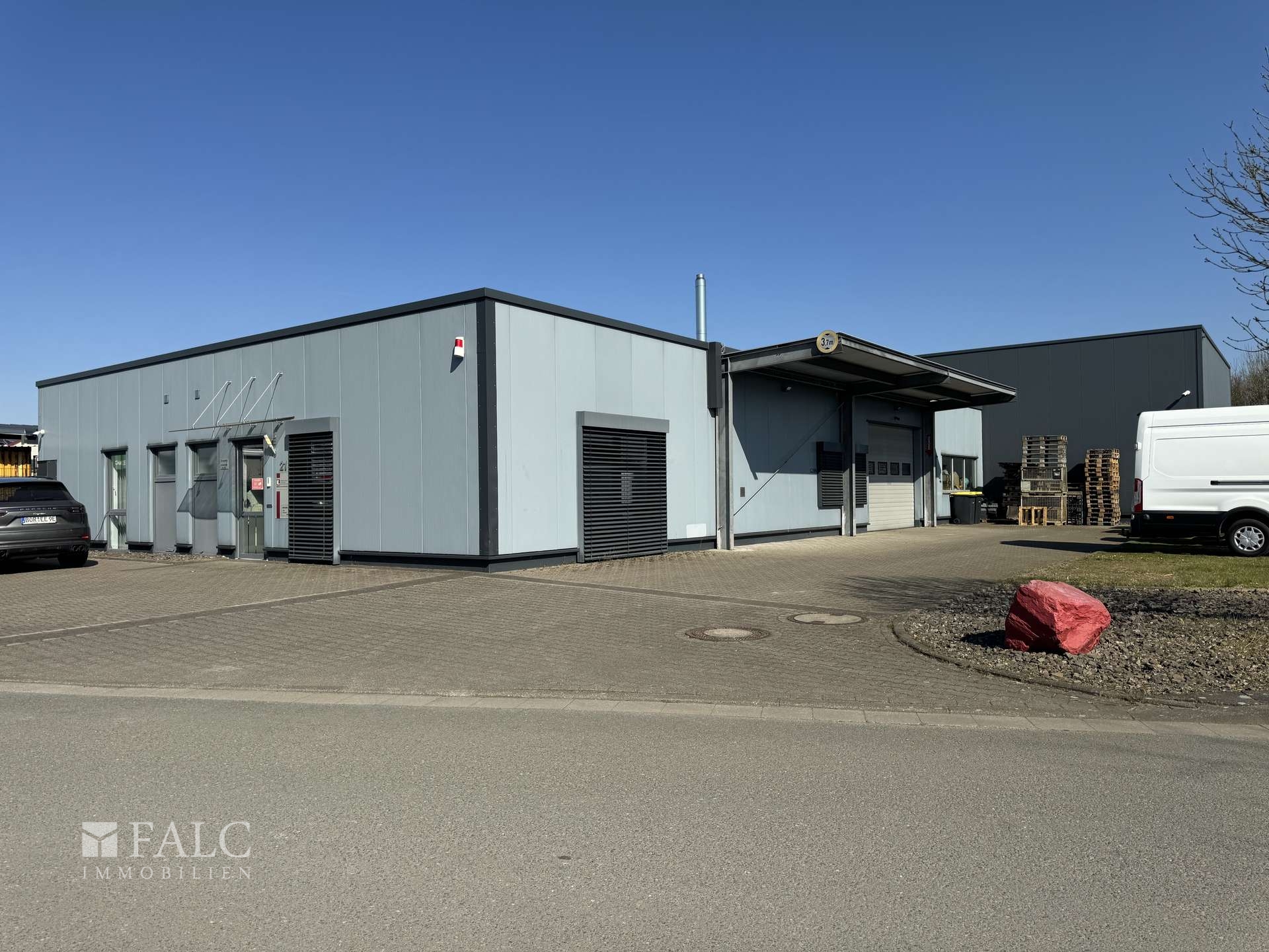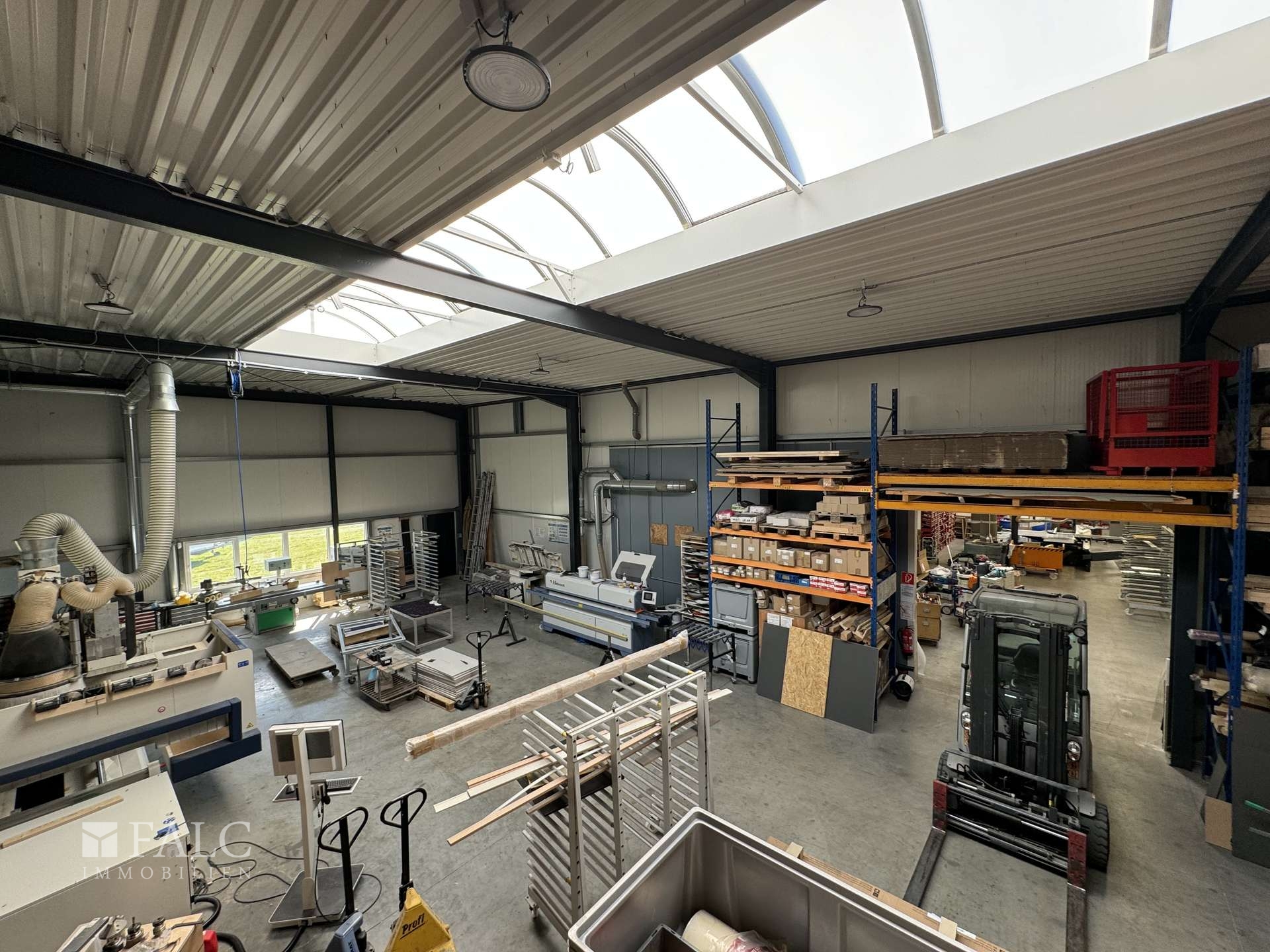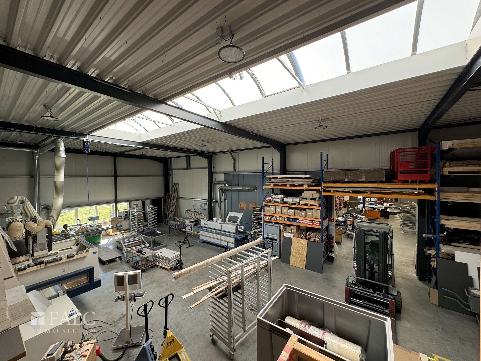 Die immobilie hat eine Fläche von insgesamt ca. 650 Quadratmeter . Die ein-geschossigen, 2001 errichteten Baulichkeiten bestehen aus zwei Hallen mit Bürotrakt mit Büro-, Werkstatt- und Lagerräumen (ca. 650 Quadratmeter ). Die Lagerhalle hat eine Höhe von ca. 4 Metern. Die zweite Halle wurde im jahr 2011 angebaut. Die Büroräume sind mit Klimageräten ausgestattet.