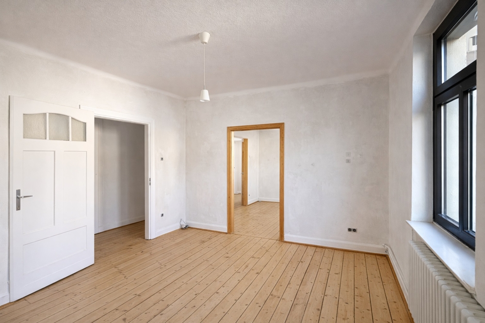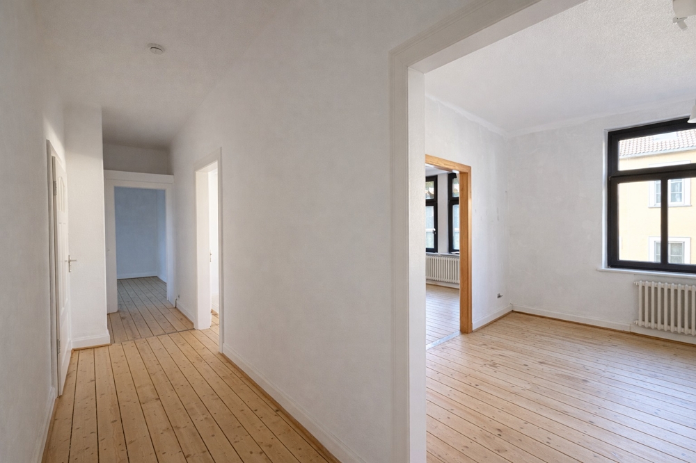 Attraktive Eigentumswohnung an einem sehr begehrten Standort. Die stilvolle Liegenschaft präsentiert sich mit vielen charmanten Jugendstil-Details. Die Bausubstanz ist solide, die Ausstattungsqualität ist einfach aber durchaus reizvoll. Allein die facettenreiche Außenfassade mit gelungener Farbgestaltung heißt Sie willkommen. Das sehr gepflegte Treppenhaus steckt voller Nostalgie - freuen Sie sich darauf! Unser Angebot befindet sich im II. Obergeschoss und bietet über ca. 94m² Wfl., 4 Zimmer, ein kleines Tageslichtbad nebst separatem WC (modernisierungsbedürftig) sowie eine große Wohnküche mit Zugang zum Balkon gen ruhigem Innenhof. Der frisch geschliffende und geölte Dielenboden erstreckt sich durch die komplette Wohnung (außer Bad/WC). Malertechnische Vorbereitungen (Grundierung) wurden bereits getroffen, sodass Sie sofort mit Ihren eigenen Farbwünschen loslegen können. Die Wohnung wird mit einer eigenen Gasetagenheizung (Baujahr 1989) beheizt. Ein Kellerraum ist selbstverständlich zugehörig. Bitte stimmen Sie mit uns einen Besichtigungstermin ab: Wir sind für Sie da! *KEINE MAKLERPROVISION - DA VERKAUF AUS EIGENEM BESTAND!*