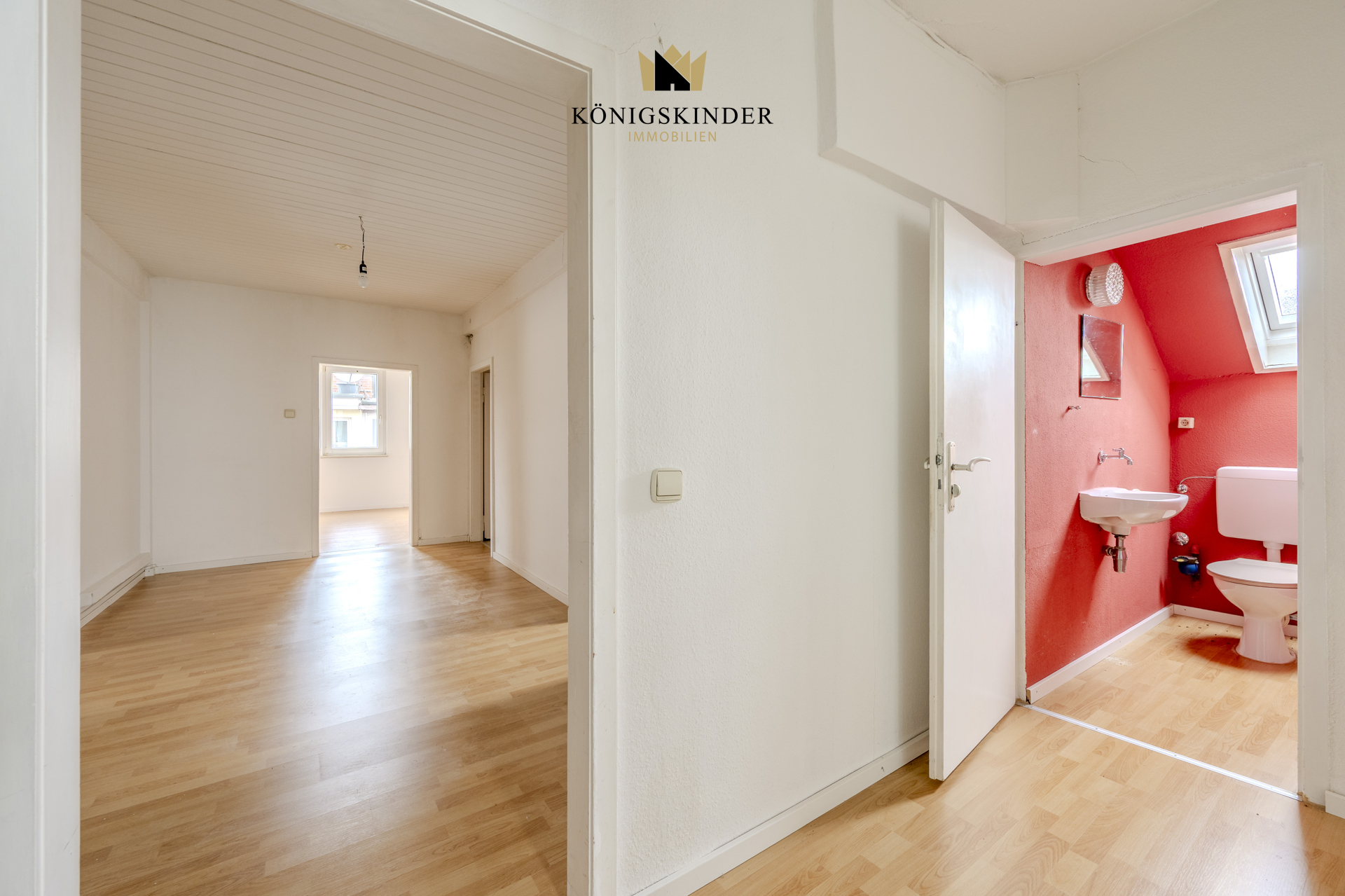 Die Wohnung ist frisch gestrichen und der Laminatboden wurde größtenteils kürzlich erneurt. Der Eingangsbereich empfängt Bewohner und Gäste und bietet ausreichend Platz für eine geräumige Garderobe sowie einen großen Esstisch. Die Wohnung verfügt über ein Wohnzimmer, ein Schlafzimmer, ein Kinderzimmer und einem Gäste- oder Arbeitszimmer, dieses kann auch ideal als weiteres Kinderzimmer genutzt werden. Die Wohnung ist auch geeignet, als WG genutzt bzw. vermietet zu werden und auch mit kleinen Bauergänzungen als Wohnung plus privatem Büro, indem man die Flurabtrennung voll trennt, in das linke Zimmer eine Tür einsetzt und rechts das Tageslicht-WC hat. Die geräumige Küche mit Fenster und Abstellkammer und das Tageslichtbadezimmer mit Fenster, Dusche, Badewanne, Waschmaschinen-Anschluss und Doppelwaschbecken komplementieren dieses Wohnungsangebot