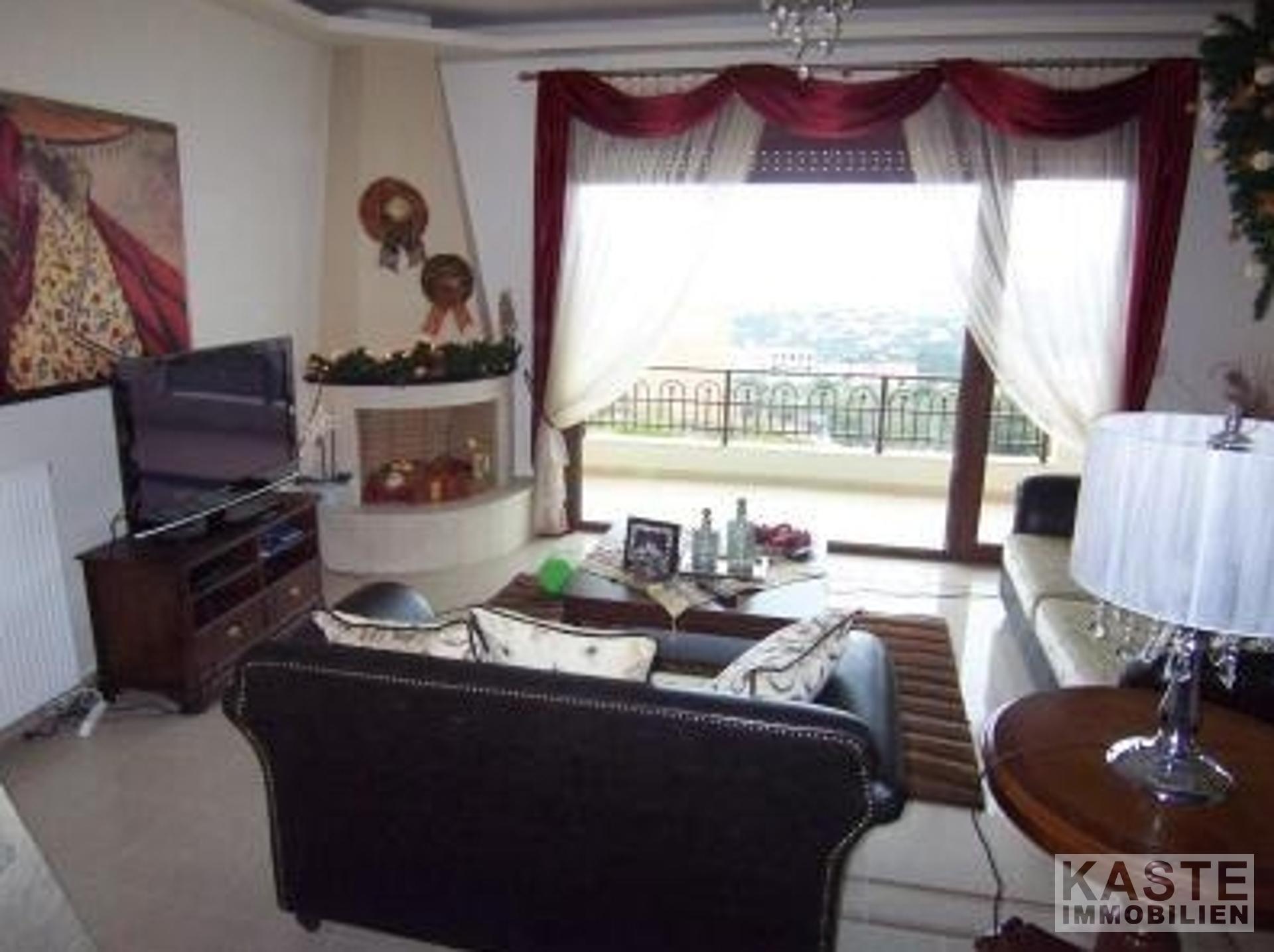 An einem Hang nur fünf Minuten von der modernen Touristenstadt Agios Nikolaos entfernt liegt dieses sehr große Haus mit Gartenanlagen, Parkplätzen und fantastischer Aussicht. Die Villa befindet sich auf einem privaten Grundstück mit einer Einfahrt, die zu den beiden davor liegenden Parkplätzen führt. Es handelt sich um ein 2-stöckiges Gebäude mit einem großen Kellergeschoss.