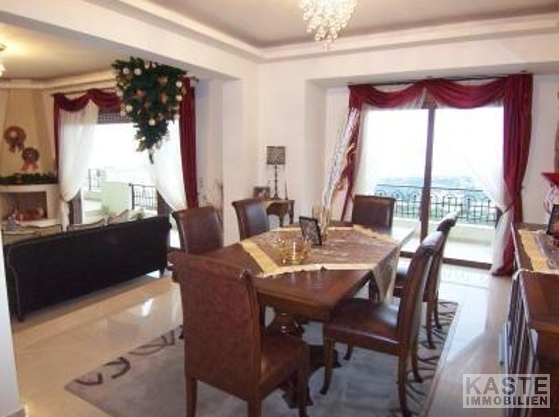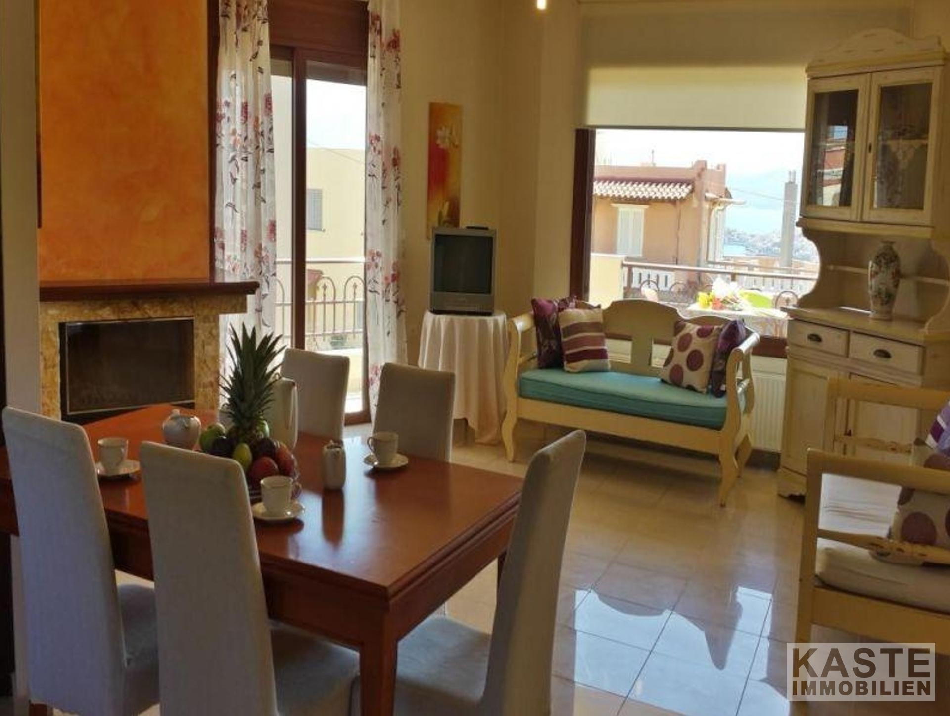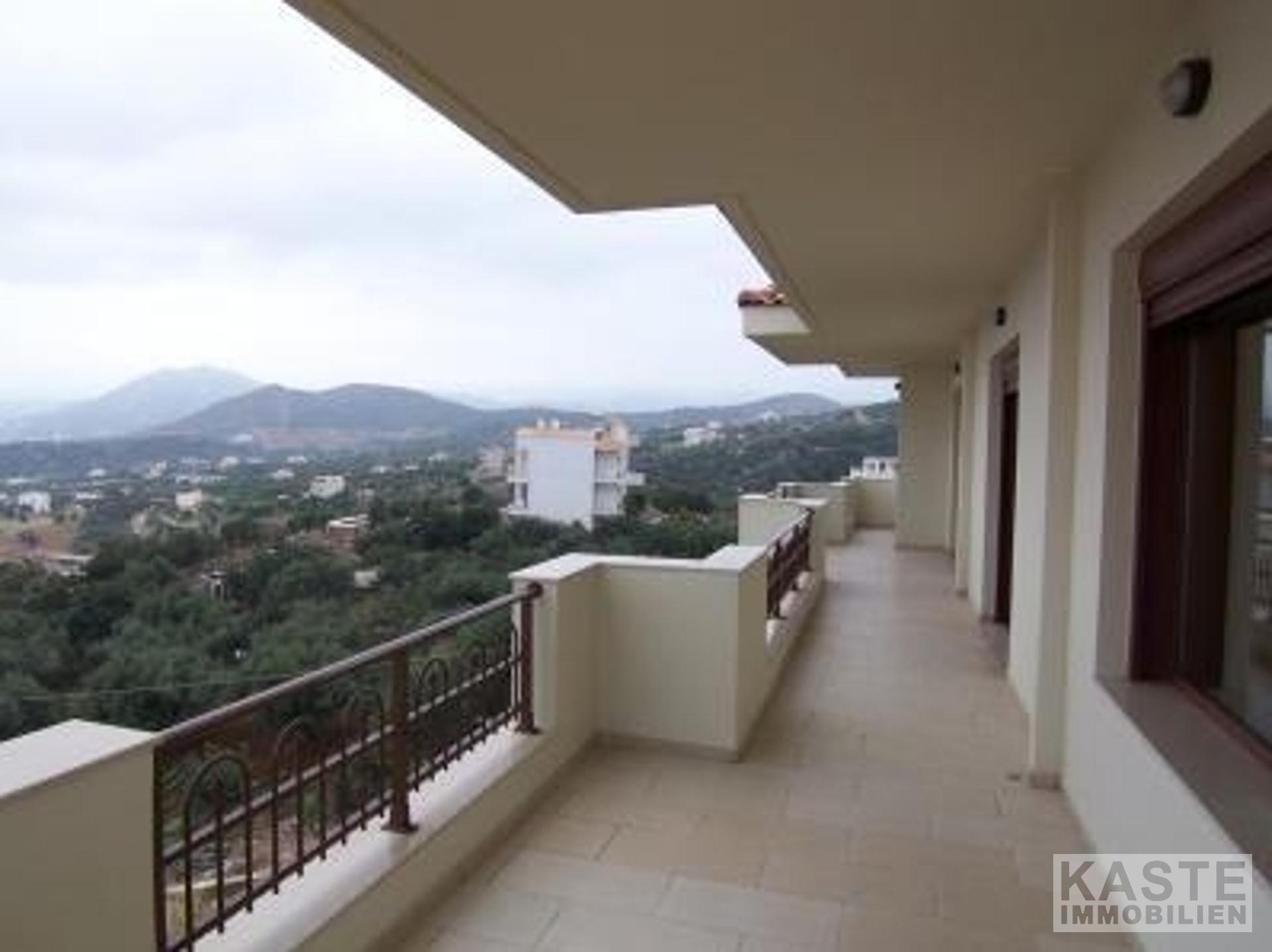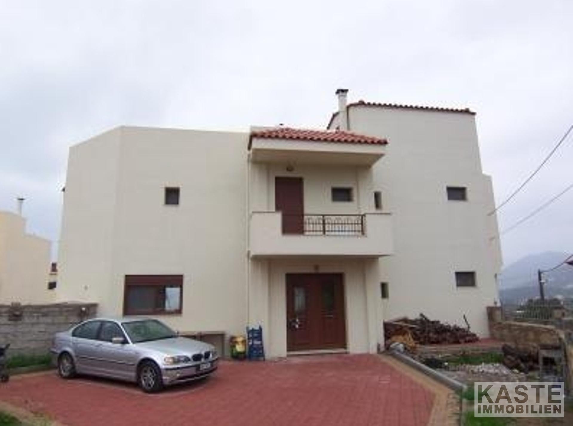 An einem Hang nur fünf Minuten von der modernen Touristenstadt Agios Nikolaos entfernt liegt dieses sehr große Haus mit Gartenanlagen, Parkplätzen und fantastischer Aussicht. Die Villa befindet sich auf einem privaten Grundstück mit einer Einfahrt, die zu den beiden davor liegenden Parkplätzen führt. Es handelt sich um ein 2-stöckiges Gebäude mit einem großen Kellergeschoss.