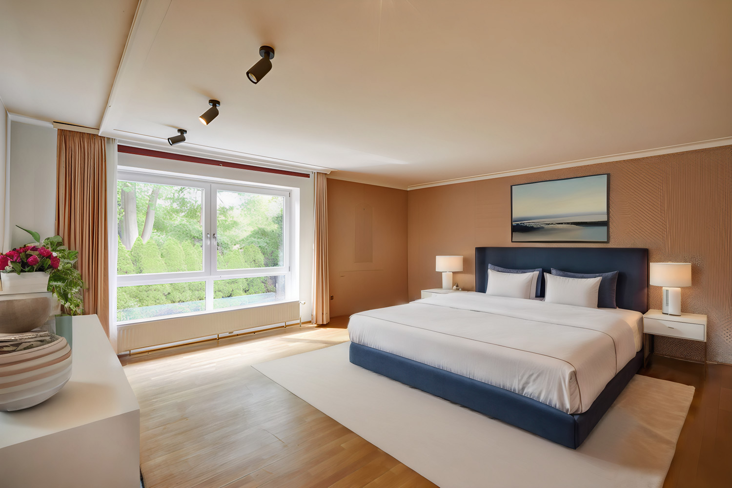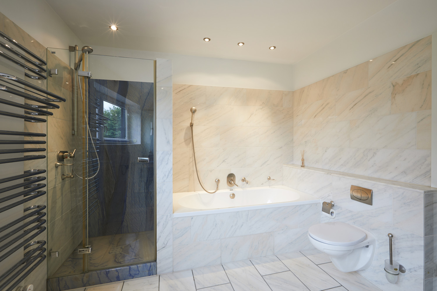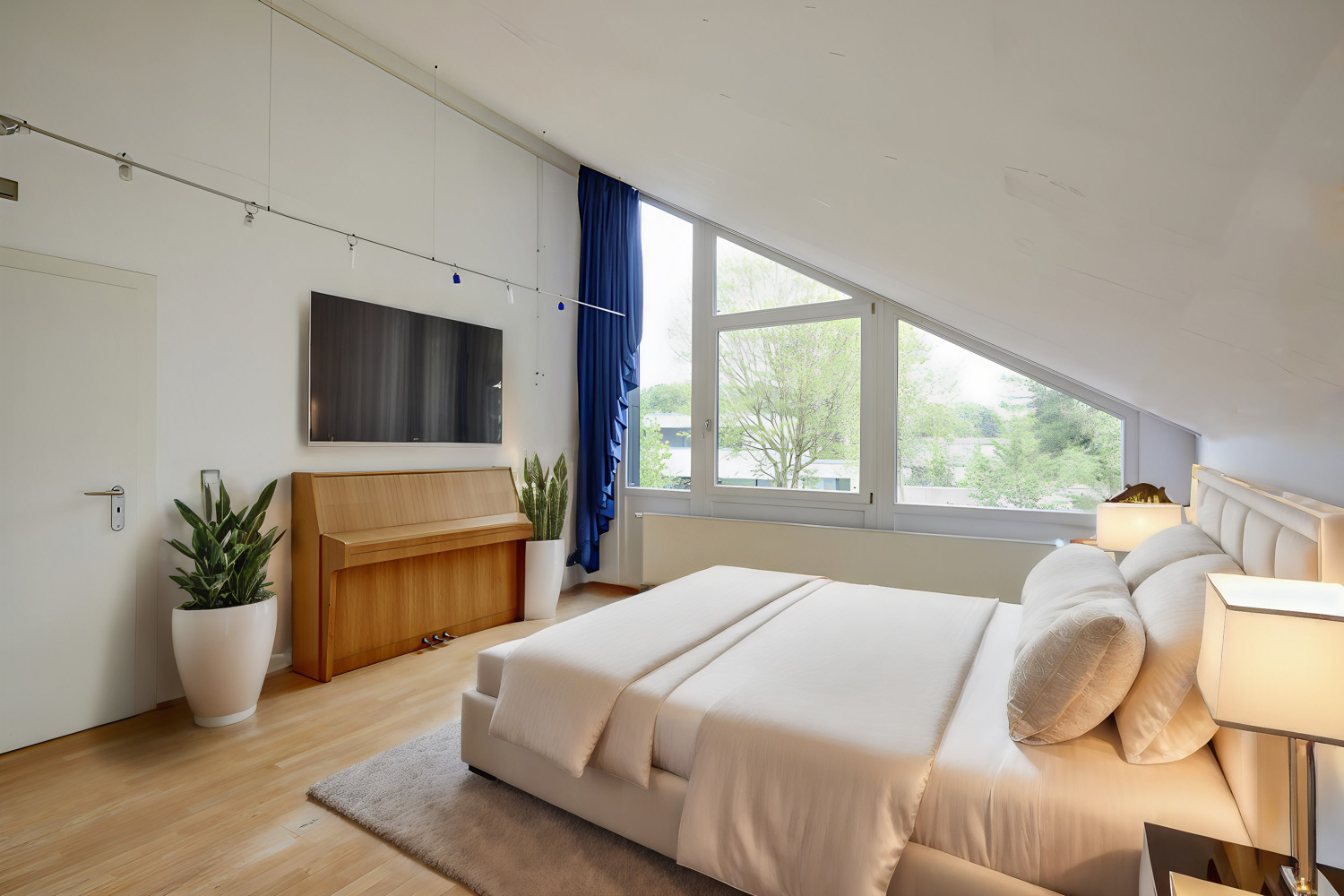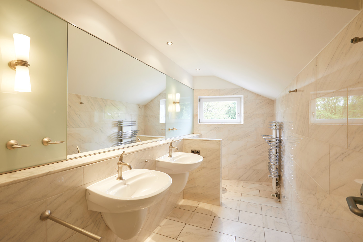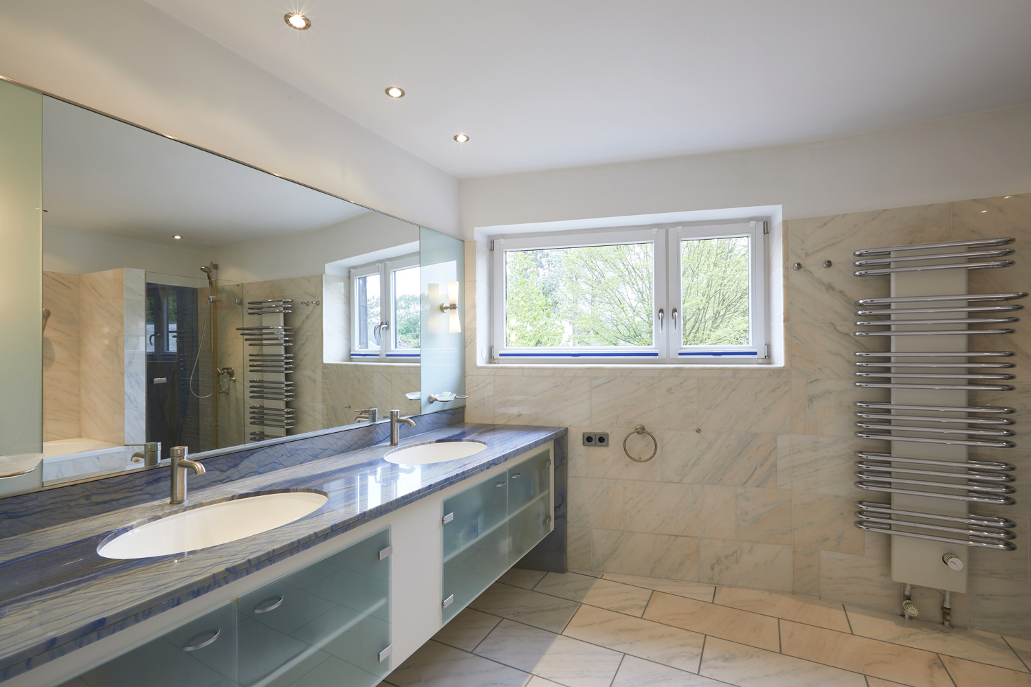 Mit insgesamt 6 Zimmern, darunter bis zu 5 Räume als Schlafzimmer nutzbar und einem Büro, bietet das Haus viel Platz für eine große Familie. Es verfügt über 3 stilvolle Badezimmer und ein zusätzliches Gäste-WC. Die großzügige und flexible Raumaufteilung ermöglicht vielseitige Nutzungsmöglichkeiten, wie beispielsweise Generationenwohnen oder die Nutzung eines Teils des Hauses als Praxis oder Büro.