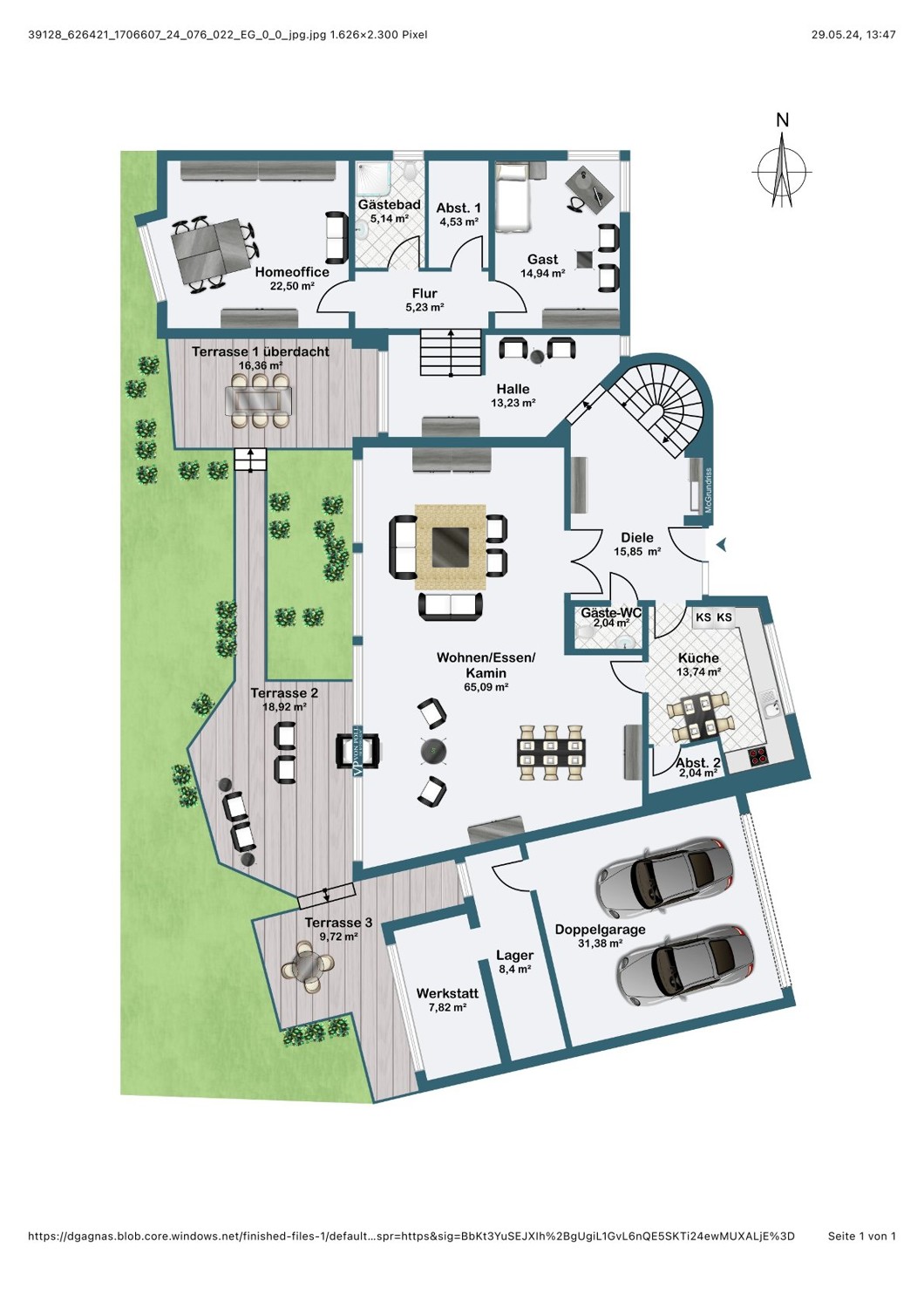 Die Doppelgarage bietet sicheren Platz für Ihre Fahrzeuge, und die Sauna im Haus sorgt für Entspannung und Erholung. Der nicht einsehbare Garten gewährleistet ein hohes Maß an Privatsphäre und lädt dazu ein, die wunderschöne Außenanlage zu nutzen und gesellige Stunden im Freien zu verbringen.
