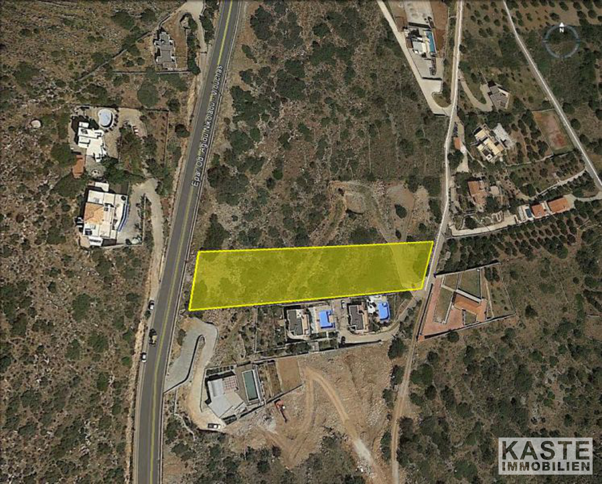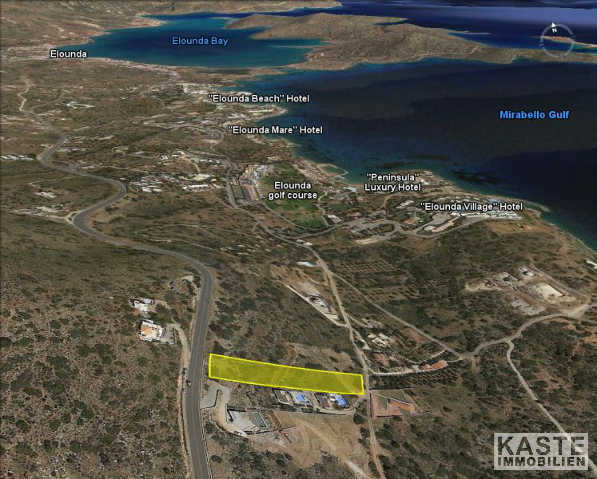 Dieses 3379 qm große Bauland liegt an der Küste von Elounda. Von seiner erhöhten Lage aus genießt das Grundstück einen fantastischen Blick auf das Meer, die Luxus-Resorts von Elounda und die Bergkette von Sitia.