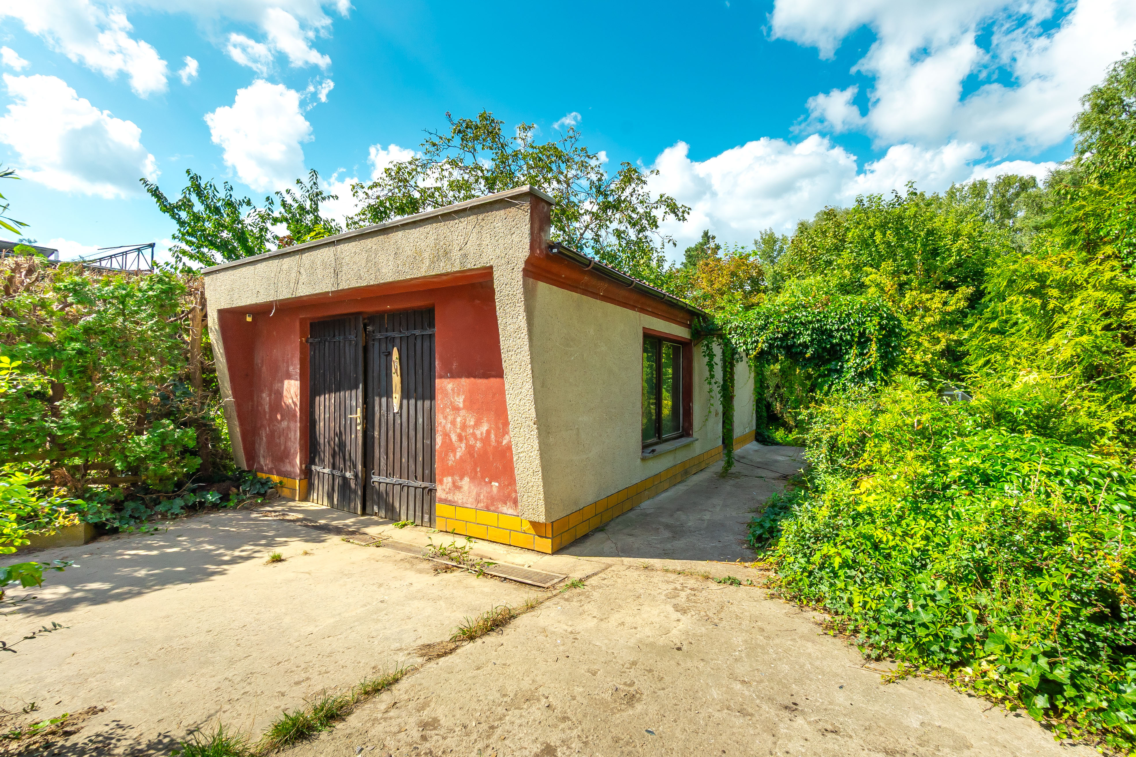 Außenbereich • Grundstück ist vollständig eingefriedet • großes begrüntes Grundstück mit viel Gestaltungspotenzial • Massive Garage mit ca. 43 m² Nutzfläche und Schwingtor • Poolanlage (L 10m / B 5m / T 1,50m), Heizmatten vorhanden • Gewächshaus