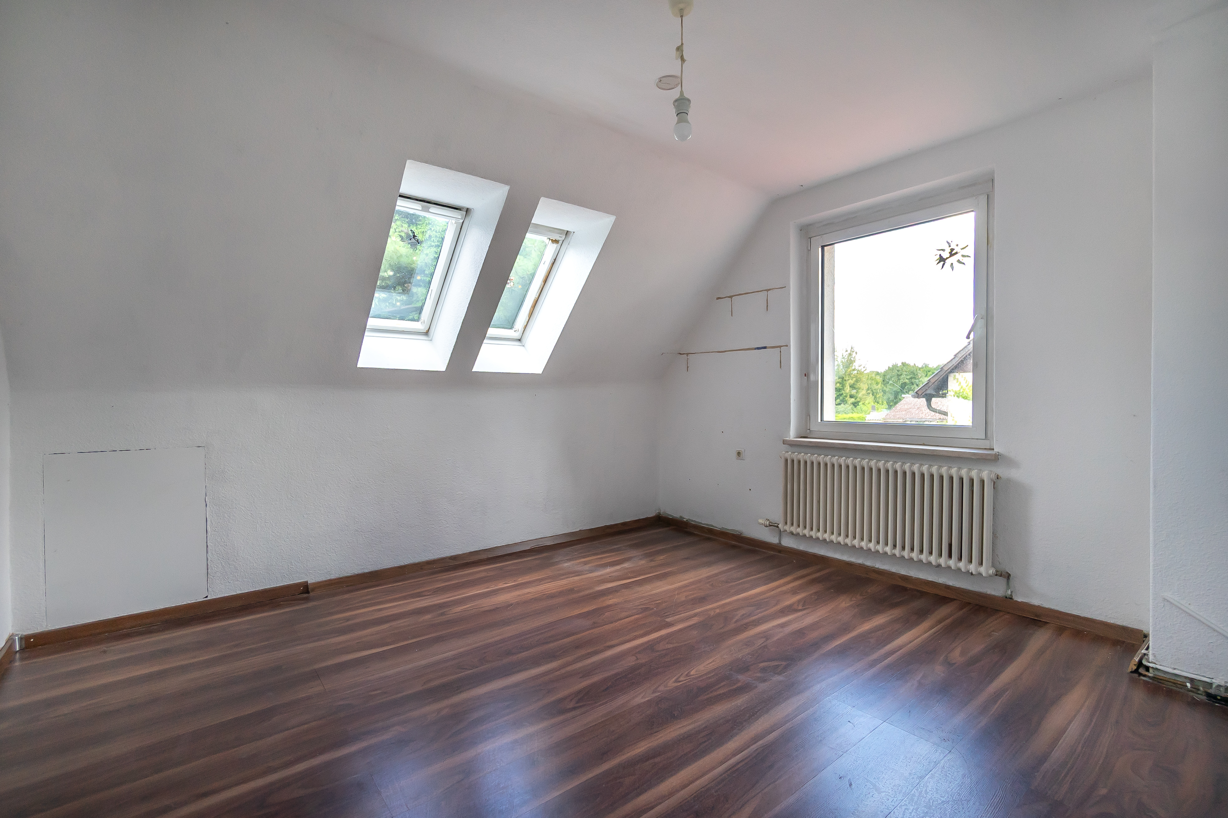 Dachgeschoss: Das Dachgeschoss mit ca. 69 m² Wohnfläche umfasst zwei Kinderzimmer, ein großes Schlafzimmer sowie ein Wannenbad mit WC und Waschbecken. Über eine Auszugsleiter ist die ausgebaute und gedämmte Dachspitze erreichbar, die zusätzlichen Stauraum bietet.