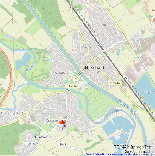 Die Marktgemeinde Hirschaid liegt im Regnitztal - etwa 12 Kilometer südlich von Bamberg direkt an der A 73. Auch wegen seiner Nähe zu Bamberg (12 km), Forchheim (13 km), Erlangen (ca. 30 km), Fürth (ca. 40 km) und Nürnberg (ca. 50 km) ist Hirschaid seit den 60ern stark gewachsen. Der Markt Hirschaid ist mit seinen über 12.000 Einwohnern die einwohnerstärkste Gemeinde des Landkreises Bamberg in Oberfranken. Der Ortsteil Sassanfahrt ist mit 2100 Einwohnern nach Hirschaid selbst der größte Gemeindeteil. Sassanfahrt bietet eine gute Infrastruktur und hohem Wohnwert. Die Umgebung ist geprägt von Einfamilienhäusern, gepflegten Gärten und einer angenehmen Nachbarschaft. Einkaufsmöglichkeiten, Schulen, Kindergärten sowie die Anbindung an den öffentlichen Nahverkehr und die Autobahn A73 sind schnell erreichbar. Weiter Informationen unter: www.hirschaid.de